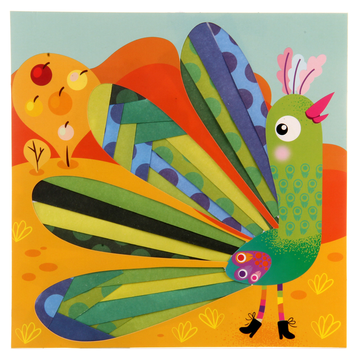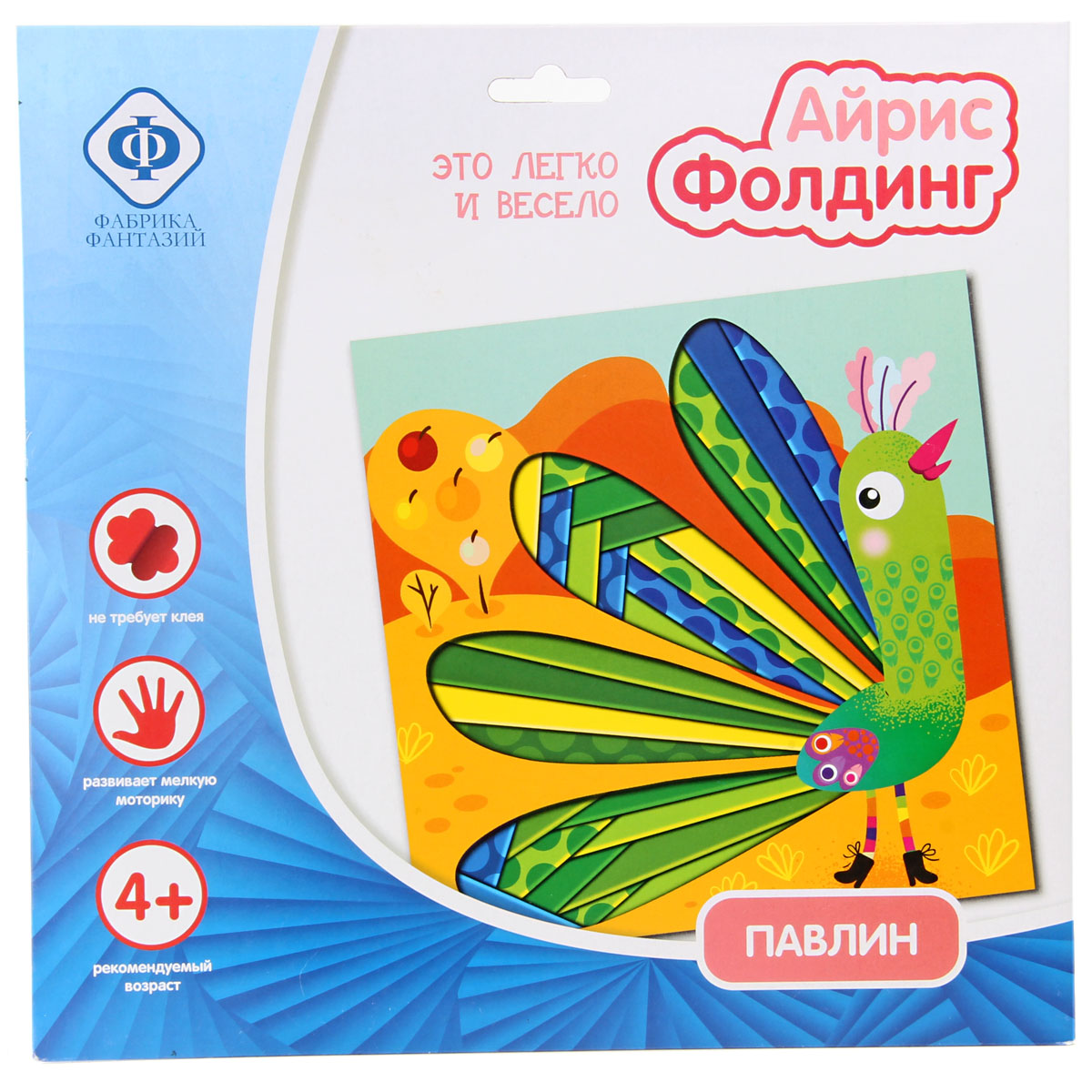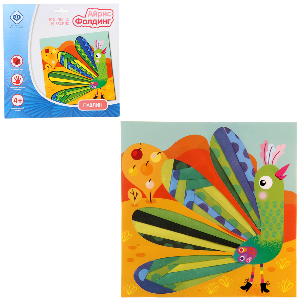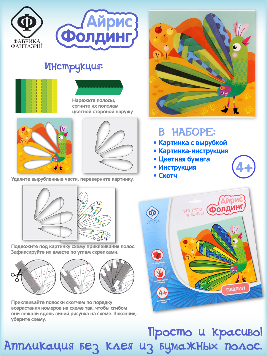 Айрис Фолдинг (Iris Folding) - заполнение вырезанной по контуру картинки разноцветными полосками. Эта техника является одновременно и методом скрапбукинга и наследницей оригами. "Радужное складывание" только кажется сложным, на самом деле, эта техника требует внимания и аккуратности, но при этом позволяет без труда делать эффектные картины. Ваш ребенок будет в восторге от аппликации, так как картина получится радужной и цветной, особо яркой и фактурной. В наборе: картинка с вырубкой, картинка-инструкция, цветная бумага, инструкция, скотч. Развивает мелкую моторику, не требует клея. Рекомендовано для детей в возрасте от 4 лет. Размер упаковки: 24,5х24,5см.