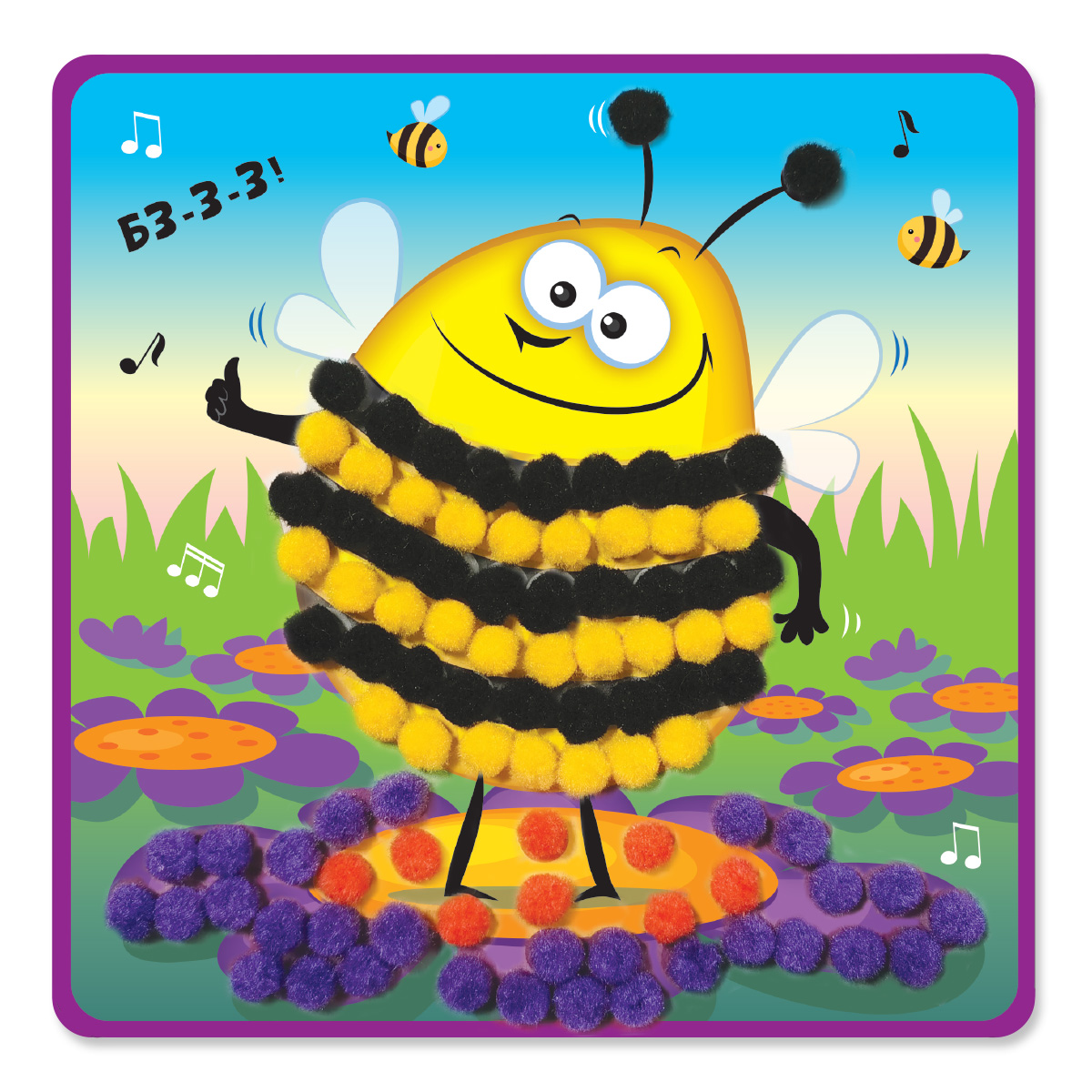 Аппликация помпонами. У ребенка легко получится симпатичная декоративная картина с пушистыми деталями. Нужно снять защитный слой и прижимать помпоны к клеевым меткам. Фото на упаковке поможет подбирать нужный цвет. Работа с помпонами очень полезная для мелкой моторики ребенка, развивает тактильность и цветовое восприятие. Приятного творчества! Рекомендуемый возраст: 3+ Размер готовой аппликации: 20*20см В наборе: цветная основа с клеевым слоем, цветные помпоны около 200шт, инструкция на упаковке