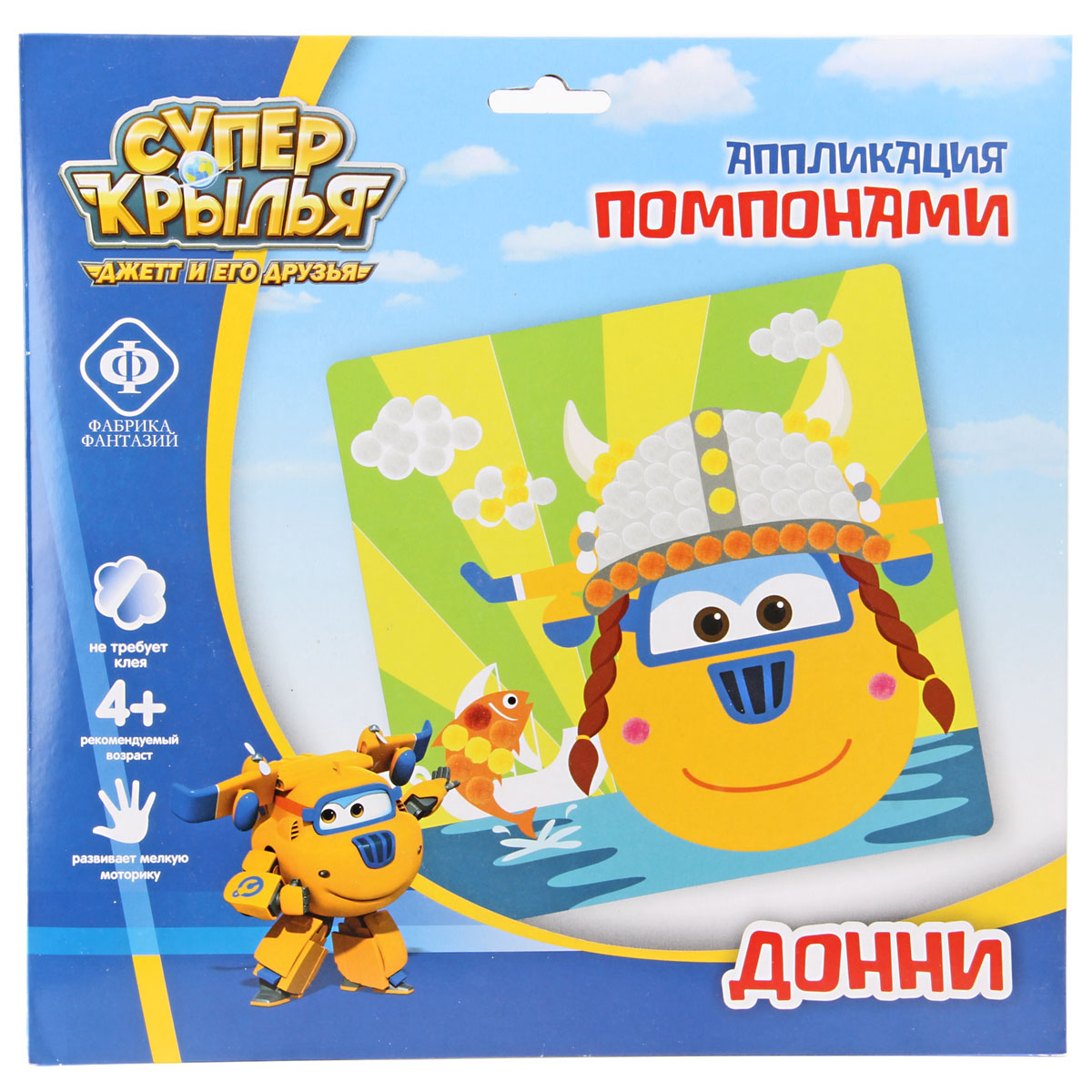 Аппликация помпонами – это набор для создания объемной, мягкой и пушистой картины. Увлекательное занятие будет способствовать развитию усидчивости и терпеливости, так как в процессе создания картины будут задействованы тактильные ощущения. Мягкие помпончики так приятно трогать, что ребенок обязательно закончит картину! А любимые персонажи «Super Wings» сделают процесс еще интереснее. Предлагаемый набор способствует развитию вкуса, воображения, творческих способностей и учит располагать одинаковые формы по контуру рисунка. Состав набора: rартина с клейким слоем 20х20см, разноцветные помпоны. Рекомендовано для детей в возрасте от 4 лет. Размер упаковки: 24,5х24,5см.