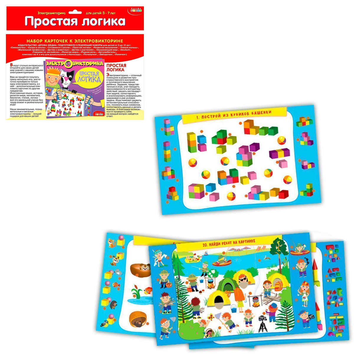 Дополнительный набор карточек к любой электровикторине в коробке. К любой нашей электровикторине подходят наборы карточек от других игр этой серии. Поэтому, если у вас уже есть одна электровикторина, то покупать другие игры этой серии в коробках не нужно, достаточно приобрести дополнительные наборы карточек к уже имеющейся игре. Электровикторина "Простая логика" – отличный помощник в развитии пространственного восприятия и логического мышления ребёнка. Задания, предствленные в игре, учат находить закономерности и алгоритмы действий, решать нестандартные задачи, сопоставлять и анализировать информацию, удерживая в уме условия задачи. Игра поможет развить интеллектуальные способности, понимать язык символов, сопоставлять данные и делать выводы. А благодаря возможности проверить себя, на каждый вопрос найдётся ответ. В комплекте: 10 двусторонних карточек, правила с ответами. Возраст: 5—7 лет. Внимание! Набор карточек не является самостоятельной игрой, а служит дополнением к электровикторине в коробке.