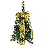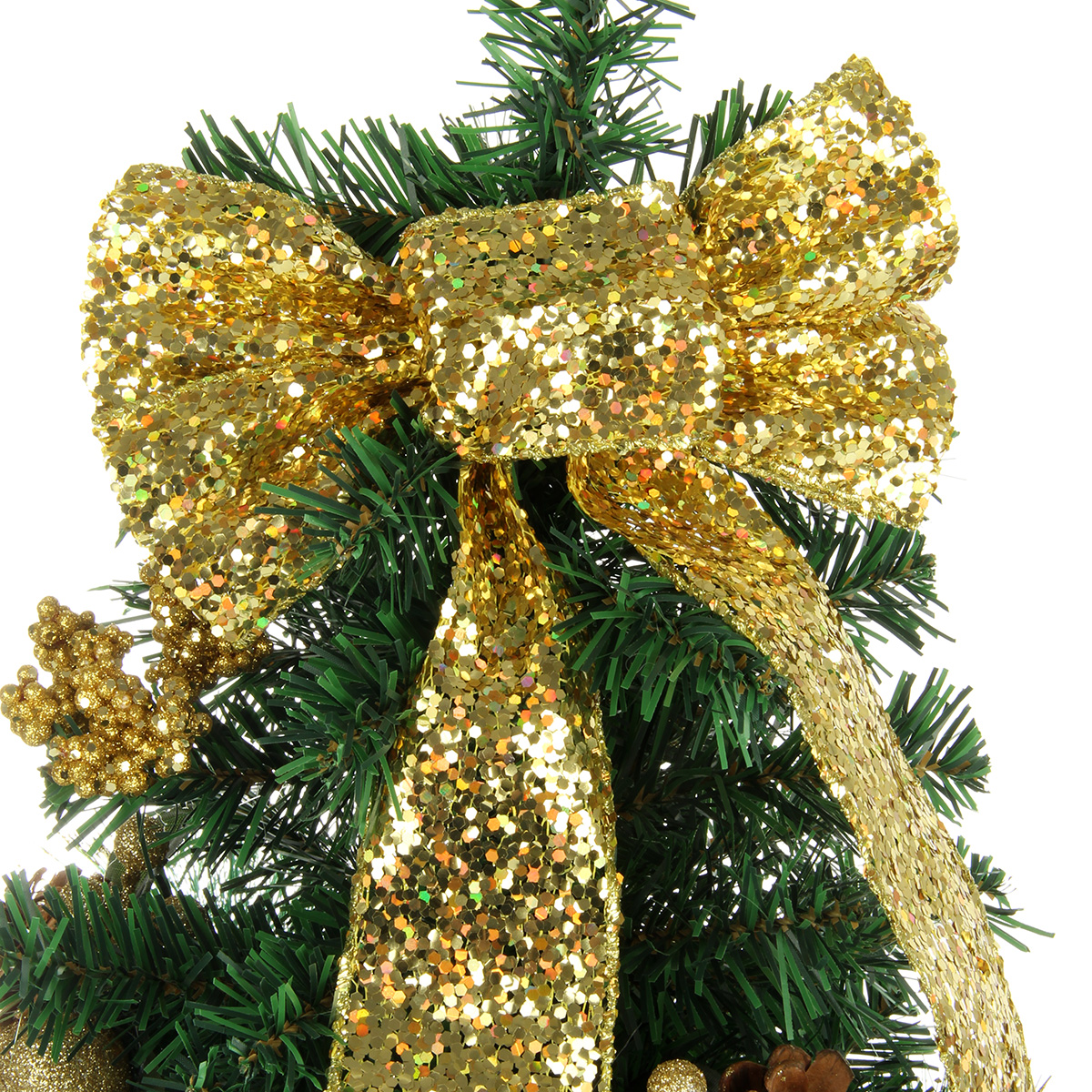 Елка интерьерная пластиковая декорирована настоящими шишками, шариками с глиттером, съемным бантом. Лапки елки гнутся, елочка устойчиво стоит в подставке.