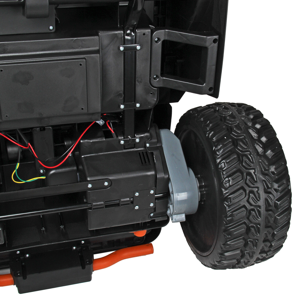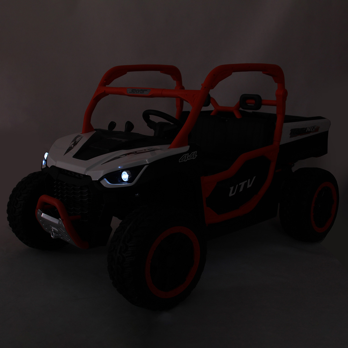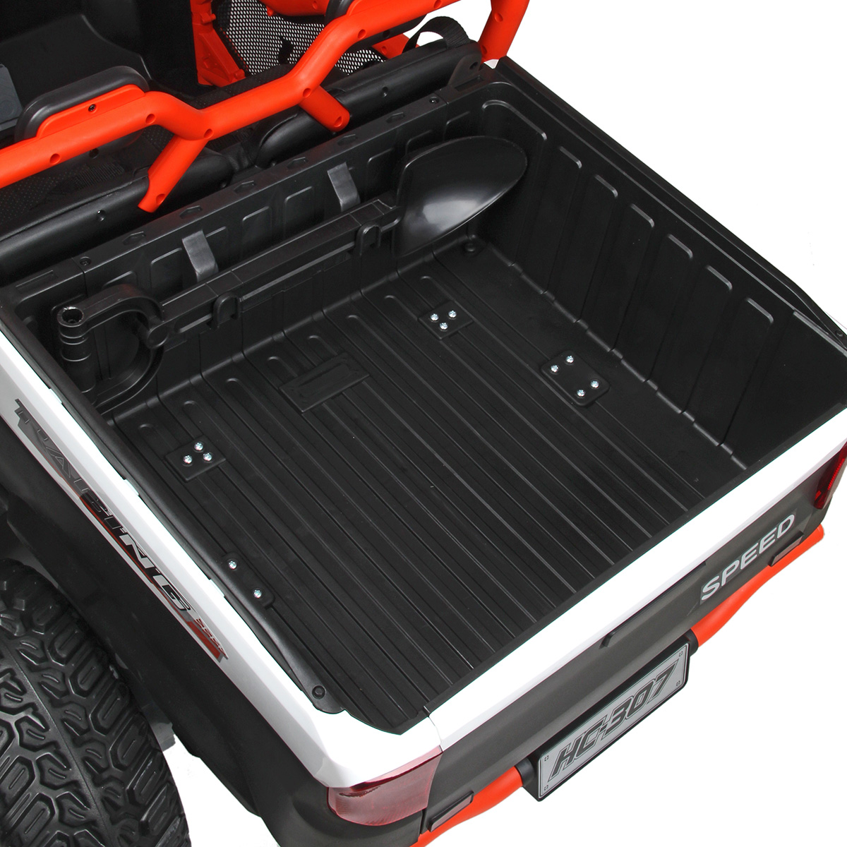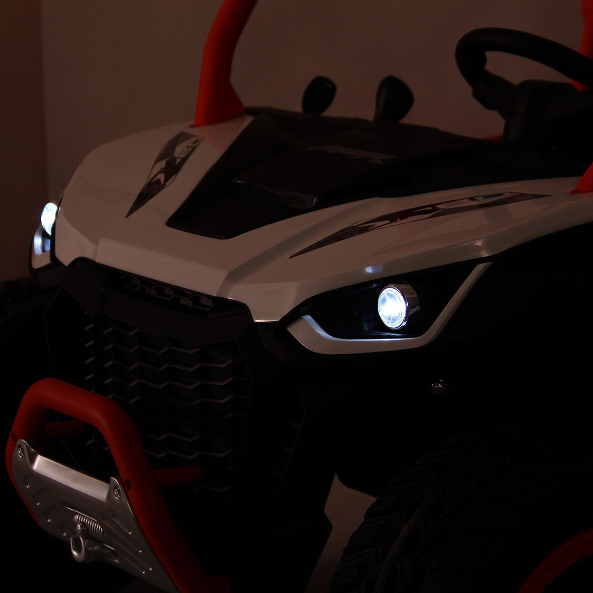 Электромобиль детский на пульте управления с широким функционалом, светом и звуком точно понравится юному автолюбителю. Изготовлен из прочных и долговечных материалов. Оформлен в реалистичном дизайне. В комплекте игрового набора детали для сборки электромобиля, пульт управления, зарядное устройство, лопата, 2 ключа зажигания, инструкции на русском и английском языках. Поворачиваем ключ зажигания, игрушечный транспорт издаст звук заводящегося двигателя. Есть подсветка передних фар и индикатора зарядки. Имеет USB разъем. Можно переключать режимы плейера. Проигрывает треки с внешнего источника или встроенные 4 трека. Телефона подключается через Bluetooth и с помощью провода. Регулируемая громкость. Кузов поднимается и опускается с помощью рычага под сиденьем. Есть отключение подсветки фар и переключение скорости. При нажатии на педаль автомобиль едет вперед или назад. Едет, пока жмем педаль. Управление рулём. Нажимаем на руле левую кнопку, проигрывает треки, правую звуки гудка. Имеет полный привод. Пульт управления подключается нажатием на круглую кнопку. Пуль управления осуществляет движение во все стороны. Поворачивают передние колеса. Блокировка колес. Двухместный салон. 2 ремня безопасности. Рамы поднимаются, запирающий механизм. Такая детская большая машина на аккумуляторе станет замечательным подарком детям на новый год, день рождения и на любой другой повод. Озвучка английская. Подходит для детей старше 3 лет. Работает от аккумулятора 24V7AH. Управление колесами и рулём за счет 5 моторов 75W. Зарядное устройство АС100 240V. Зарядное устройство, аккумуляторы и моторы в комплекте. Пульт работает от 2 батареек ААА, не входят в комплект. Изготовлено из EVA, экокожи, полимера и металла. Максимальная скорость 8 км в час. Время зарядки электромашины от 8 часов. Время работы 1 час. Частота радиоуправления 2.4 ГГц. Максимальная нагрузка 40 кг. Клиренс 14 см. Размеры электрокара 142х80х77 см. Размеры коробки 116х64х39 см.