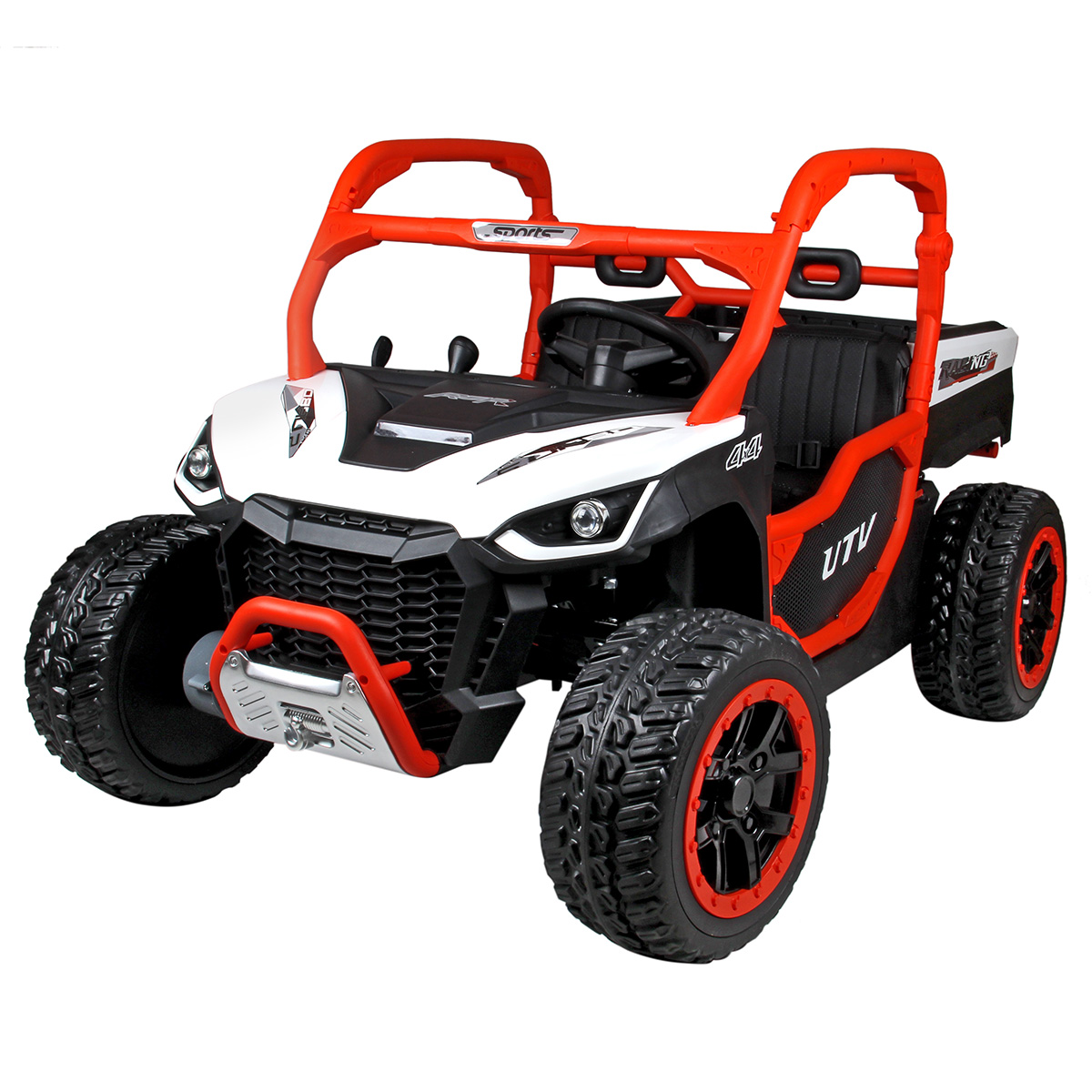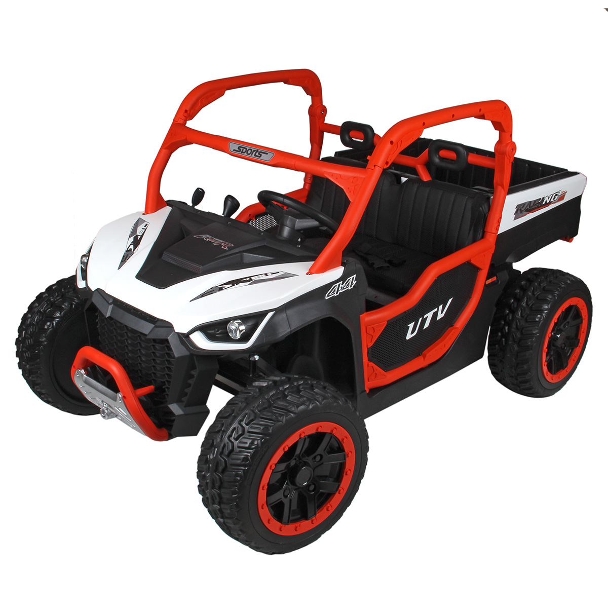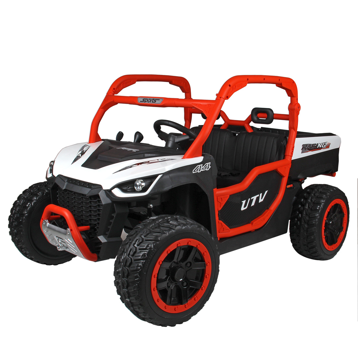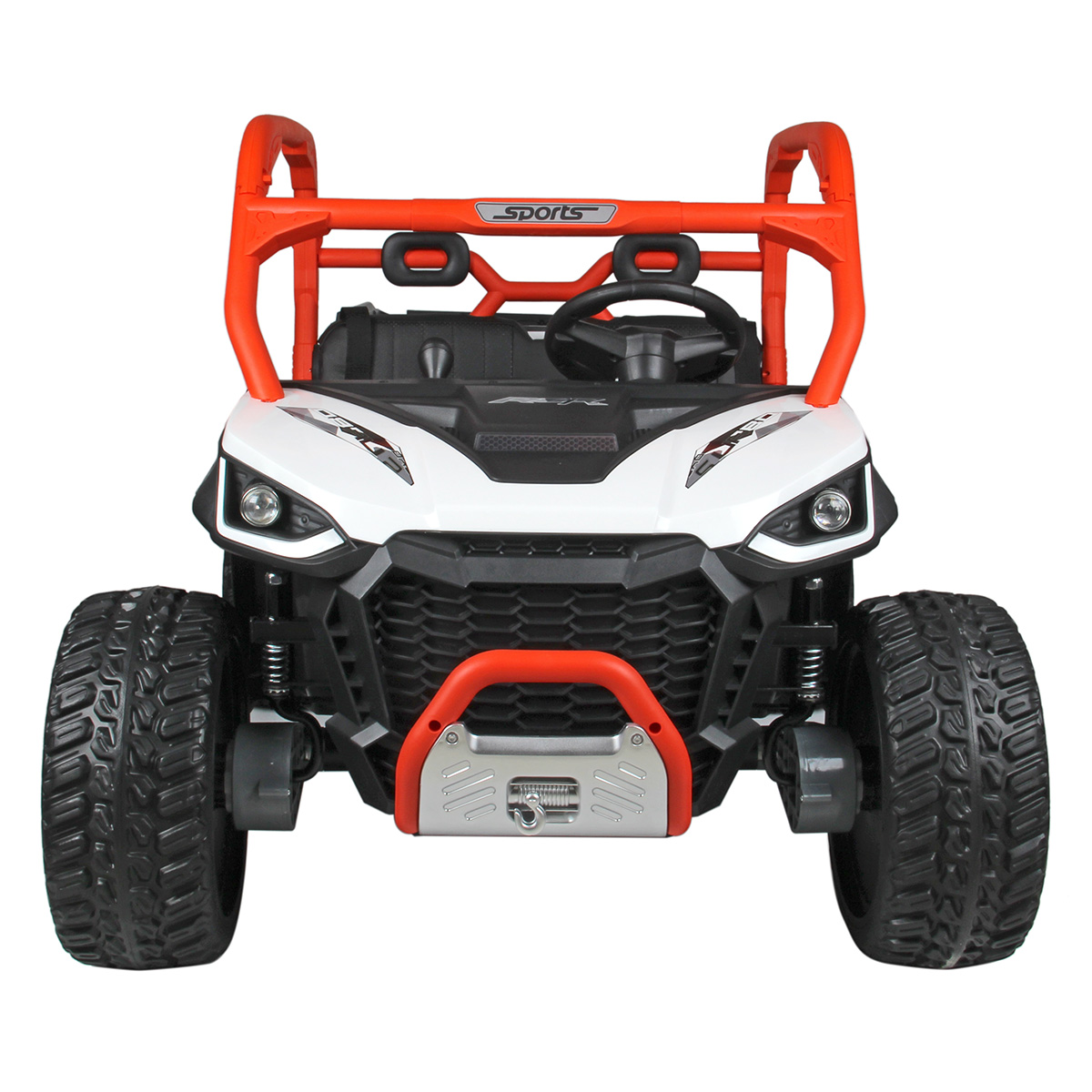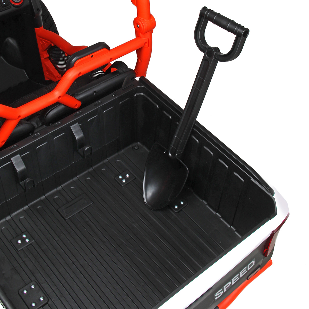 Электромобиль детский на пульте управления с широким функционалом, светом и звуком точно понравится юному автолюбителю. Изготовлен из прочных и долговечных материалов. Оформлен в реалистичном дизайне. В комплекте игрового набора детали для сборки электромобиля, пульт управления, зарядное устройство, лопата, 2 ключа зажигания, инструкции на русском и английском языках. Поворачиваем ключ зажигания, игрушечный транспорт издаст звук заводящегося двигателя. Есть подсветка передних фар и индикатора зарядки. Имеет USB разъем. Можно переключать режимы плейера. Проигрывает треки с внешнего источника или встроенные 4 трека. Телефона подключается через Bluetooth и с помощью провода. Регулируемая громкость. Кузов поднимается и опускается с помощью рычага под сиденьем. Есть отключение подсветки фар и переключение скорости. При нажатии на педаль автомобиль едет вперед или назад. Едет, пока жмем педаль. Управление рулём. Нажимаем на руле левую кнопку, проигрывает треки, правую звуки гудка. Имеет полный привод. Пульт управления подключается нажатием на круглую кнопку. Пуль управления осуществляет движение во все стороны. Поворачивают передние колеса. Блокировка колес. Двухместный салон. 2 ремня безопасности. Рамы поднимаются, запирающий механизм. Такая детская большая машина на аккумуляторе станет замечательным подарком детям на новый год, день рождения и на любой другой повод. Озвучка английская. Подходит для детей старше 3 лет. Работает от аккумулятора 24V7AH. Управление колесами и рулём за счет 5 моторов 75W. Зарядное устройство АС100 240V. Зарядное устройство, аккумуляторы и моторы в комплекте. Пульт работает от 2 батареек ААА, не входят в комплект. Изготовлено из EVA, экокожи, полимера и металла. Максимальная скорость 8 км в час. Время зарядки электромашины от 8 часов. Время работы 1 час. Частота радиоуправления 2.4 ГГц. Максимальная нагрузка 40 кг. Клиренс 14 см. Размеры электрокара 142х80х77 см. Размеры коробки 116х64х39 см.