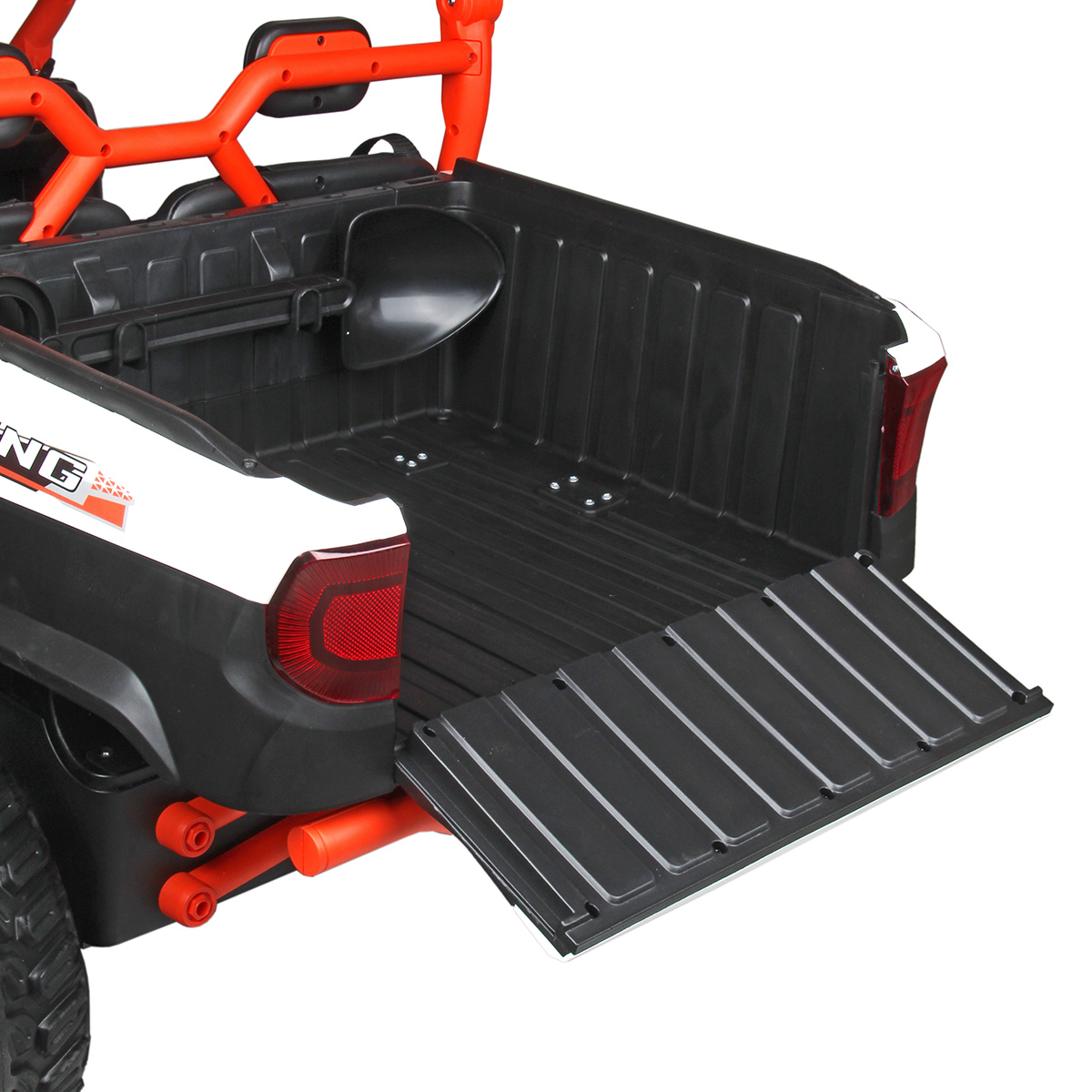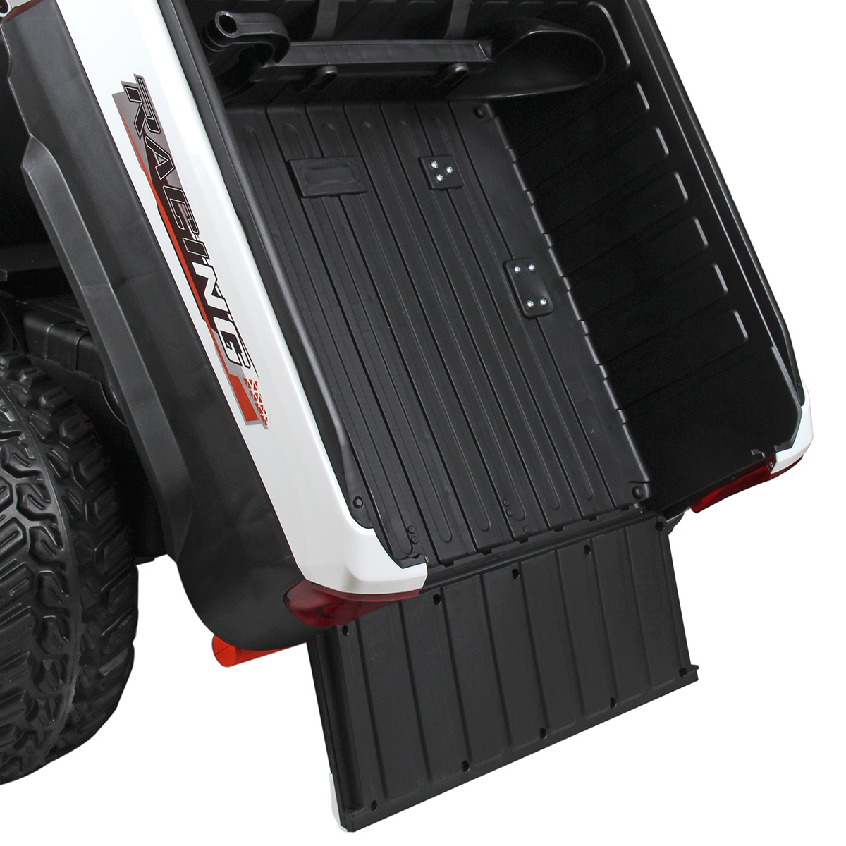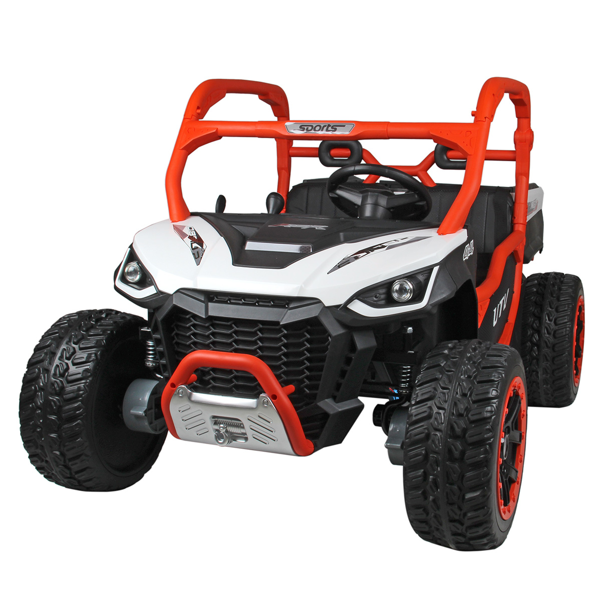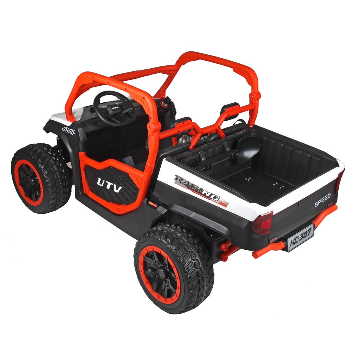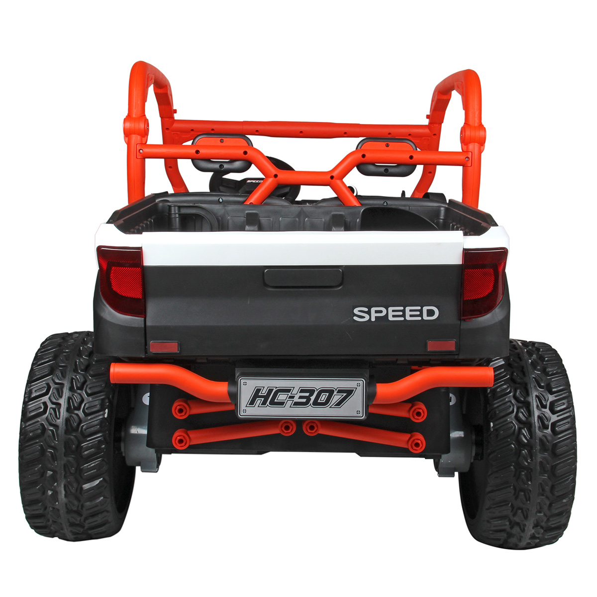 Электромобиль детский на пульте управления с широким функционалом, светом и звуком точно понравится юному автолюбителю. Изготовлен из прочных и долговечных материалов. Оформлен в реалистичном дизайне. В комплекте игрового набора детали для сборки электромобиля, пульт управления, зарядное устройство, лопата, 2 ключа зажигания, инструкции на русском и английском языках. Поворачиваем ключ зажигания, игрушечный транспорт издаст звук заводящегося двигателя. Есть подсветка передних фар и индикатора зарядки. Имеет USB разъем. Можно переключать режимы плейера. Проигрывает треки с внешнего источника или встроенные 4 трека. Телефона подключается через Bluetooth и с помощью провода. Регулируемая громкость. Кузов поднимается и опускается с помощью рычага под сиденьем. Есть отключение подсветки фар и переключение скорости. При нажатии на педаль автомобиль едет вперед или назад. Едет, пока жмем педаль. Управление рулём. Нажимаем на руле левую кнопку, проигрывает треки, правую звуки гудка. Имеет полный привод. Пульт управления подключается нажатием на круглую кнопку. Пуль управления осуществляет движение во все стороны. Поворачивают передние колеса. Блокировка колес. Двухместный салон. 2 ремня безопасности. Рамы поднимаются, запирающий механизм. Такая детская большая машина на аккумуляторе станет замечательным подарком детям на новый год, день рождения и на любой другой повод. Озвучка английская. Подходит для детей старше 3 лет. Работает от аккумулятора 24V7AH. Управление колесами и рулём за счет 5 моторов 75W. Зарядное устройство АС100 240V. Зарядное устройство, аккумуляторы и моторы в комплекте. Пульт работает от 2 батареек ААА, не входят в комплект. Изготовлено из EVA, экокожи, полимера и металла. Максимальная скорость 8 км в час. Время зарядки электромашины от 8 часов. Время работы 1 час. Частота радиоуправления 2.4 ГГц. Максимальная нагрузка 40 кг. Клиренс 14 см. Размеры электрокара 142х80х77 см. Размеры коробки 116х64х39 см.