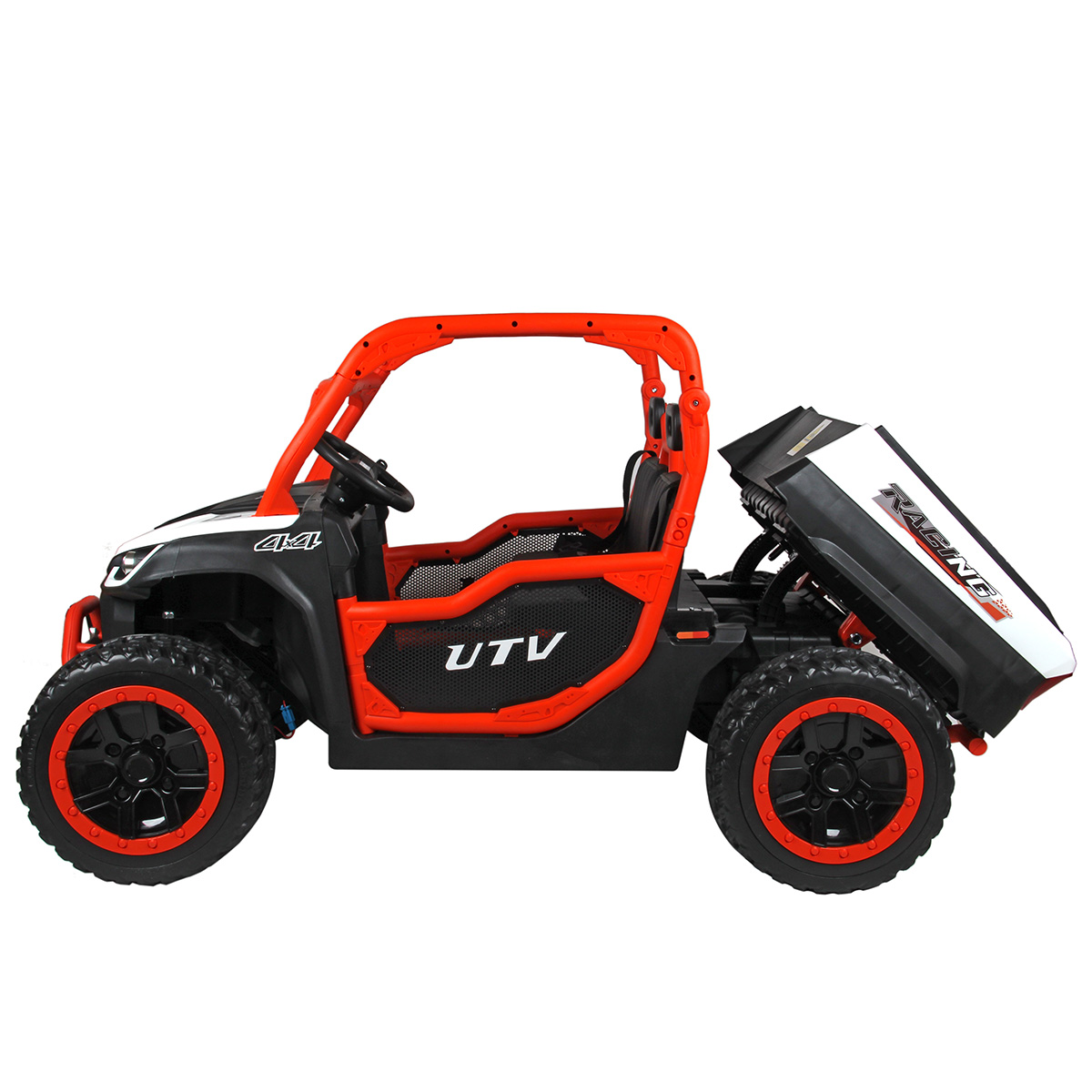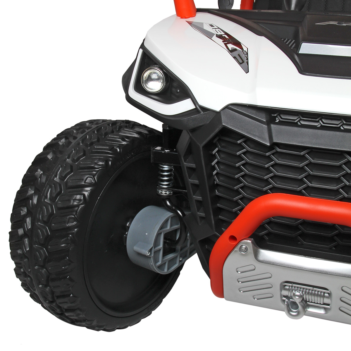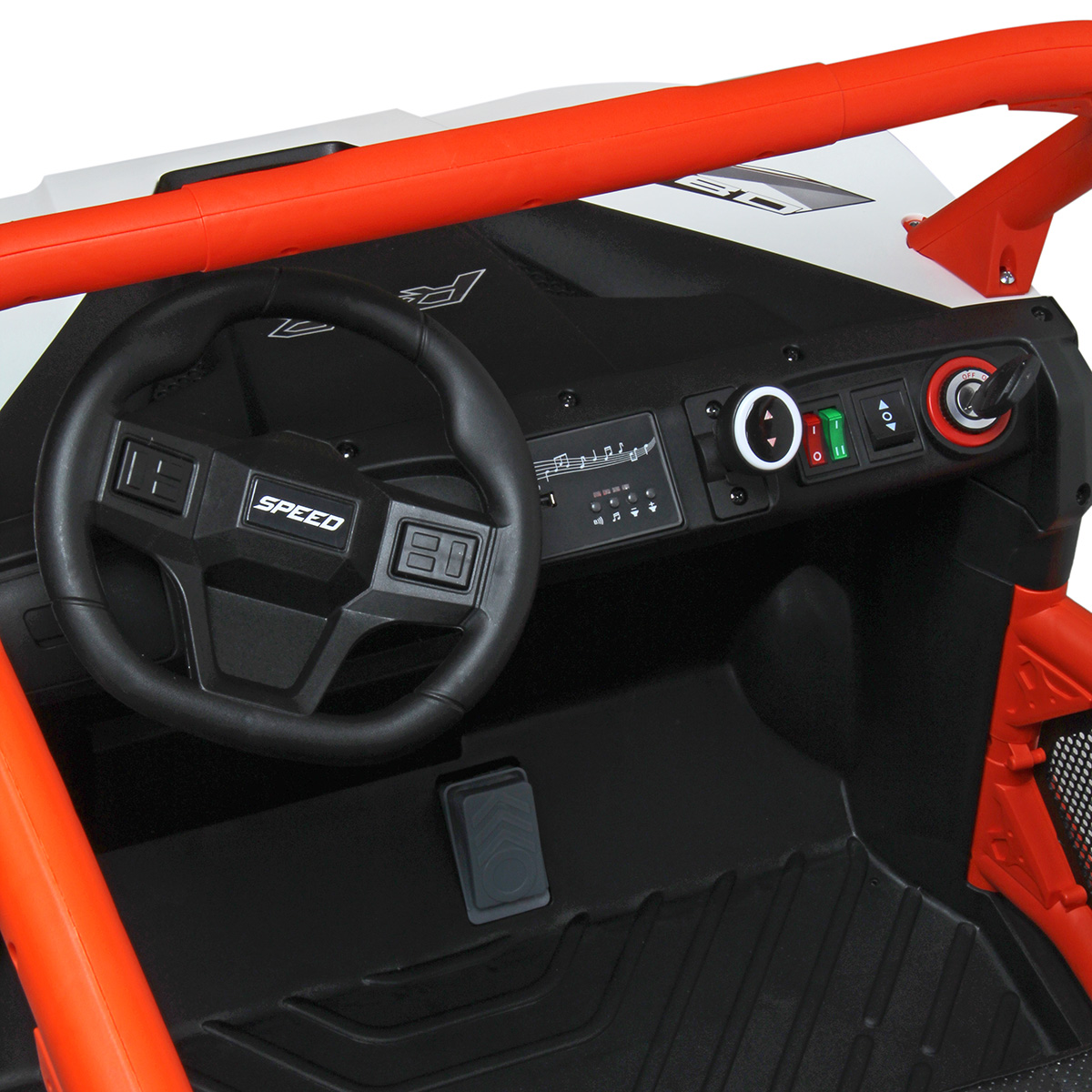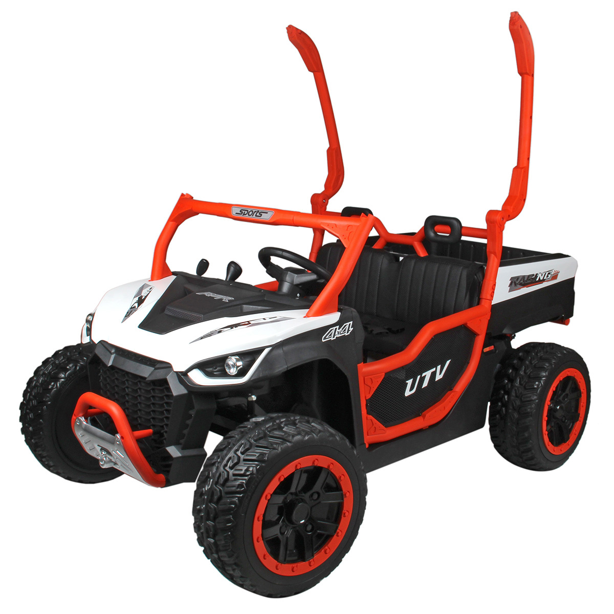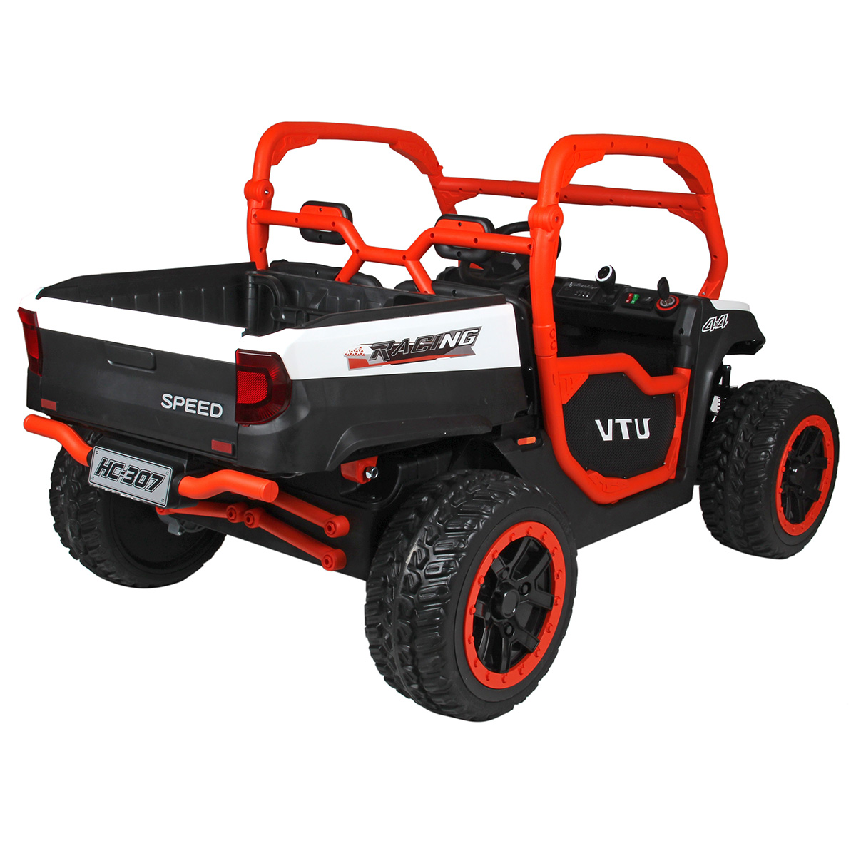 Электромобиль детский на пульте управления с широким функционалом, светом и звуком точно понравится юному автолюбителю. Изготовлен из прочных и долговечных материалов. Оформлен в реалистичном дизайне. В комплекте игрового набора детали для сборки электромобиля, пульт управления, зарядное устройство, лопата, 2 ключа зажигания, инструкции на русском и английском языках. Поворачиваем ключ зажигания, игрушечный транспорт издаст звук заводящегося двигателя. Есть подсветка передних фар и индикатора зарядки. Имеет USB разъем. Можно переключать режимы плейера. Проигрывает треки с внешнего источника или встроенные 4 трека. Телефона подключается через Bluetooth и с помощью провода. Регулируемая громкость. Кузов поднимается и опускается с помощью рычага под сиденьем. Есть отключение подсветки фар и переключение скорости. При нажатии на педаль автомобиль едет вперед или назад. Едет, пока жмем педаль. Управление рулём. Нажимаем на руле левую кнопку, проигрывает треки, правую звуки гудка. Имеет полный привод. Пульт управления подключается нажатием на круглую кнопку. Пуль управления осуществляет движение во все стороны. Поворачивают передние колеса. Блокировка колес. Двухместный салон. 2 ремня безопасности. Рамы поднимаются, запирающий механизм. Такая детская большая машина на аккумуляторе станет замечательным подарком детям на новый год, день рождения и на любой другой повод. Озвучка английская. Подходит для детей старше 3 лет. Работает от аккумулятора 24V7AH. Управление колесами и рулём за счет 5 моторов 75W. Зарядное устройство АС100 240V. Зарядное устройство, аккумуляторы и моторы в комплекте. Пульт работает от 2 батареек ААА, не входят в комплект. Изготовлено из EVA, экокожи, полимера и металла. Максимальная скорость 8 км в час. Время зарядки электромашины от 8 часов. Время работы 1 час. Частота радиоуправления 2.4 ГГц. Максимальная нагрузка 40 кг. Клиренс 14 см. Размеры электрокара 142х80х77 см. Размеры коробки 116х64х39 см.