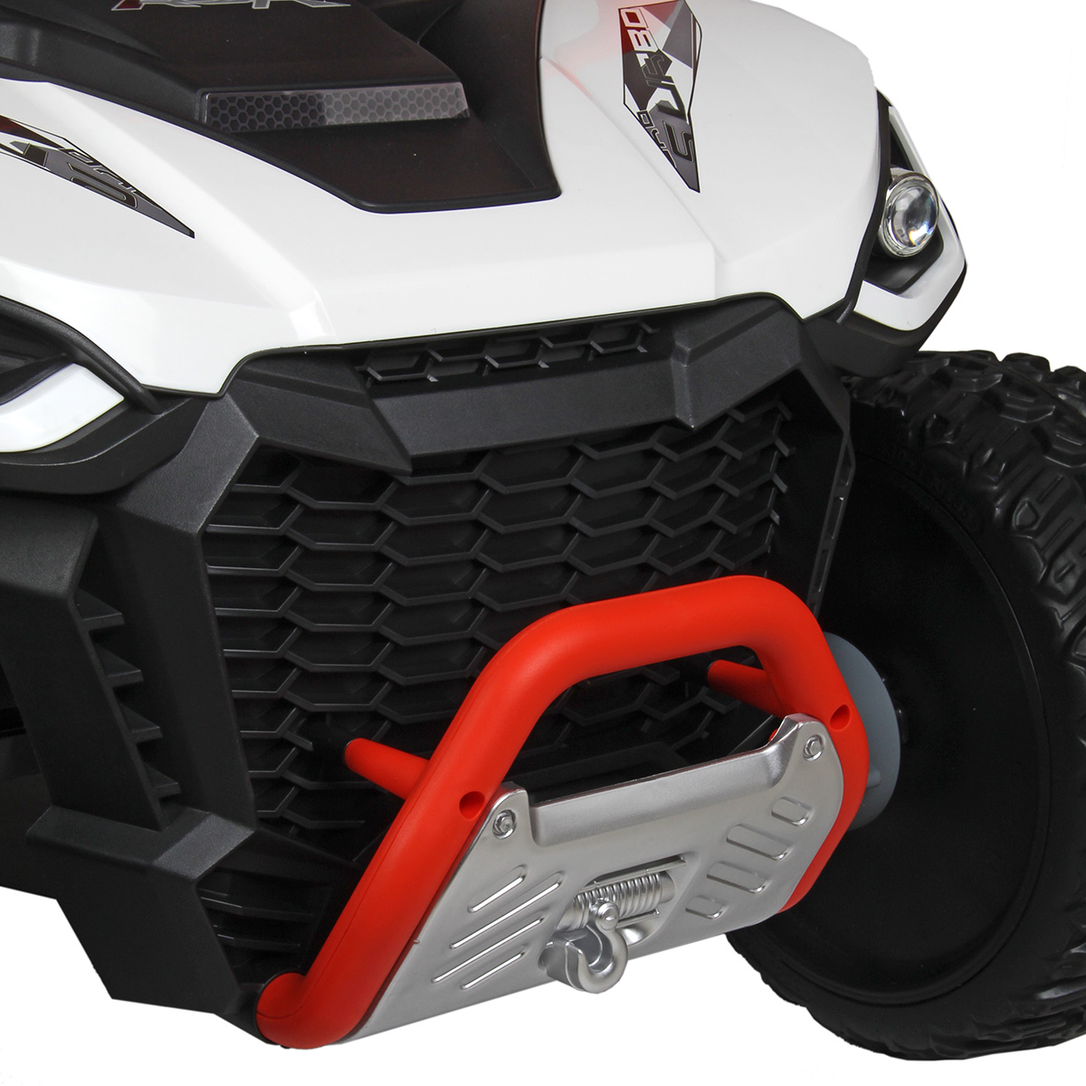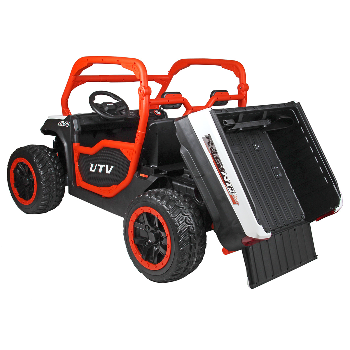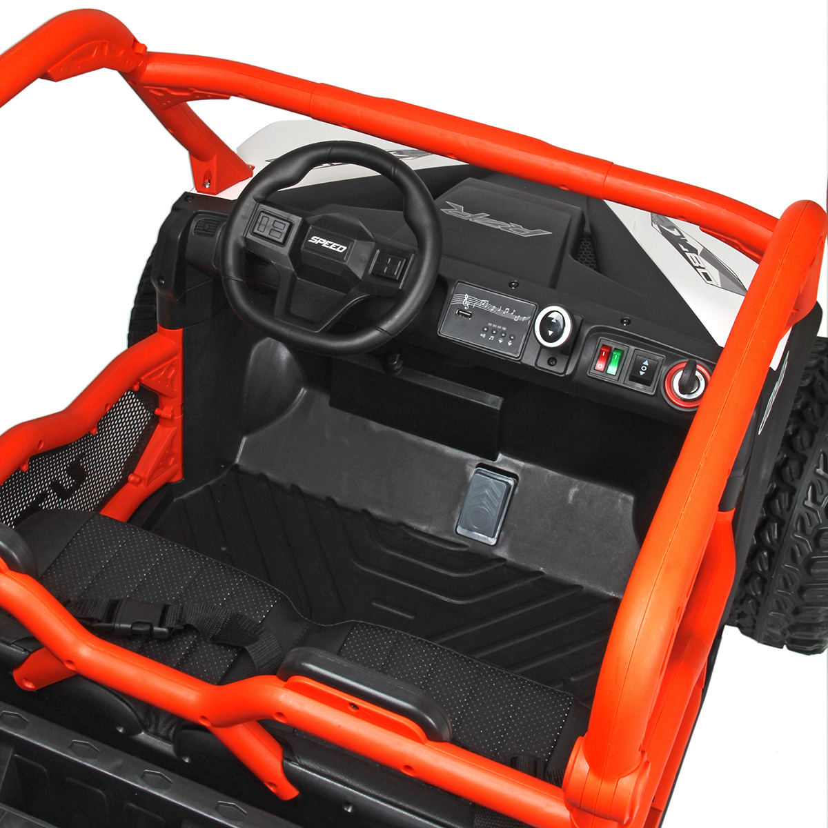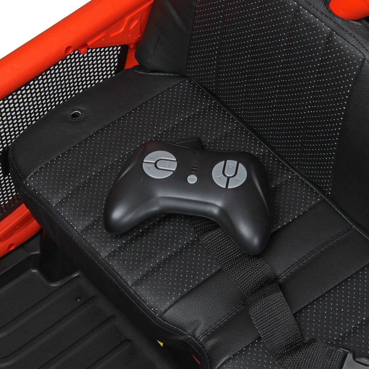 Электромобиль детский на пульте управления с широким функционалом, светом и звуком точно понравится юному автолюбителю. Изготовлен из прочных и долговечных материалов. Оформлен в реалистичном дизайне. В комплекте игрового набора детали для сборки электромобиля, пульт управления, зарядное устройство, лопата, 2 ключа зажигания, инструкции на русском и английском языках. Поворачиваем ключ зажигания, игрушечный транспорт издаст звук заводящегося двигателя. Есть подсветка передних фар и индикатора зарядки. Имеет USB разъем. Можно переключать режимы плейера. Проигрывает треки с внешнего источника или встроенные 4 трека. Телефона подключается через Bluetooth и с помощью провода. Регулируемая громкость. Кузов поднимается и опускается с помощью рычага под сиденьем. Есть отключение подсветки фар и переключение скорости. При нажатии на педаль автомобиль едет вперед или назад. Едет, пока жмем педаль. Управление рулём. Нажимаем на руле левую кнопку, проигрывает треки, правую звуки гудка. Имеет полный привод. Пульт управления подключается нажатием на круглую кнопку. Пуль управления осуществляет движение во все стороны. Поворачивают передние колеса. Блокировка колес. Двухместный салон. 2 ремня безопасности. Рамы поднимаются, запирающий механизм. Такая детская большая машина на аккумуляторе станет замечательным подарком детям на новый год, день рождения и на любой другой повод. Озвучка английская. Подходит для детей старше 3 лет. Работает от аккумулятора 24V7AH. Управление колесами и рулём за счет 5 моторов 75W. Зарядное устройство АС100 240V. Зарядное устройство, аккумуляторы и моторы в комплекте. Пульт работает от 2 батареек ААА, не входят в комплект. Изготовлено из EVA, экокожи, полимера и металла. Максимальная скорость 8 км в час. Время зарядки электромашины от 8 часов. Время работы 1 час. Частота радиоуправления 2.4 ГГц. Максимальная нагрузка 40 кг. Клиренс 14 см. Размеры электрокара 142х80х77 см. Размеры коробки 116х64х39 см.