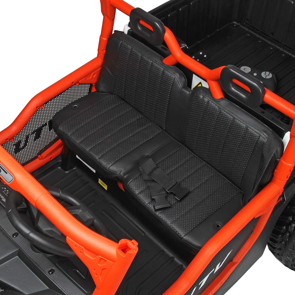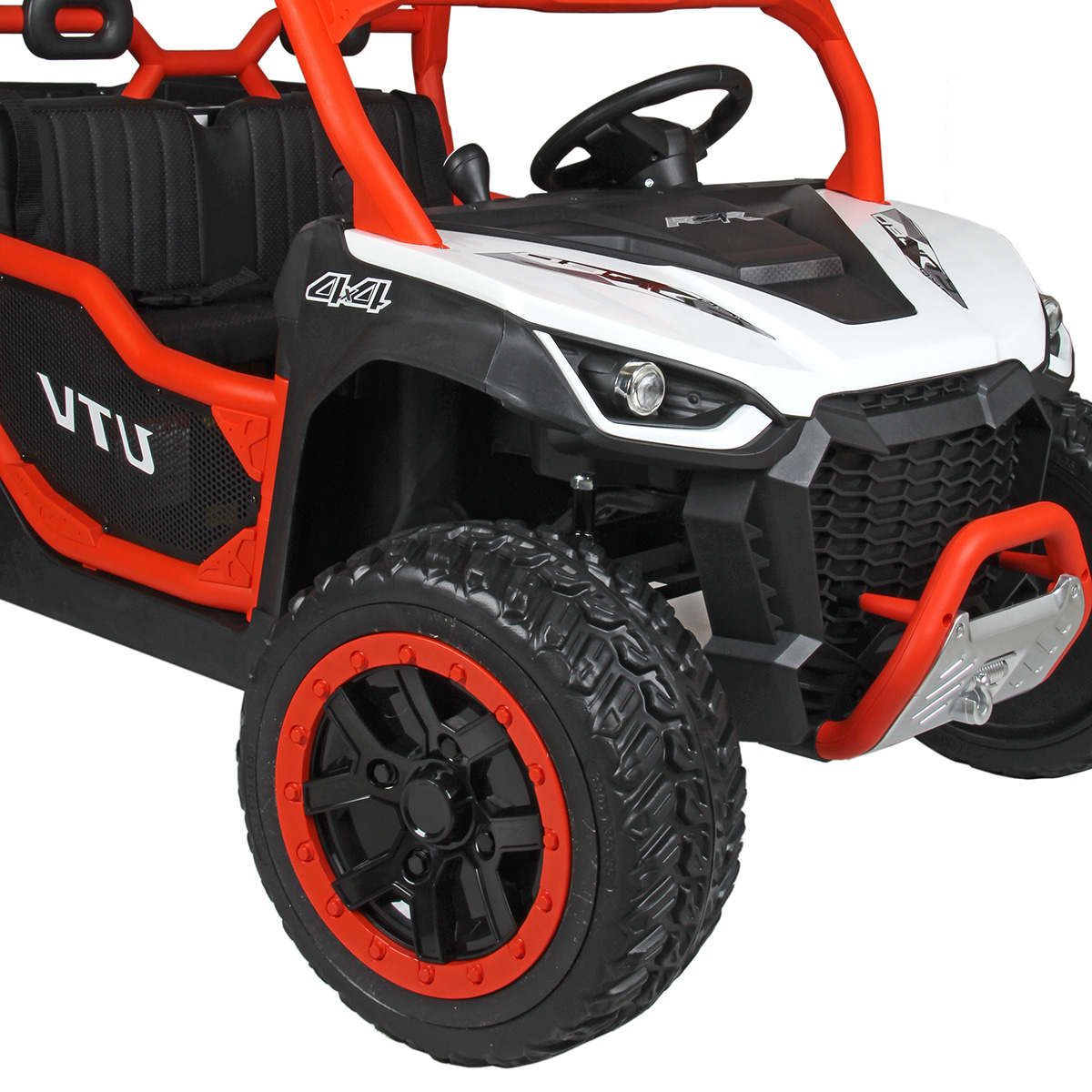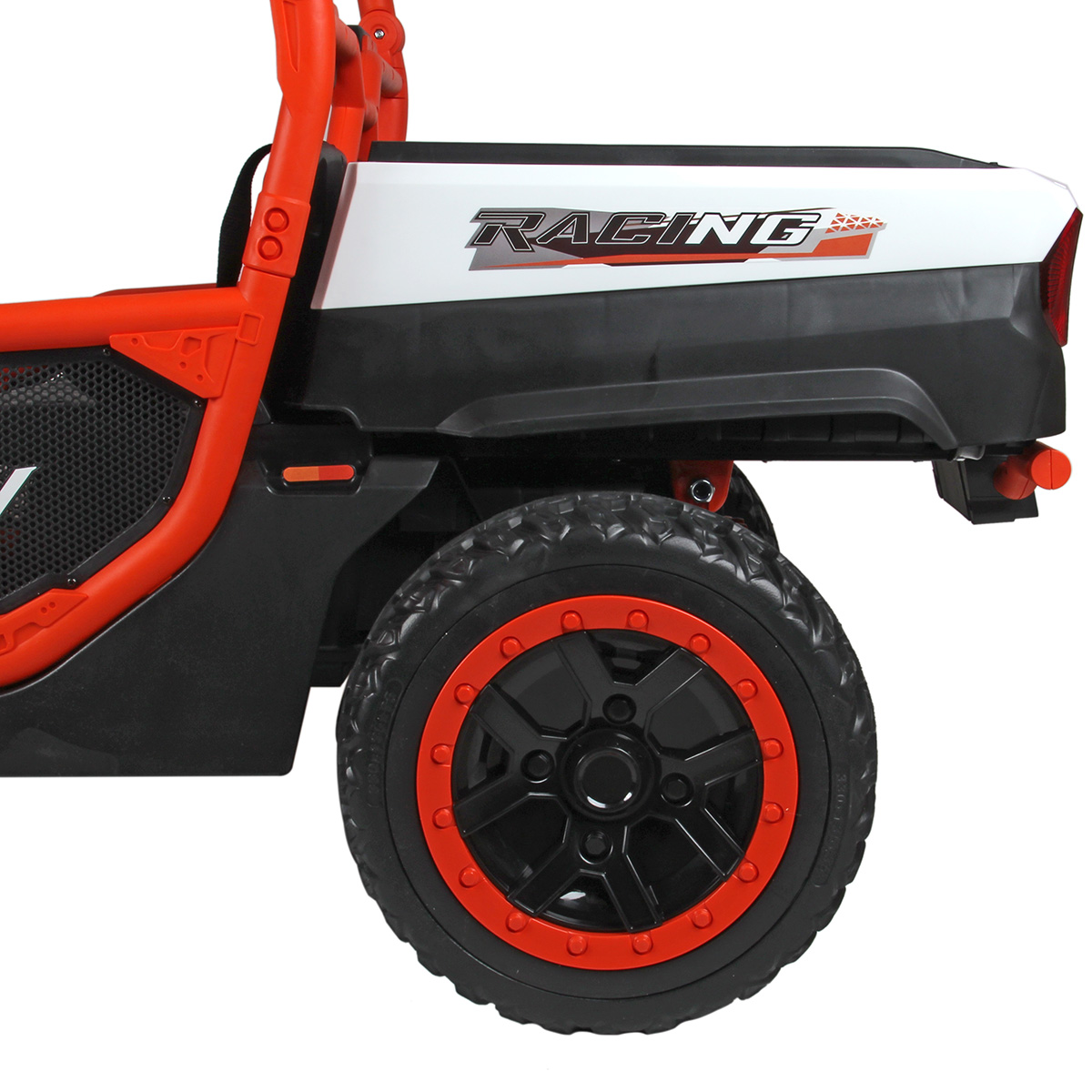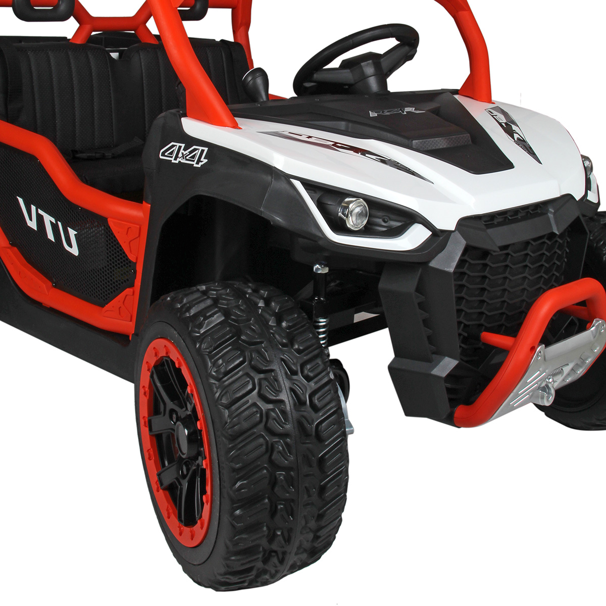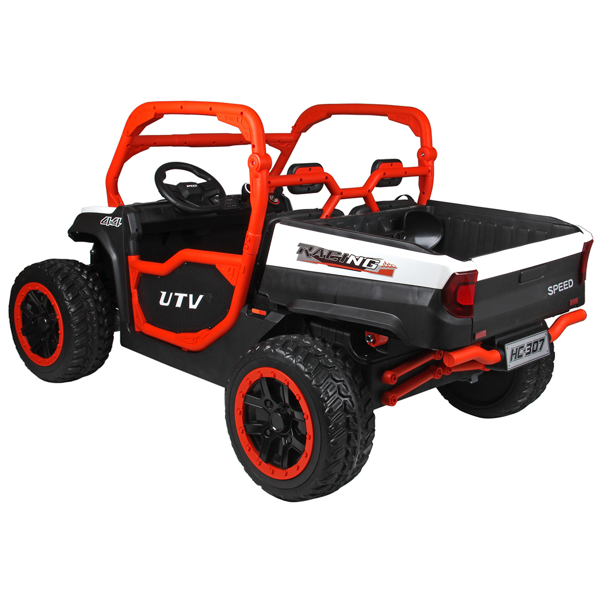 Электромобиль детский на пульте управления с широким функционалом, светом и звуком точно понравится юному автолюбителю. Изготовлен из прочных и долговечных материалов. Оформлен в реалистичном дизайне. В комплекте игрового набора детали для сборки электромобиля, пульт управления, зарядное устройство, лопата, 2 ключа зажигания, инструкции на русском и английском языках. Поворачиваем ключ зажигания, игрушечный транспорт издаст звук заводящегося двигателя. Есть подсветка передних фар и индикатора зарядки. Имеет USB разъем. Можно переключать режимы плейера. Проигрывает треки с внешнего источника или встроенные 4 трека. Телефона подключается через Bluetooth и с помощью провода. Регулируемая громкость. Кузов поднимается и опускается с помощью рычага под сиденьем. Есть отключение подсветки фар и переключение скорости. При нажатии на педаль автомобиль едет вперед или назад. Едет, пока жмем педаль. Управление рулём. Нажимаем на руле левую кнопку, проигрывает треки, правую звуки гудка. Имеет полный привод. Пульт управления подключается нажатием на круглую кнопку. Пуль управления осуществляет движение во все стороны. Поворачивают передние колеса. Блокировка колес. Двухместный салон. 2 ремня безопасности. Рамы поднимаются, запирающий механизм. Такая детская большая машина на аккумуляторе станет замечательным подарком детям на новый год, день рождения и на любой другой повод. Озвучка английская. Подходит для детей старше 3 лет. Работает от аккумулятора 24V7AH. Управление колесами и рулём за счет 5 моторов 75W. Зарядное устройство АС100 240V. Зарядное устройство, аккумуляторы и моторы в комплекте. Пульт работает от 2 батареек ААА, не входят в комплект. Изготовлено из EVA, экокожи, полимера и металла. Максимальная скорость 8 км в час. Время зарядки электромашины от 8 часов. Время работы 1 час. Частота радиоуправления 2.4 ГГц. Максимальная нагрузка 40 кг. Клиренс 14 см. Размеры электрокара 142х80х77 см. Размеры коробки 116х64х39 см.