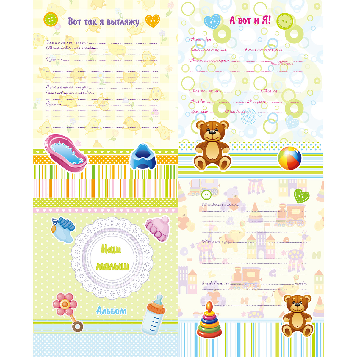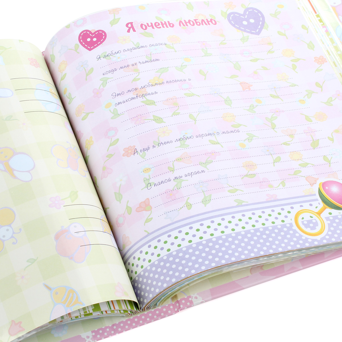 Фотоальбом-анкета для новорожденных позволяет не только хранить снимки, но и делать памятные записи рядом с фотографиями. Это могут быть как короткие комментарии к фотографиям, так и небольшие истории, связанные с определенными снимками. Альбом вмещает в себя 12 листов для заполнения анкеты и 14 листов для 56 фотографий размером 10*15 см. Красочный фотоальбом станет отличным подарком и поможет сохранить воспоминания о самых важных моментах жизни. Фотоальбом изготовлен из бумаги и картона, есть пластиковая обложка. Размеры альбома: 22*4*22 см.
