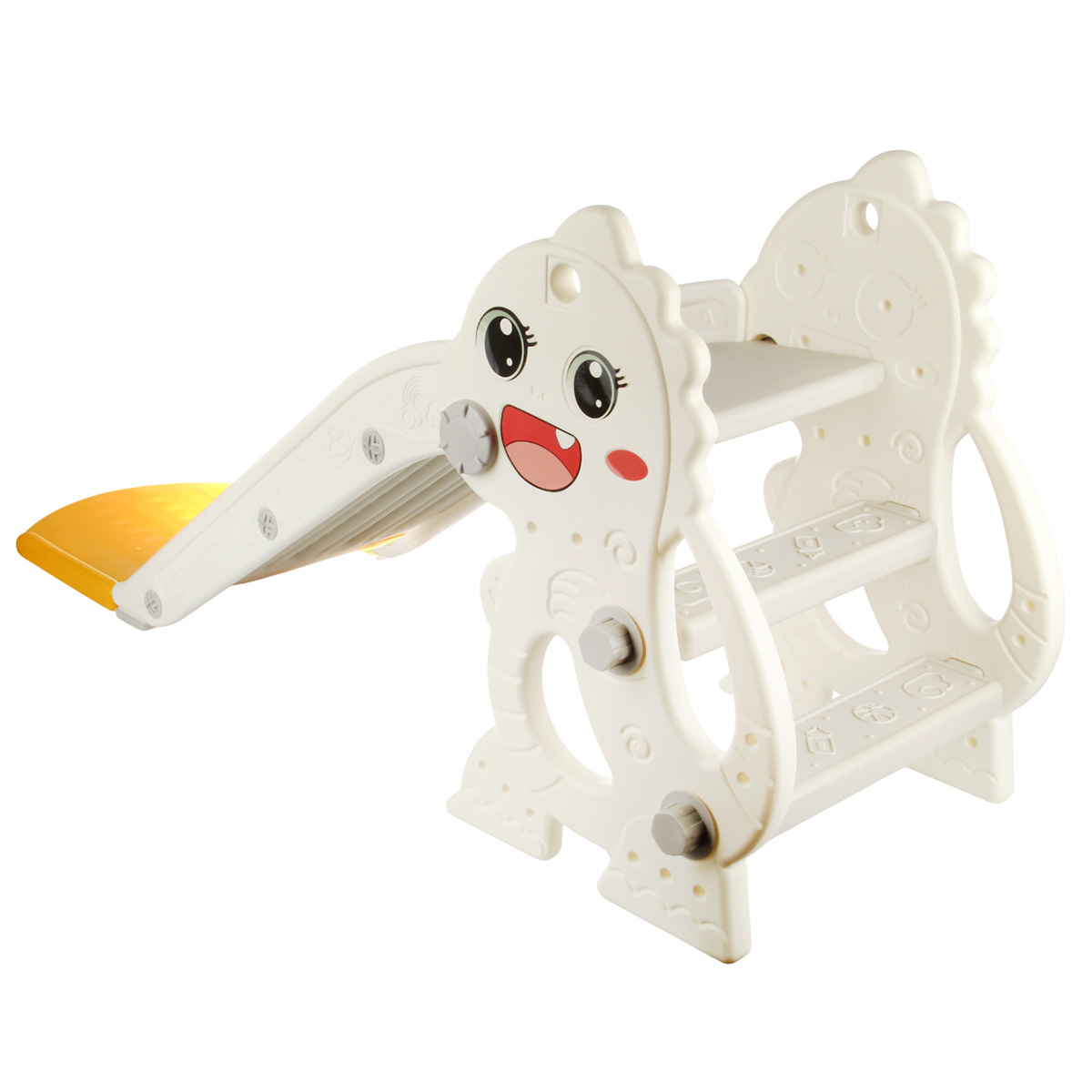 Горка детская легко собирается, не требует особых навыков и инструментов, обладает надежной продуманной конструкцией. Широкое основание и антискользящее покрытие обеспечивают устойчивость конструкции.