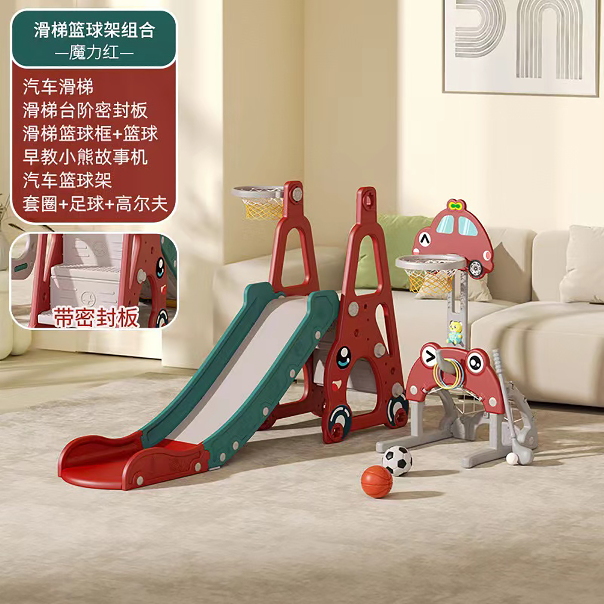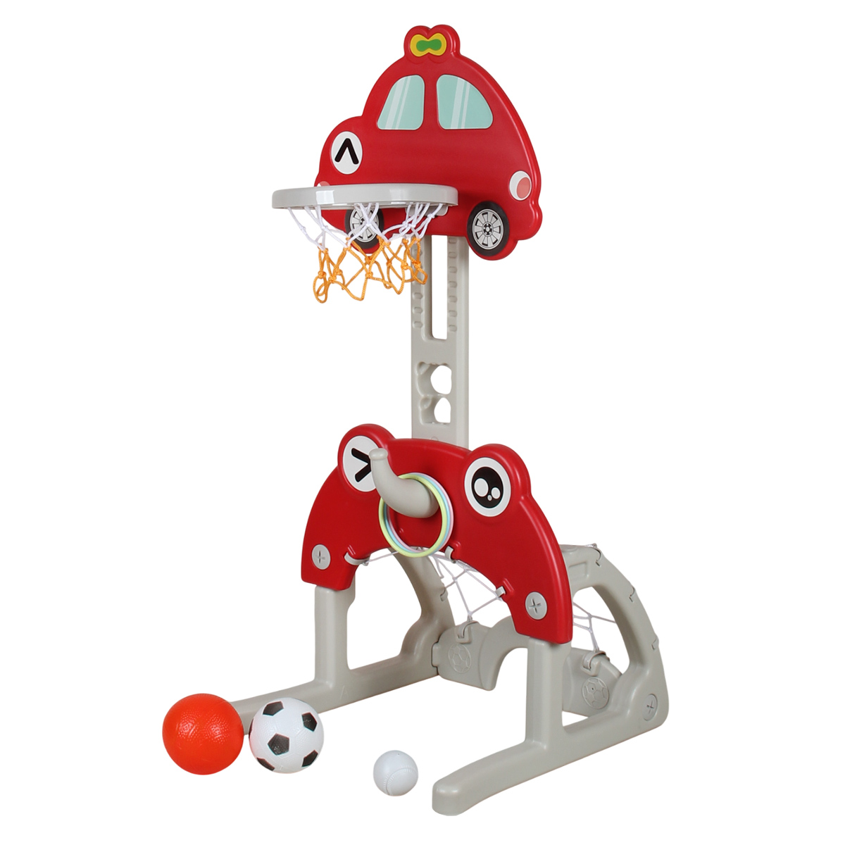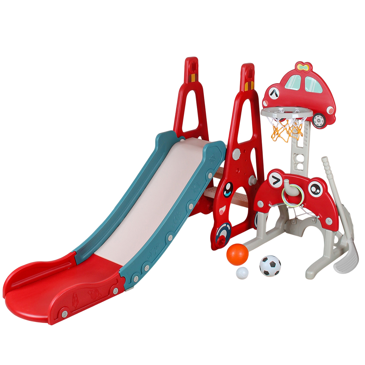 Многофункциональная игрушка, горка, стойка, гольф, футбол, баскетбол, кольцеброс для весёлых игр. Детский игровой комплекс изготовлен из прочных и долговечных материалов, безопасно для ребёнка. Детская горка оформлена в стилизованном дизайне и яркой расцветке. В комплекте игрового набора детали для сборки горки, стойки для баскетбола, футбольных ворот, кольцеброса и гольфа, набор наклеек, 3 кольца, 2 мяча, клюшка для гольфа, инструкция по сборке. Горка и стойка не соединяются друг с другом. Детская горка подойдёт для дома и улицы, можно установить в квартире, на даче. Полимер. Размер горки 141х37х91 см. Размер ступеньки 31х10х4 см. Длина ската 140 см. Ширина ската 31 см. Размер клюшки 12х3х55 см. Размер футбольных ворот 48х41х43 см. Высота футбольных ворот с учётом стойки баскетбольного кольца 86 см. Минимальная высота элемента в виде машинки с баскетбольным кольцом без учёта стойки 77 см. Максимальная высота элемента в виде машинки с баскетбольным кольцом 103 см. Размер баскетбольного кольца без учета крепления 22х16 см. Диаметр сетки баскетбольного кольца 19 см. Высота сетки 14 см. Размер кольцеброса 12х6 см. Диаметр кольца 12 см. Диаметр футбольного шарика 10 см. Диаметр баскетбольного шарика 15 см. Диаметр шарика для гольфа 4 см. Размер ворот для тенниса 32х1х13 см. Размер лунки для мяча 13х1х8 см. Размер упаковки 93х21х51 см.