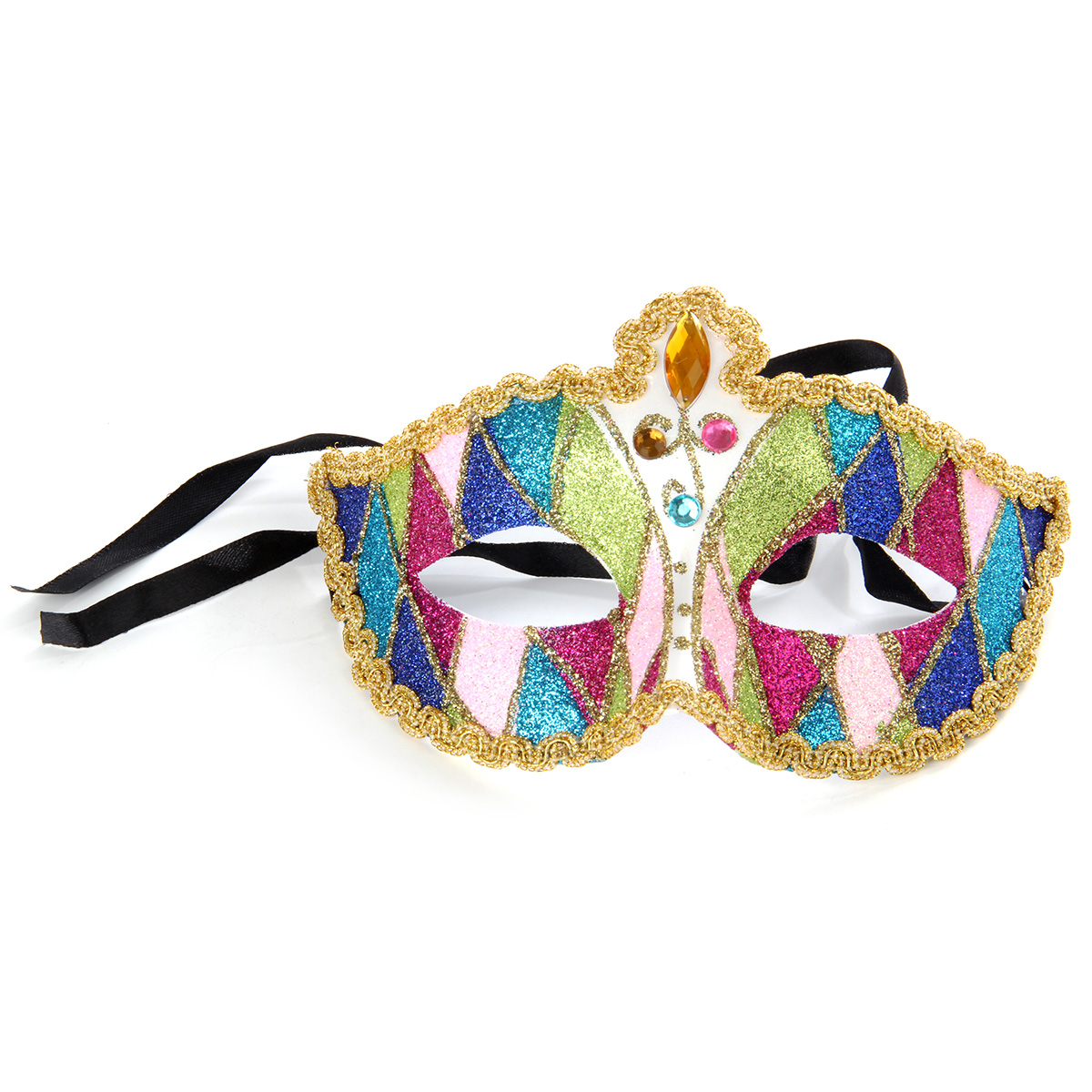 Аксессуар, который прекрасно дополнит любой карнавальный образ - красивая маска, выполненная в элегантном и роскошном стиле! Маска отделана тесьмой, украшена разноцветными стразами и блестками. На задней стороне есть две ленточки, которые завязываются на голове. Благодаря этому маска подойдет для любого размера головы. Добавьте своему праздничному образу загадочности и сдержанного лоска с этой маской! Расцветки маски представлены в ассортименте. Маска изготовлена из пластика, есть тканевые элементы. Упакована в пакет с картонным хедером с отверстием. Размеры маски: 18*7*10 см. Размеры маски в упаковке: 24*7,5*16 см.