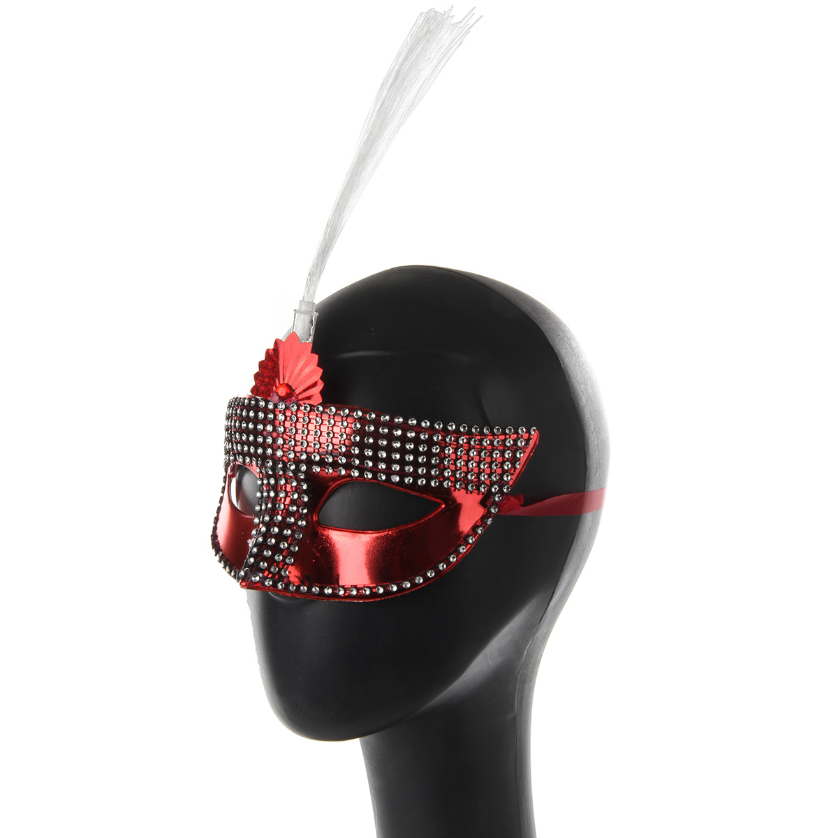Аксессуар, который прекрасно дополнит любой карнавальный образ - красивая маска, выполненная в элегантном и роскошном стиле! Маска декорирована стразами, сверху есть кисточка, подсвечивающаяся разными цветами при нажатии на кнопку. У маски две ленточки, которые завязываются на голове. Благодаря этому маска подойдет для любого размера головы. Добавьте своему праздничному образу загадочности и сдержанного лоска с этой маской! Маска изготовлена из пластика, есть тканевые элементы. Упакована в пакет с хедером с отверстием. Кисточка работает от 3 батареек AG3, входят в комплект. Размеры маски: 19*7*28 см. Размеры маски в упаковке: 25*7,5*33,5 см.