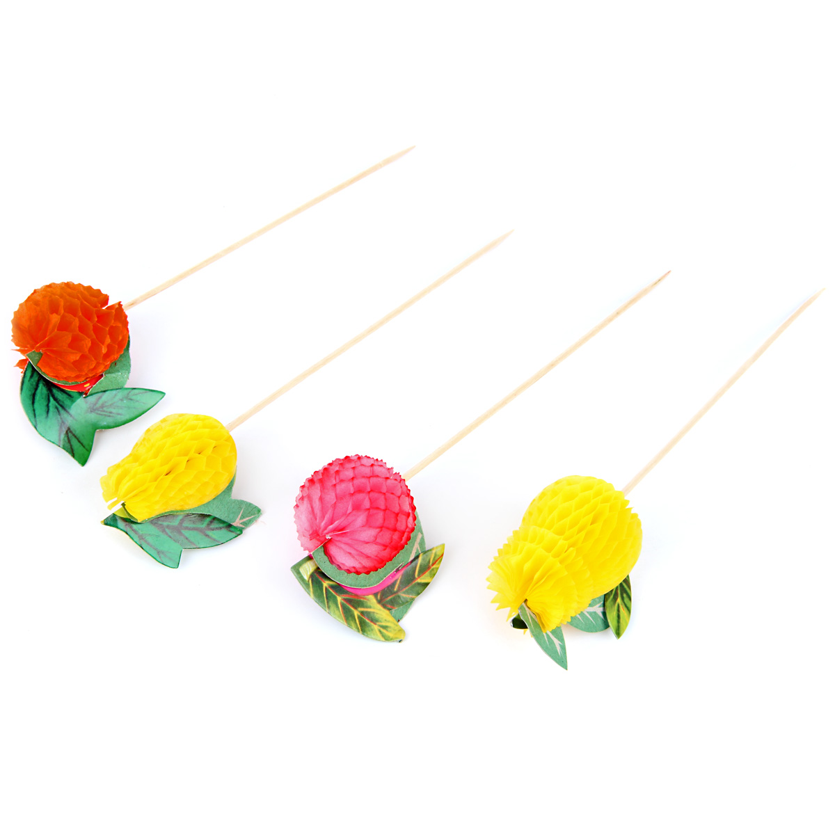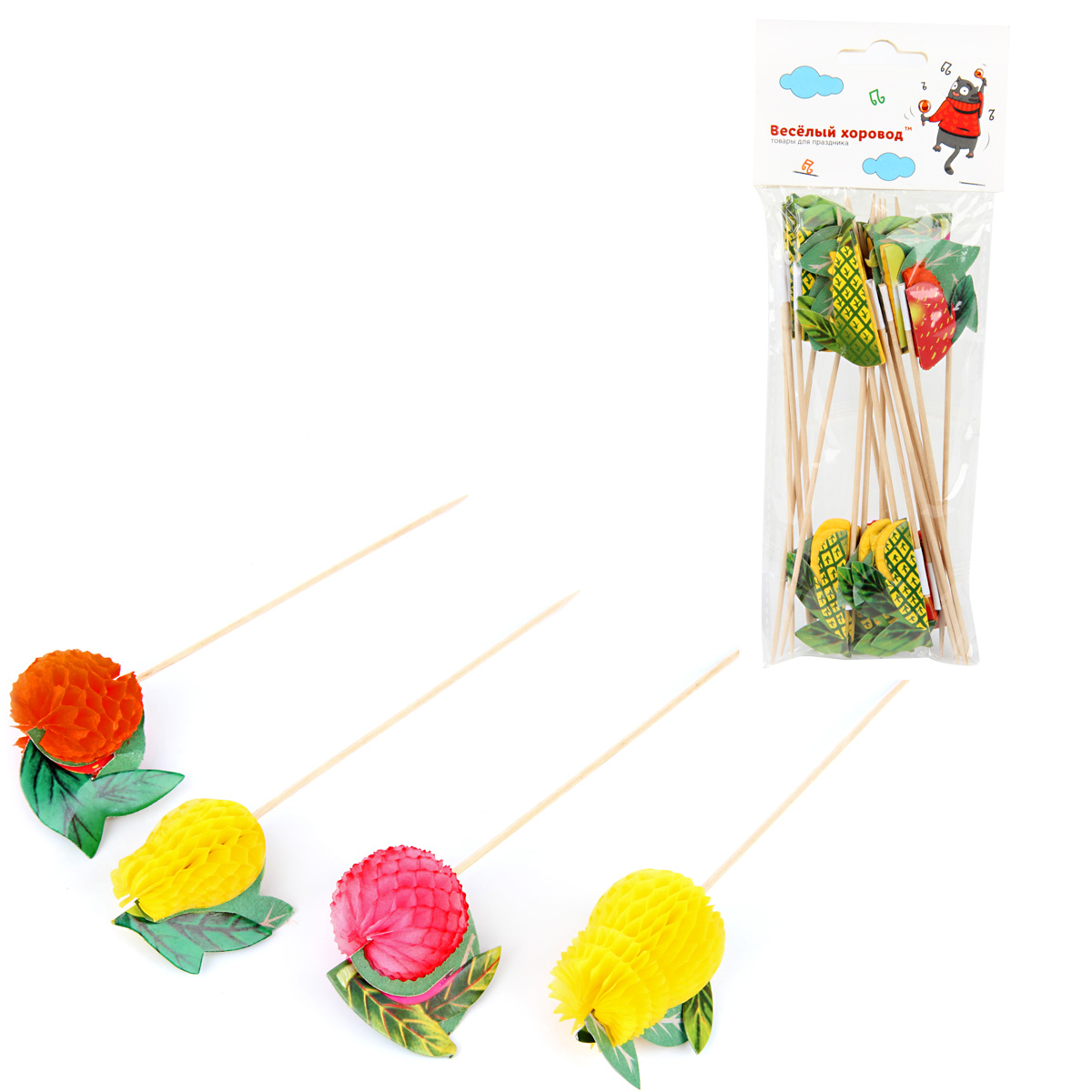 Набор декоративных пик "Фрукты" станет прекрасным украшением любого стола и вечеринки! Яркие фрукты привнесут море позитива на любое мероприятие! В наборе 20 штук декоративных пик. Упаковка: пакет с европодвесом.