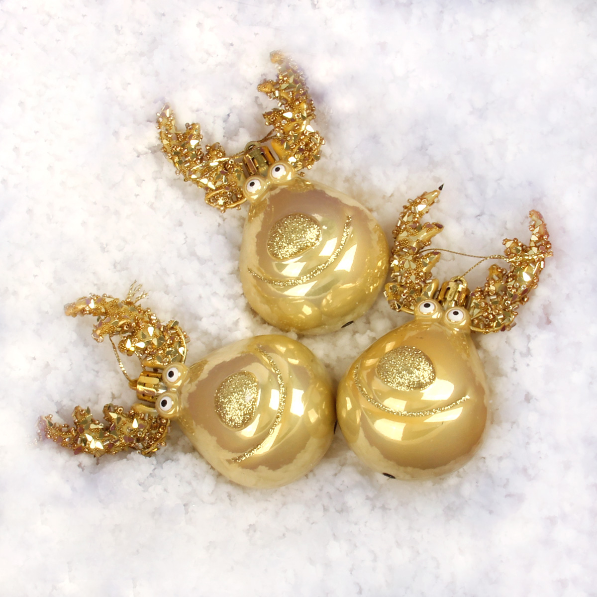 Набор новогодних украшений в виде оленей поможет быстро и со вкусом нарядить елочку, чтобы она стала еще красивее и прекраснее.
