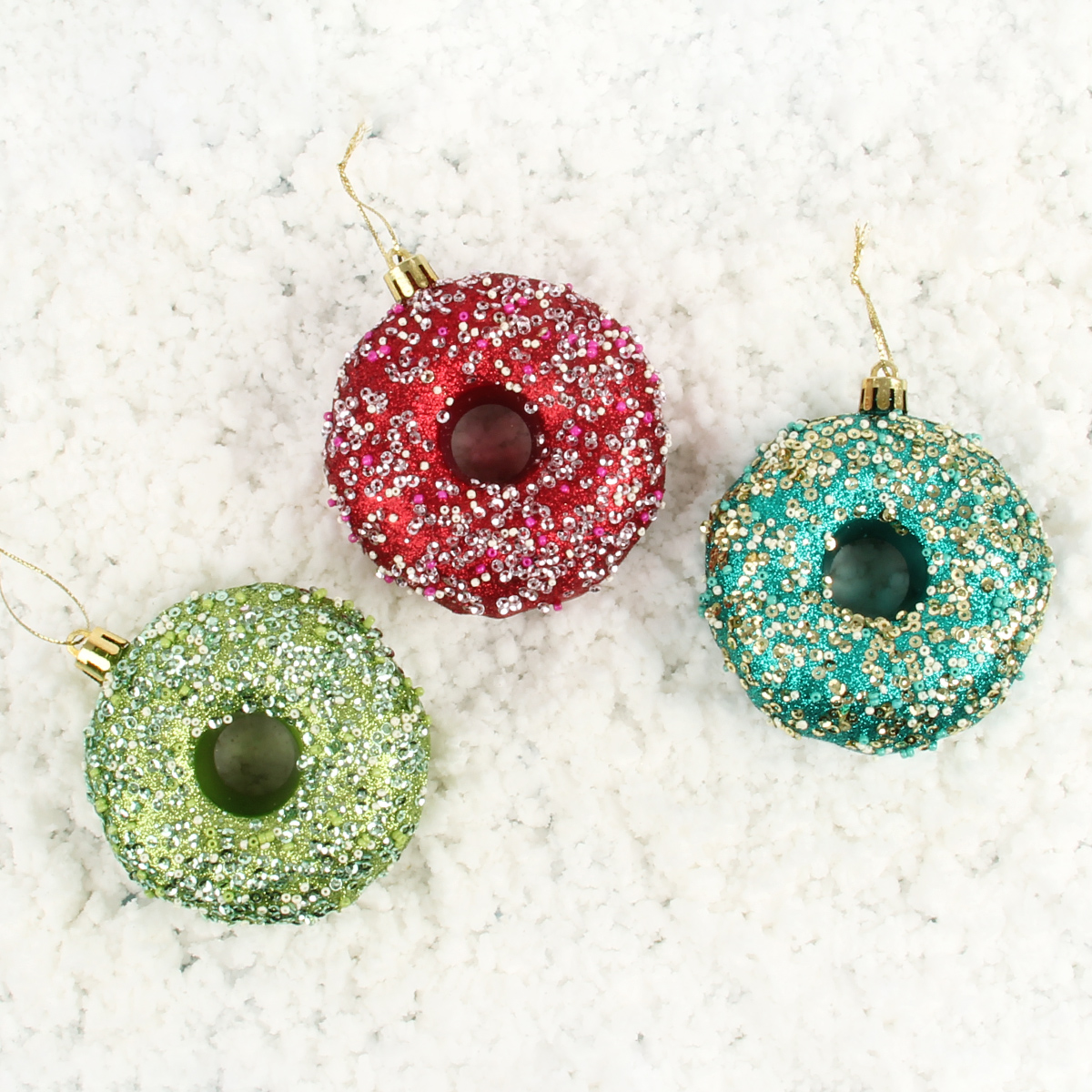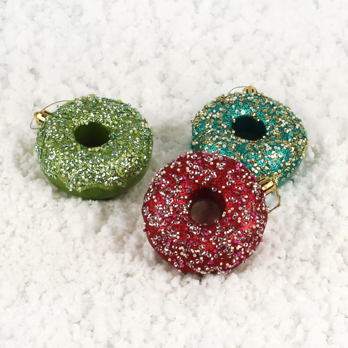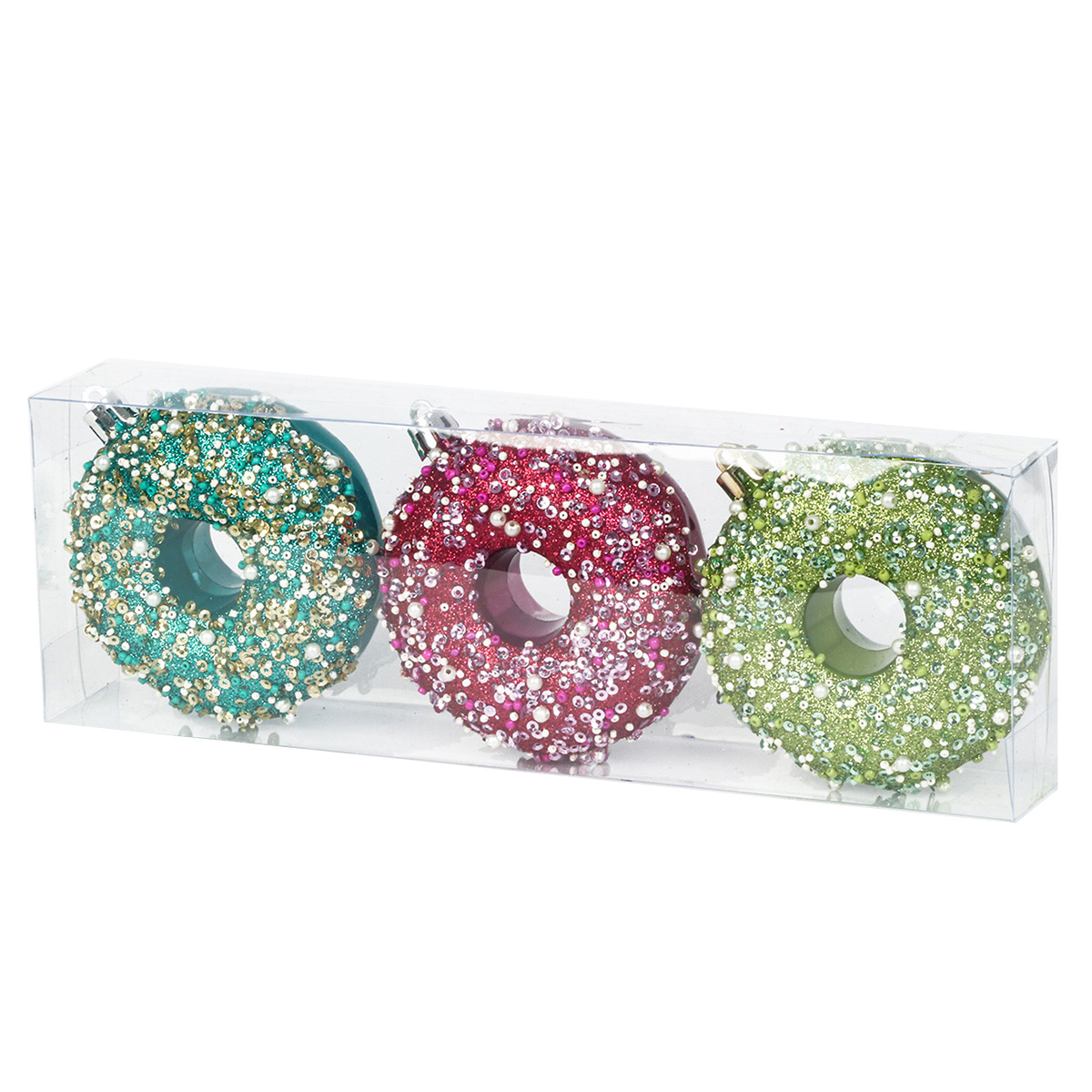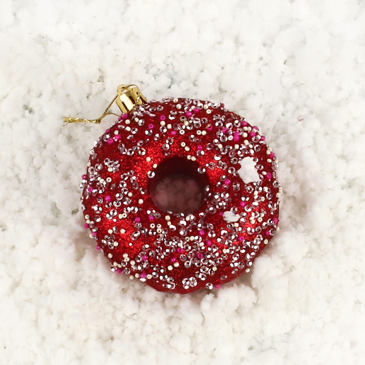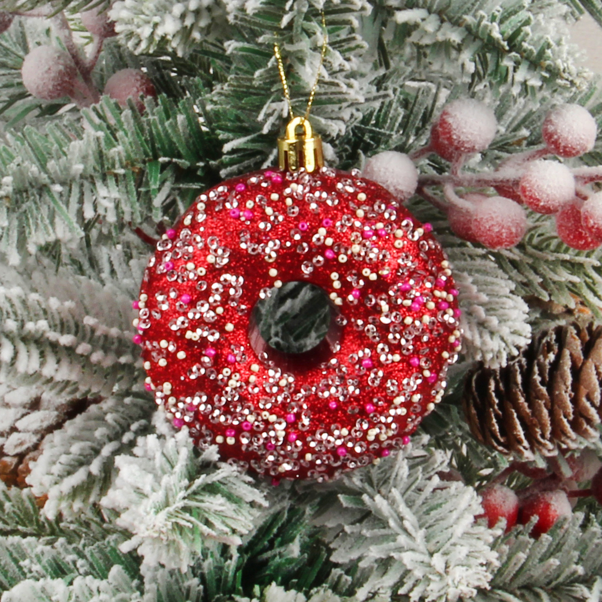Набор новогодних украшений в виде пончиков поможет быстро и со вкусом нарядить елочку, чтобы она стала еще красивее и прекраснее.