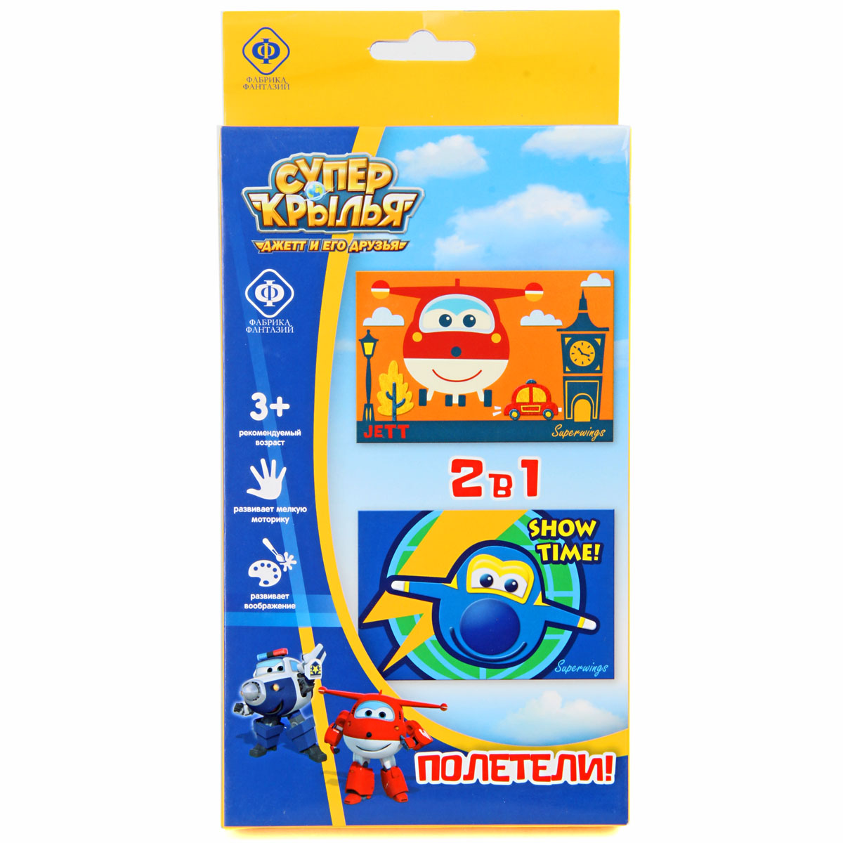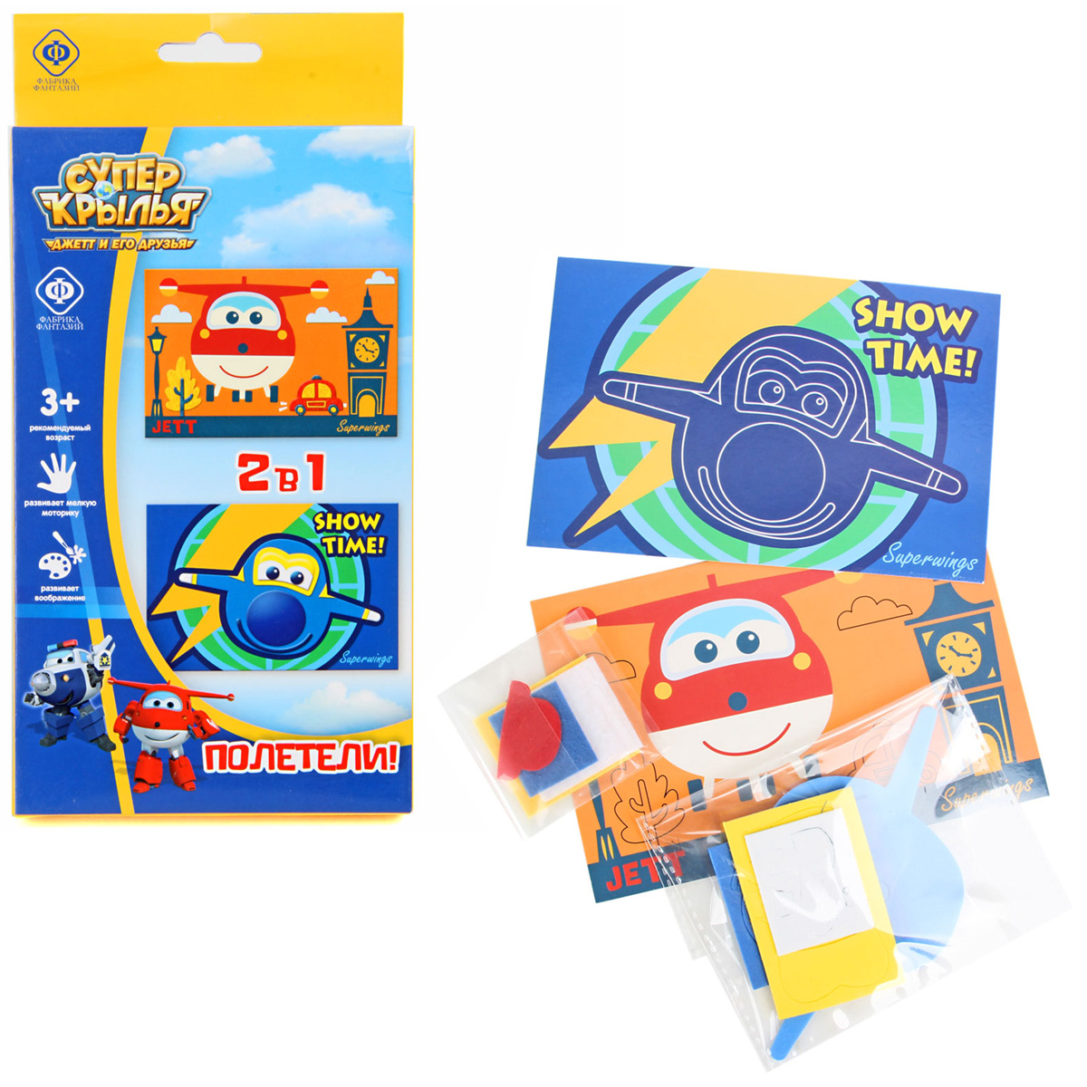 Отличительная особенность набора в том, что он состоит из 2 разных техник. Техника аппликация из Ева. Выберите детали нижнего слоя, снимите защитную пленку и вклейте в контур рисунка. Остальные фрагменты наклейте слоями по образцу. Картина с объемным рисунком готова. Техника аппликация из фетра. Декорируйте картину разными деталями, вклеивая их в контур рисунка. Ева и фетр имеют разные текстуры, что способствует развитию тактильных ощущений. В два раза больше творчества в одной коробочке! Небольшие, компактные наборы удобно брать в дорогу или в гости. В наборе есть все необходимое для отличного результата. А любимые персонажи "Super Wings" сделают процесс еще увлекательнее. Состав набора: 2 картины 10х15см, фигурные детали из Ева и фетра. Размер упаковки: 11х2х22см