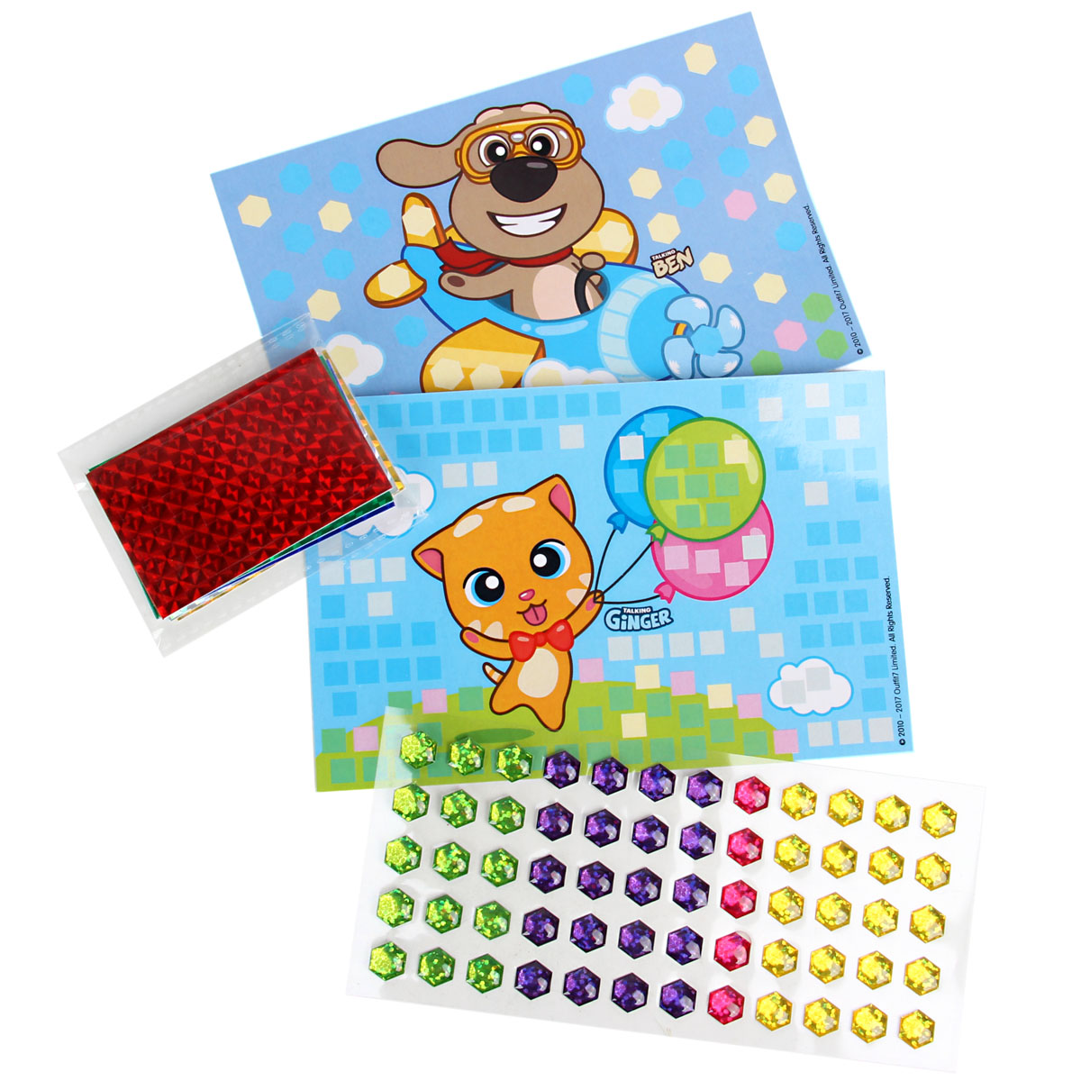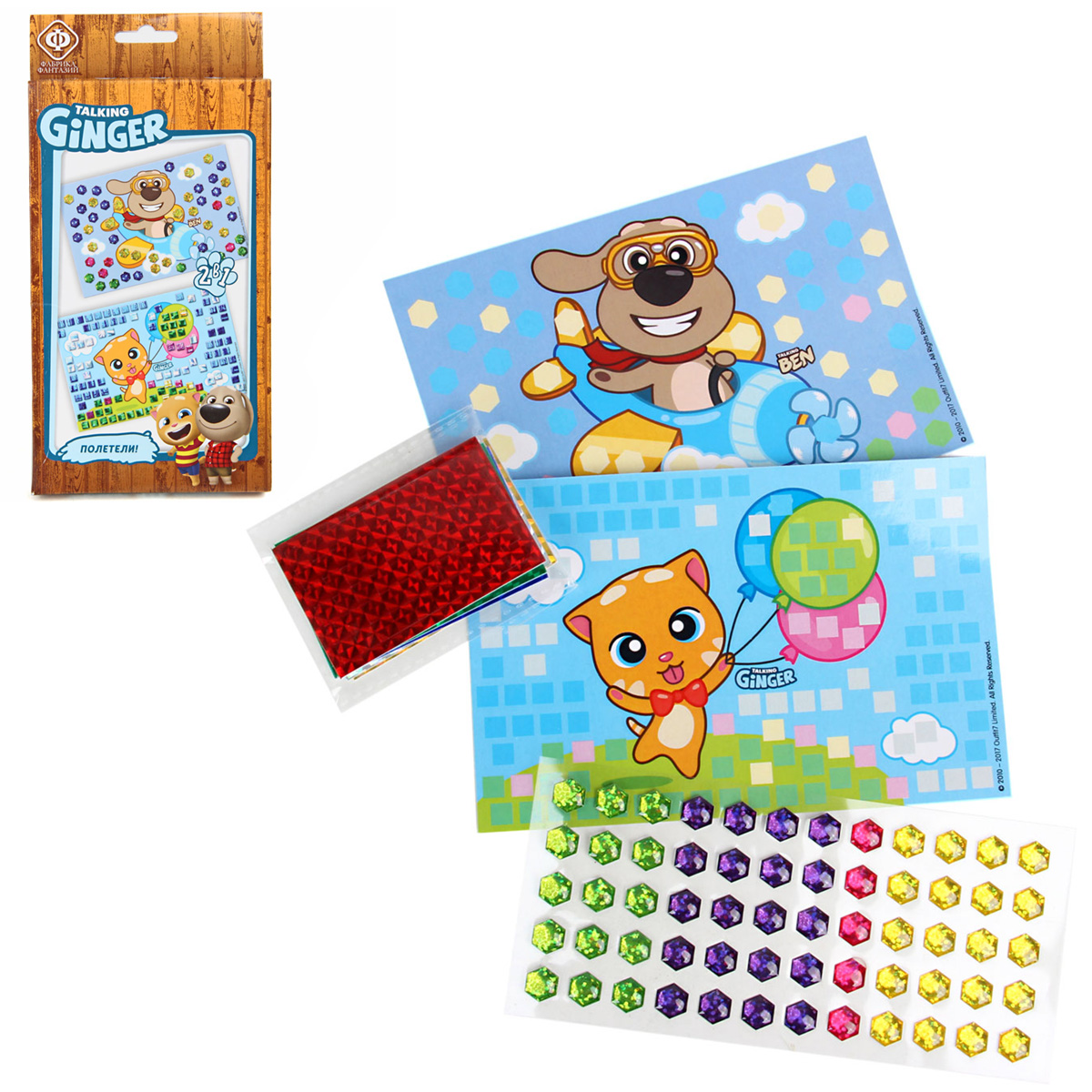 Отличительная особенность набора в том, что он состоит из 2 разных техник. Украсьте картинки кристаллами и мозаикой. Блестящие, сверкающие детали помогут изучить новые геометрические фигуры. В два раза больше творчества в одной коробочке! Небольшие, компактные наборы удобно брать в дорогу или в гости. В наборе есть все необходимое для отличного результата. А любимые персонажи "Talking Tom" сделают процесс еще увлекательнее. Состав набора: 2 картинки 10х15 см, кристаллы 4 цвета, мозаика 5 цветов. Размер упаковки: 11х2х22см