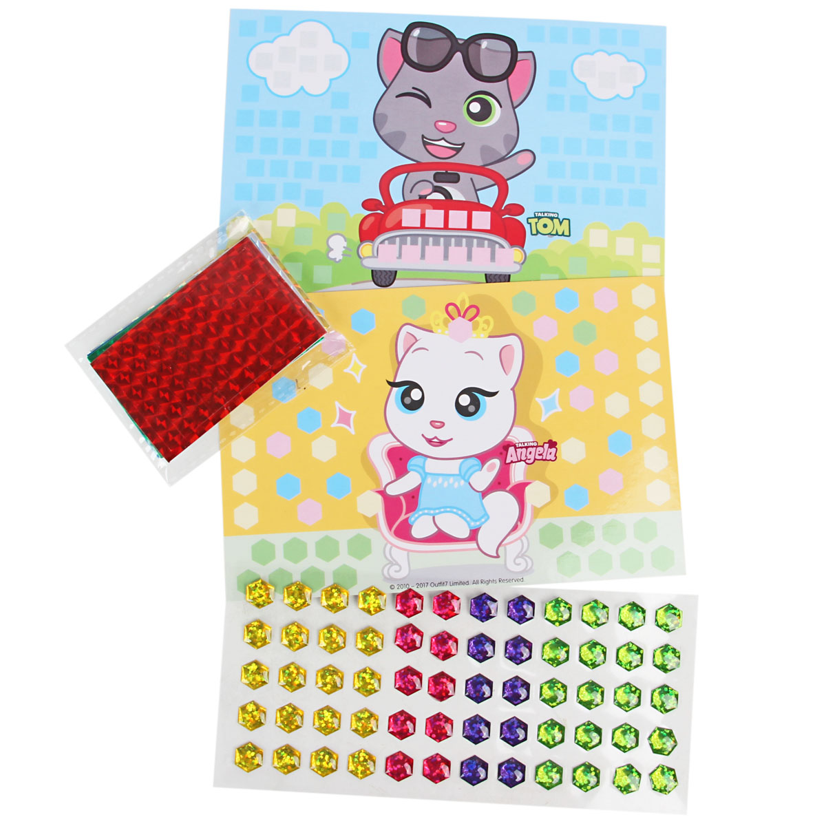 Отличительная особенность набора в том, что он состоит из 2 разных техник. Украсьте картинки кристаллами и мозаикой. Блестящие, сверкающие детали помогут изучить новые геометрические фигуры. В два раза больше творчества в одной коробочке! Небольшие, компактные наборы удобно брать в дорогу или в гости. В наборе есть все необходимое для отличного результата. А любимые персонажи "Talking Tom" сделают процесс еще увлекательнее. Состав набора: 2 картинки 10х15 см, кристаллы 4 цвета, мозаика 5 цветов. Размер упаковки: 11х2х22см