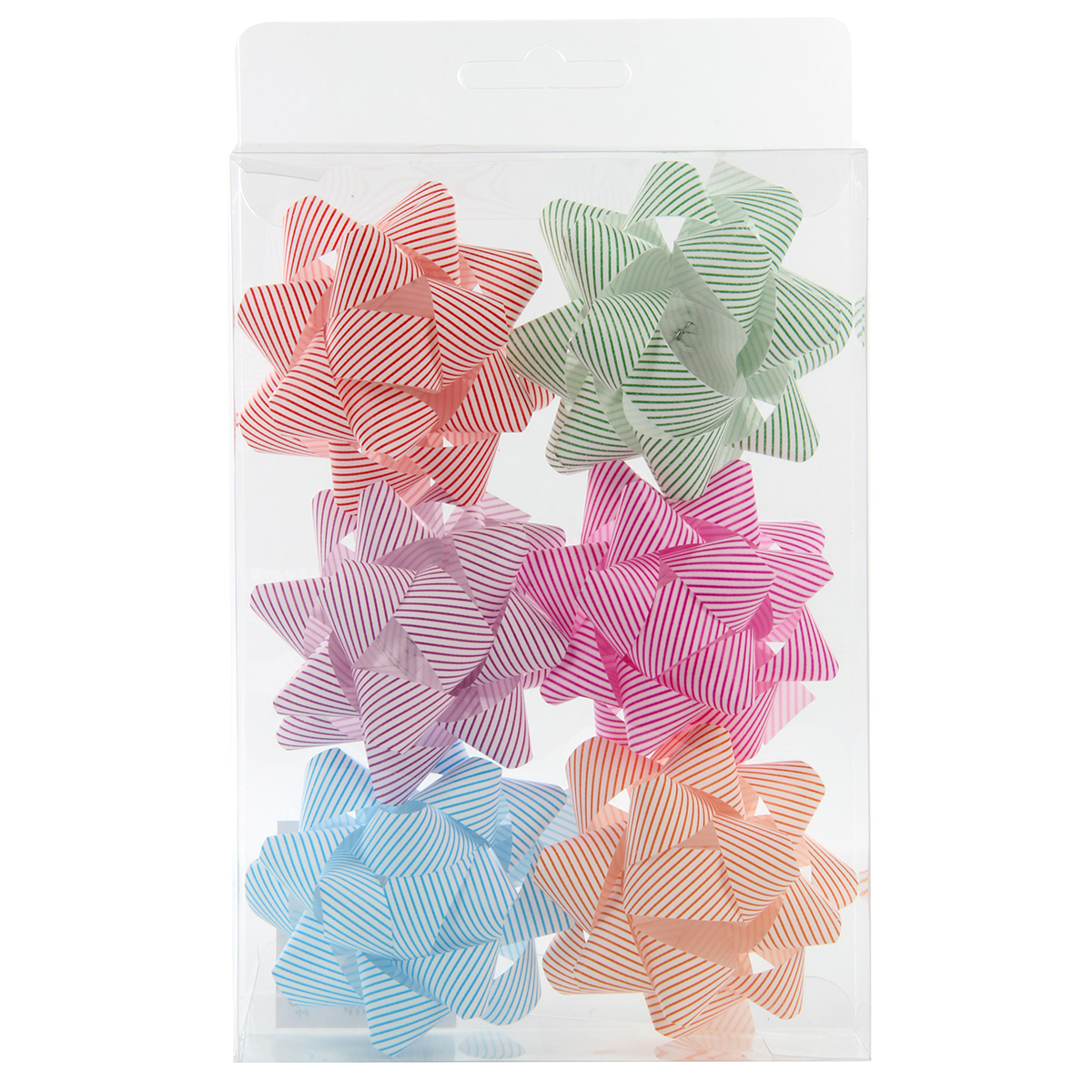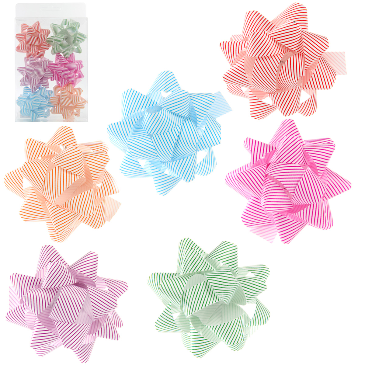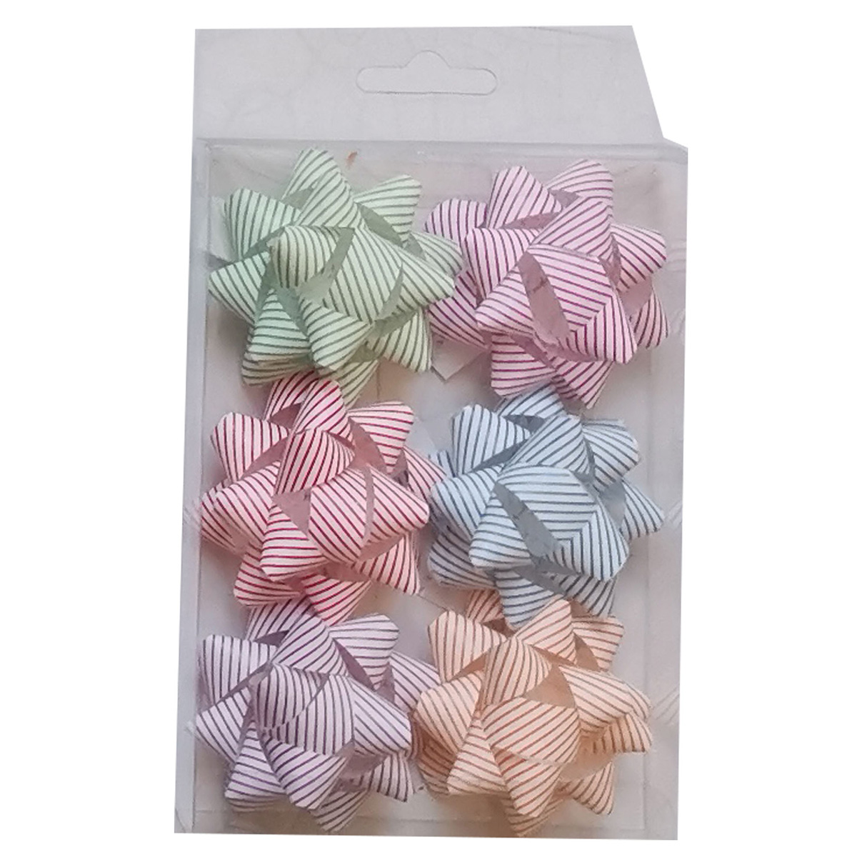 Набор бантиков для упаковки состоит из 6 разноцветных бантов с рисунком.