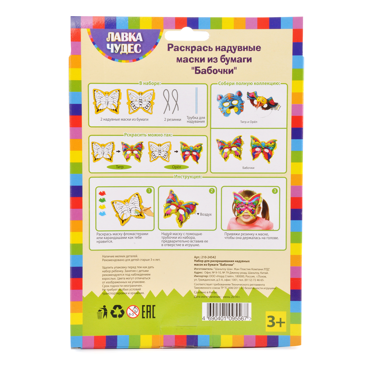 "Уникальные наборы для раскрашивания надувных игрушек всегда порадуют ребенка. Эти наборы позволяют занять ребенка спокойным делом и в то же время принесут ему массу положительных эмоций от того, что игрушку можно надуть. Благодаря аксессуарам, входящим в комплект, ребенок получает полноценную игрушку, которая позволит моделировать различные игровые ситуации. В набор входит: две маски из бумаги и полиэтилена, пластиковая трубочка. Размер коробки 17,5х25х2 см"