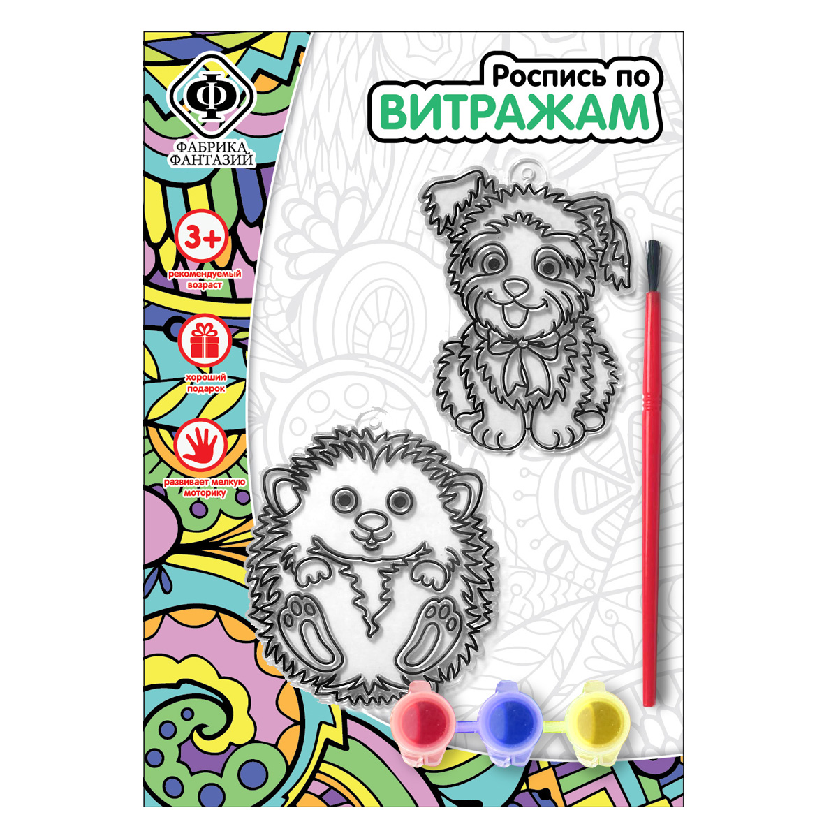 Набор для росписи витража "Щенок и ёжик"