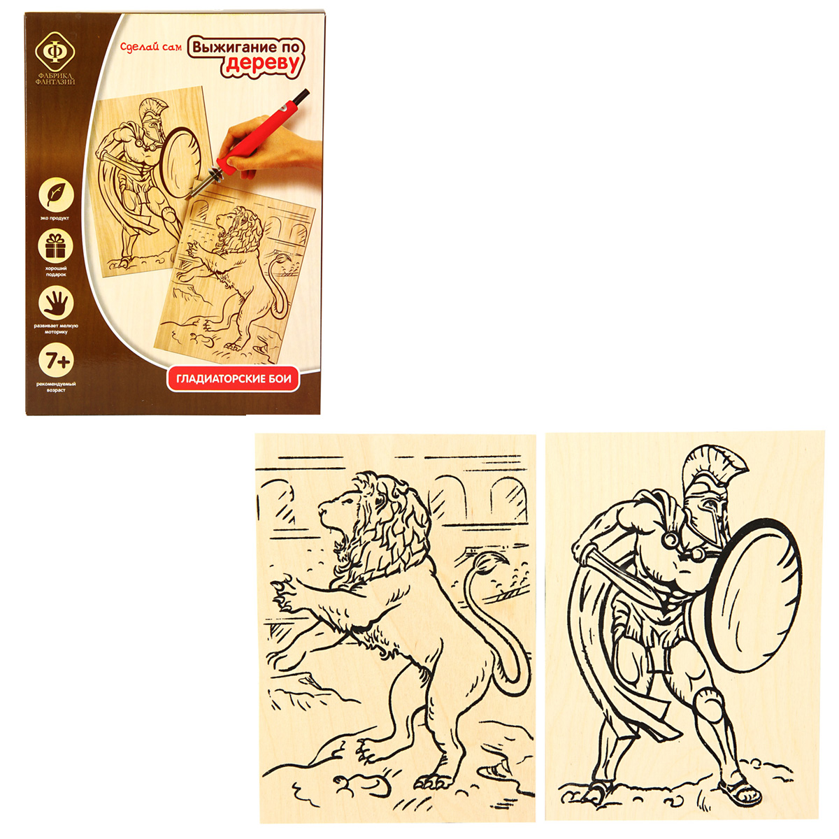 Набор для выжигания "Гладиаторские бои" 2хА5 . В наборе: , 2 фанеры с рисунком 15х21 см. Развивает мелкую моторику рук и фантазию ребенка. Рекомендован для детей в возрасте от 7 лет. Картонная коробка , размер 22,5х17х3 см. Инструкция на коробке.