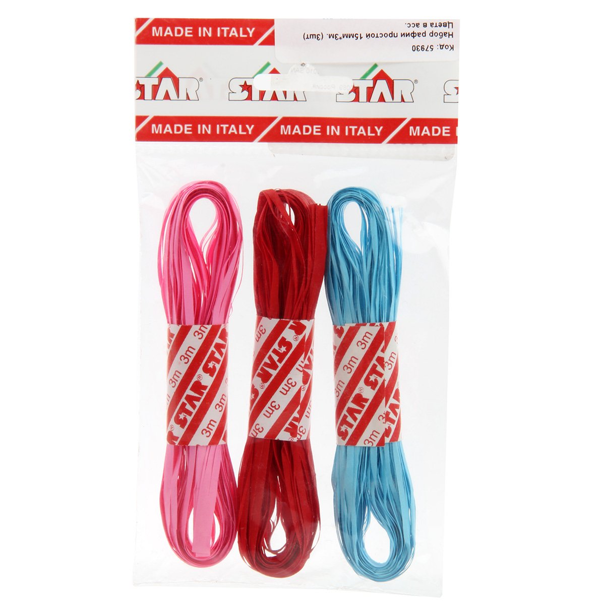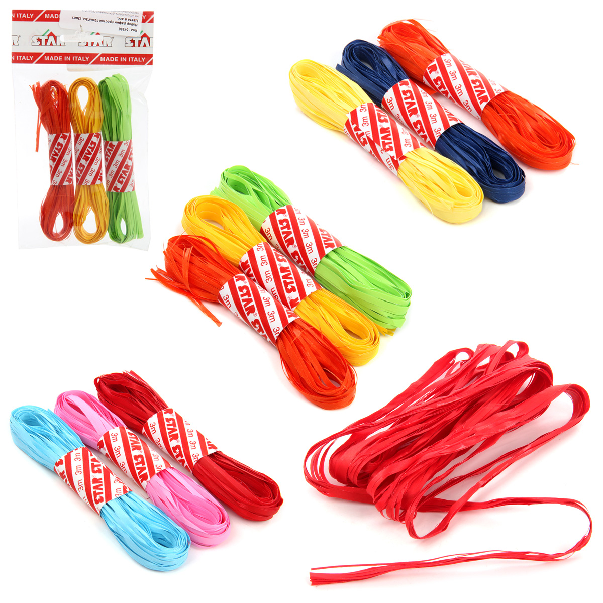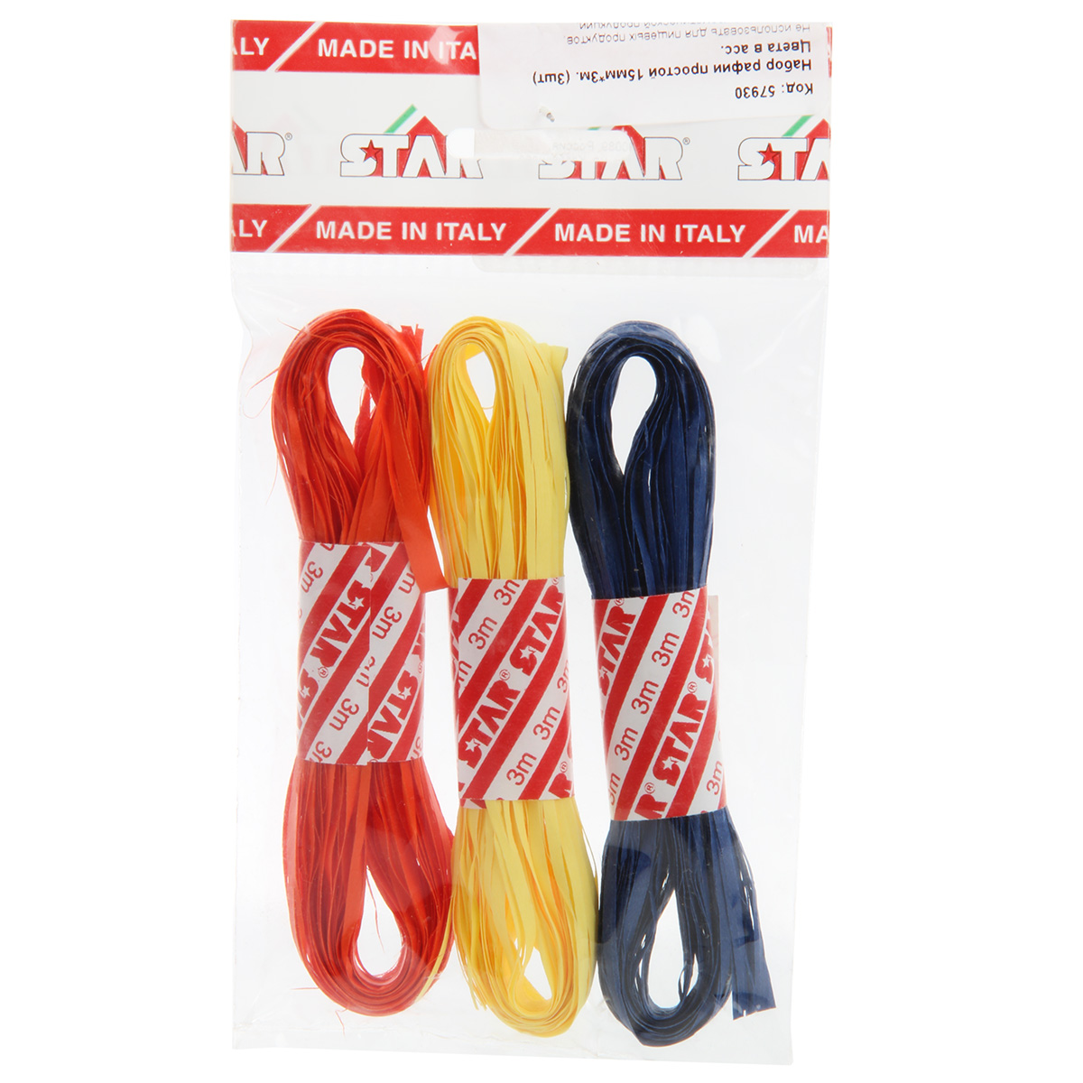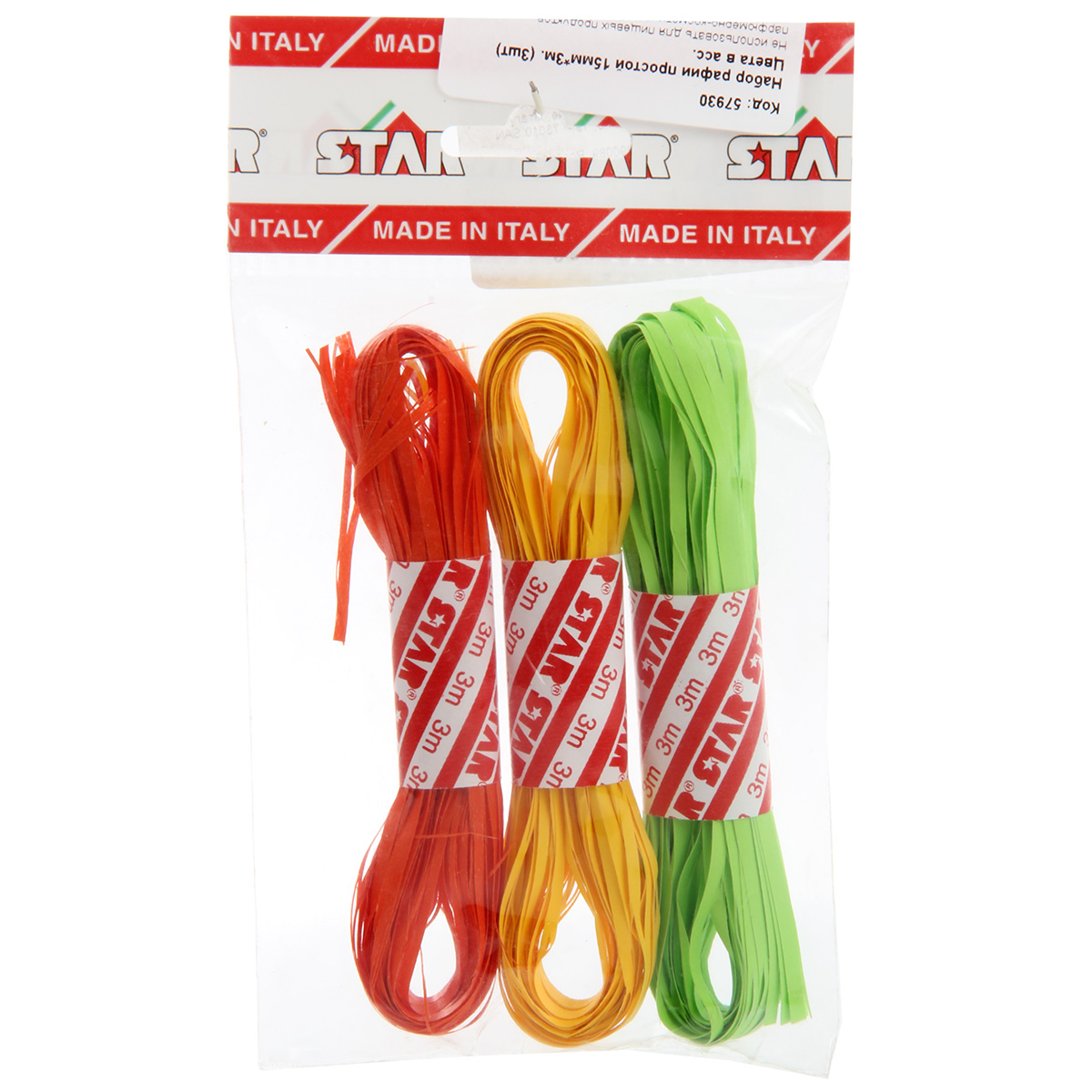 Набор рафии простой 15мм*3м. (3шт) Цвета в асс.