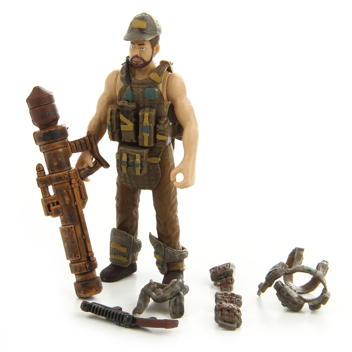 В комплект входит игрушка солдат, 7 аксессуаров, 2 игрушечного оружия.