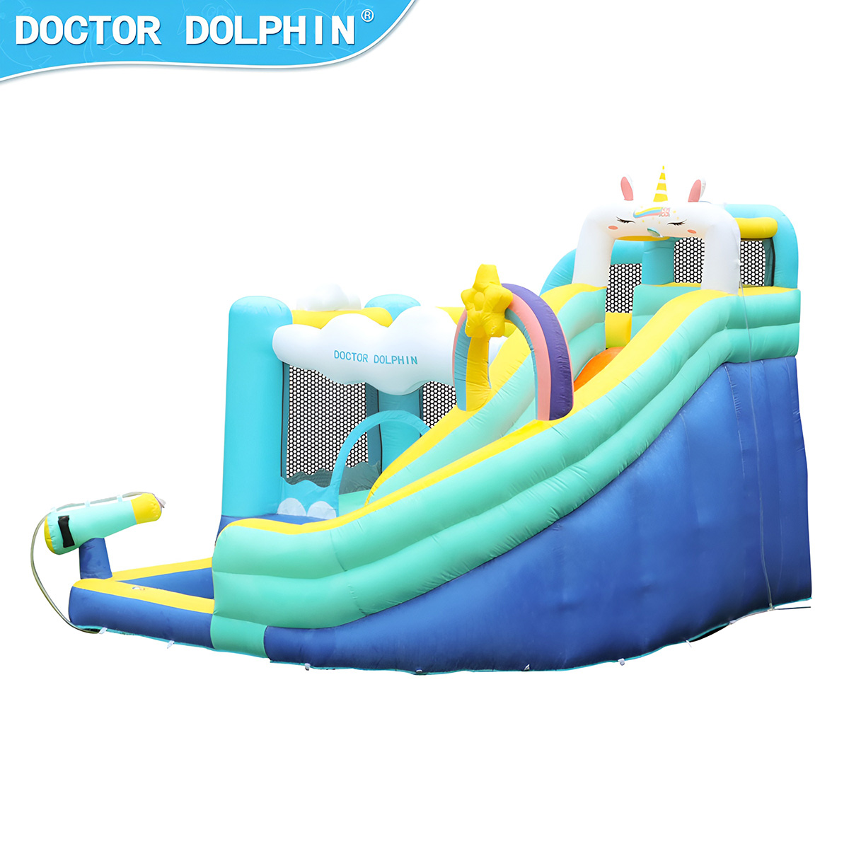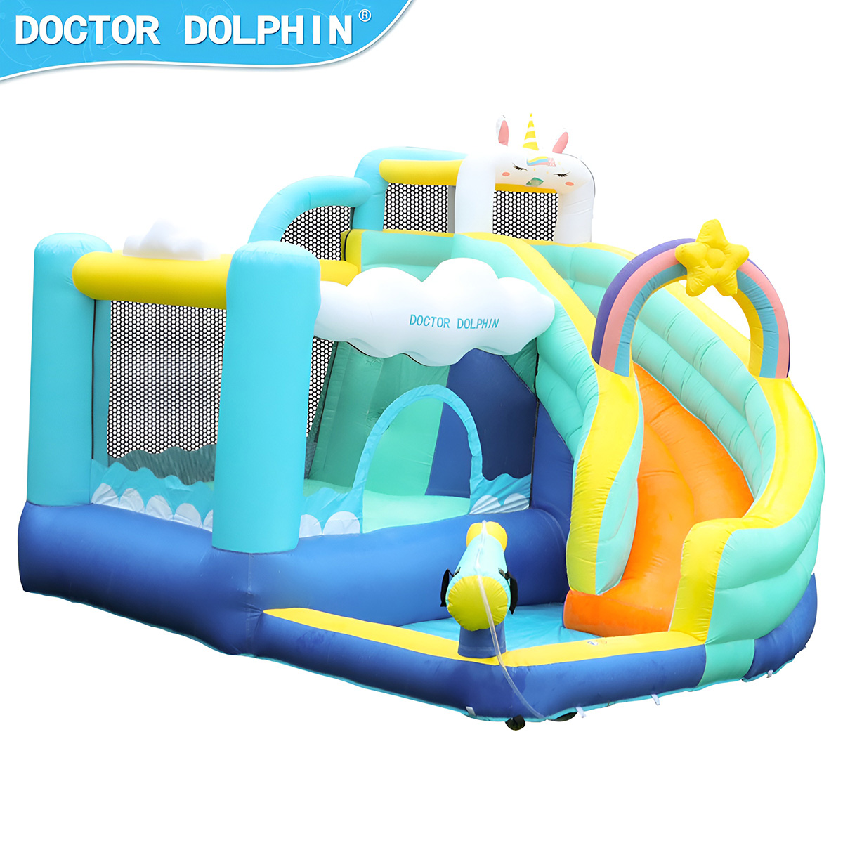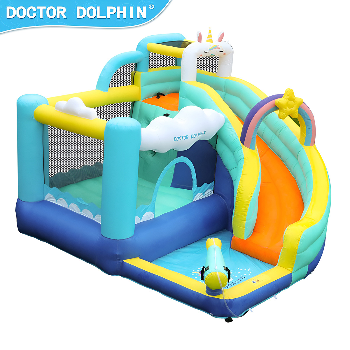 Надувной дом для детей имеет продуманную конструкцию, изготовлен из ткани Оксфорд 420D+840D, отличающейся износостойкостью, повышенной устойчивостью к разрыву, водонепроницаемостью.