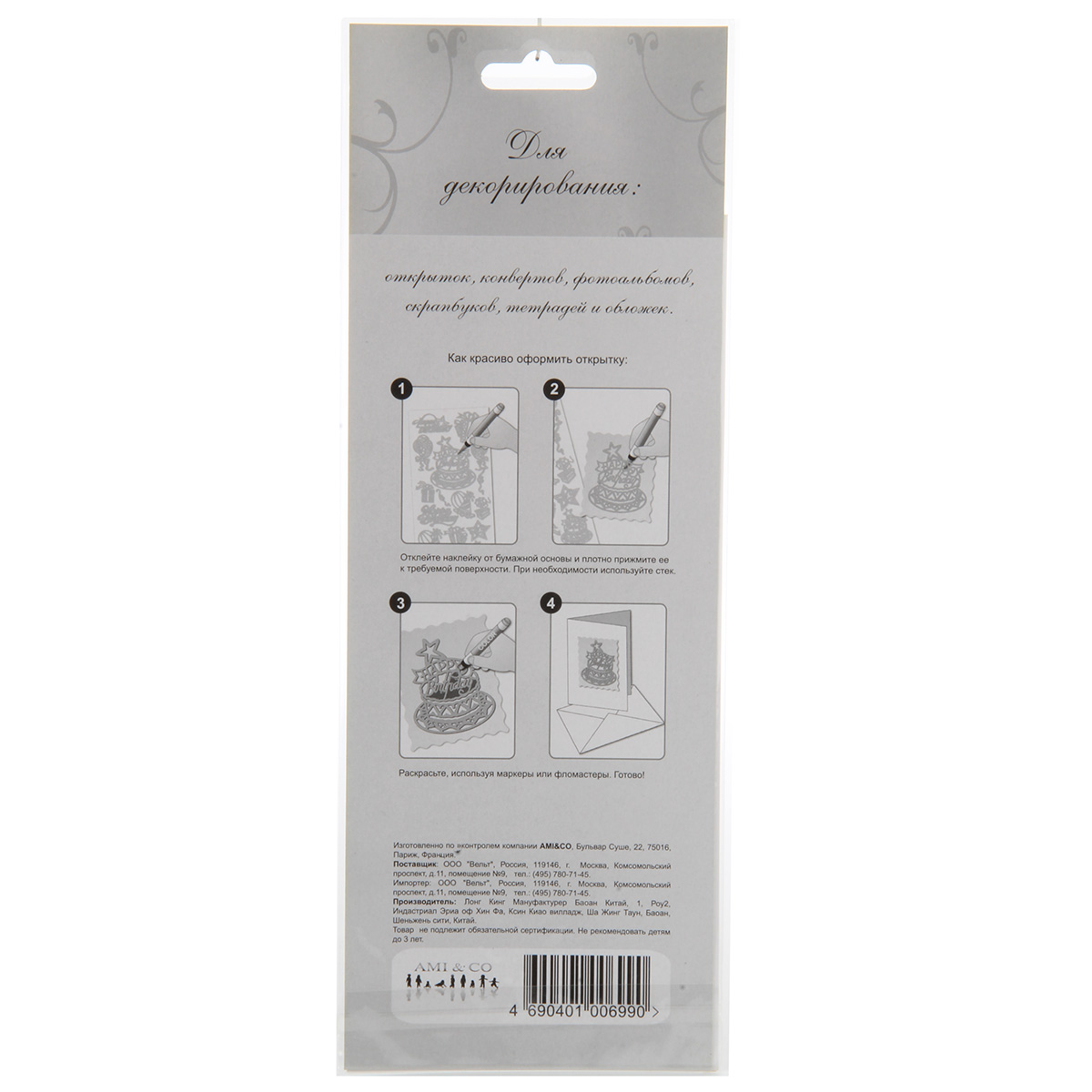 Набор наклеек для оформления - полезный помощник при декорировании разных предметов: тетрадей, обложек, фотоальбомов, конвертов, открыток, скрапбуков, детских рисунков, подарков. Простота и удобство использования, клейкий слой. Создавайте интересные композиции с таким набором наклеек, получится оригинальное произведение. Материал: полимерный Размеры листа с наклейками: 10*23 см. Размеры в упаковке: 18*28 см.