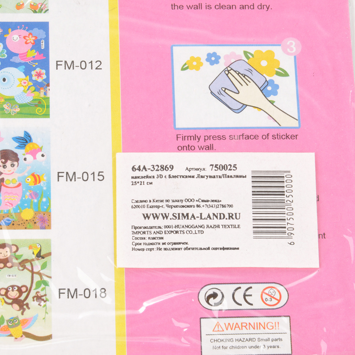 Главная / Каталог товаров / ФиксЦена / Наклейка 3D с блестками, Лягушата/павлины 15х21 см