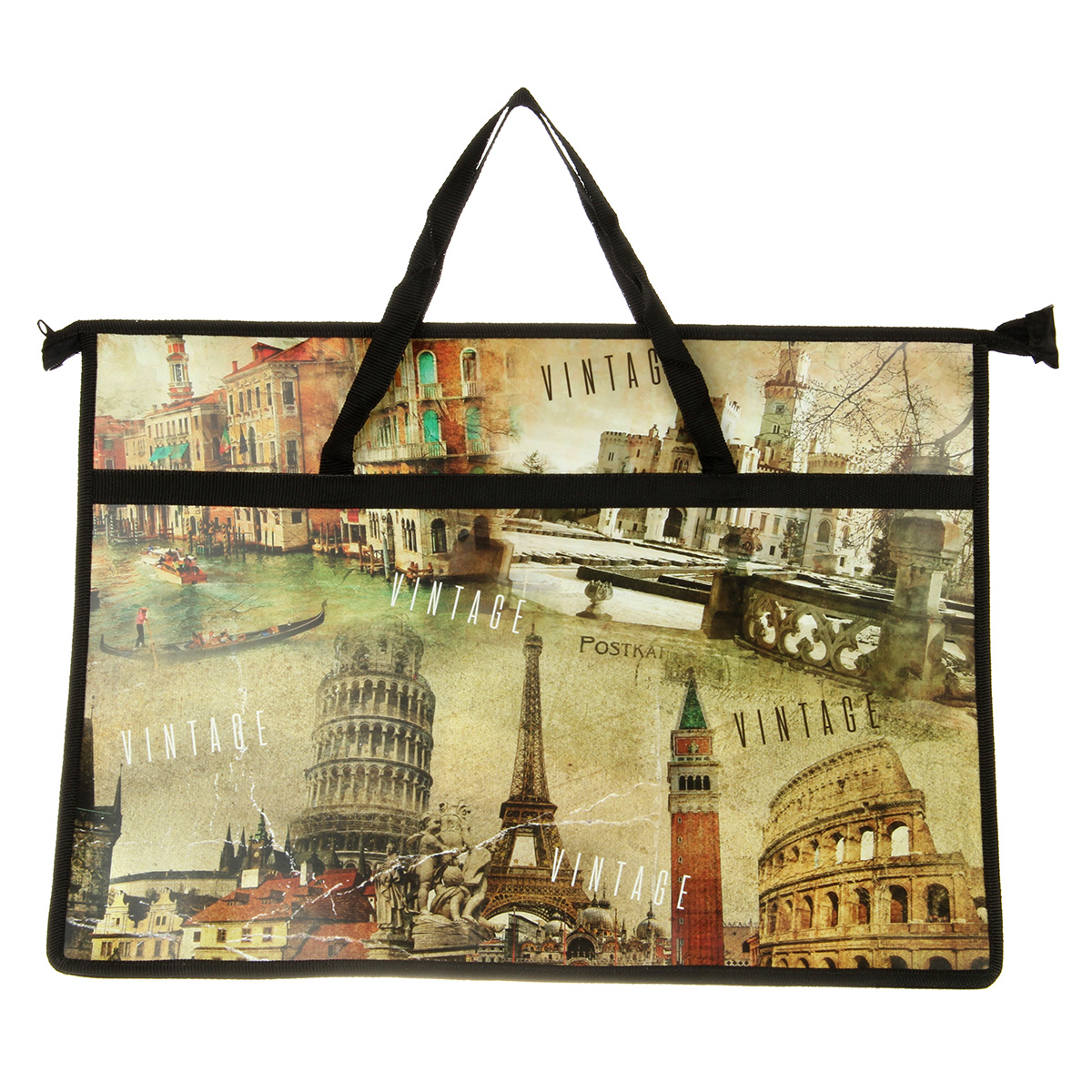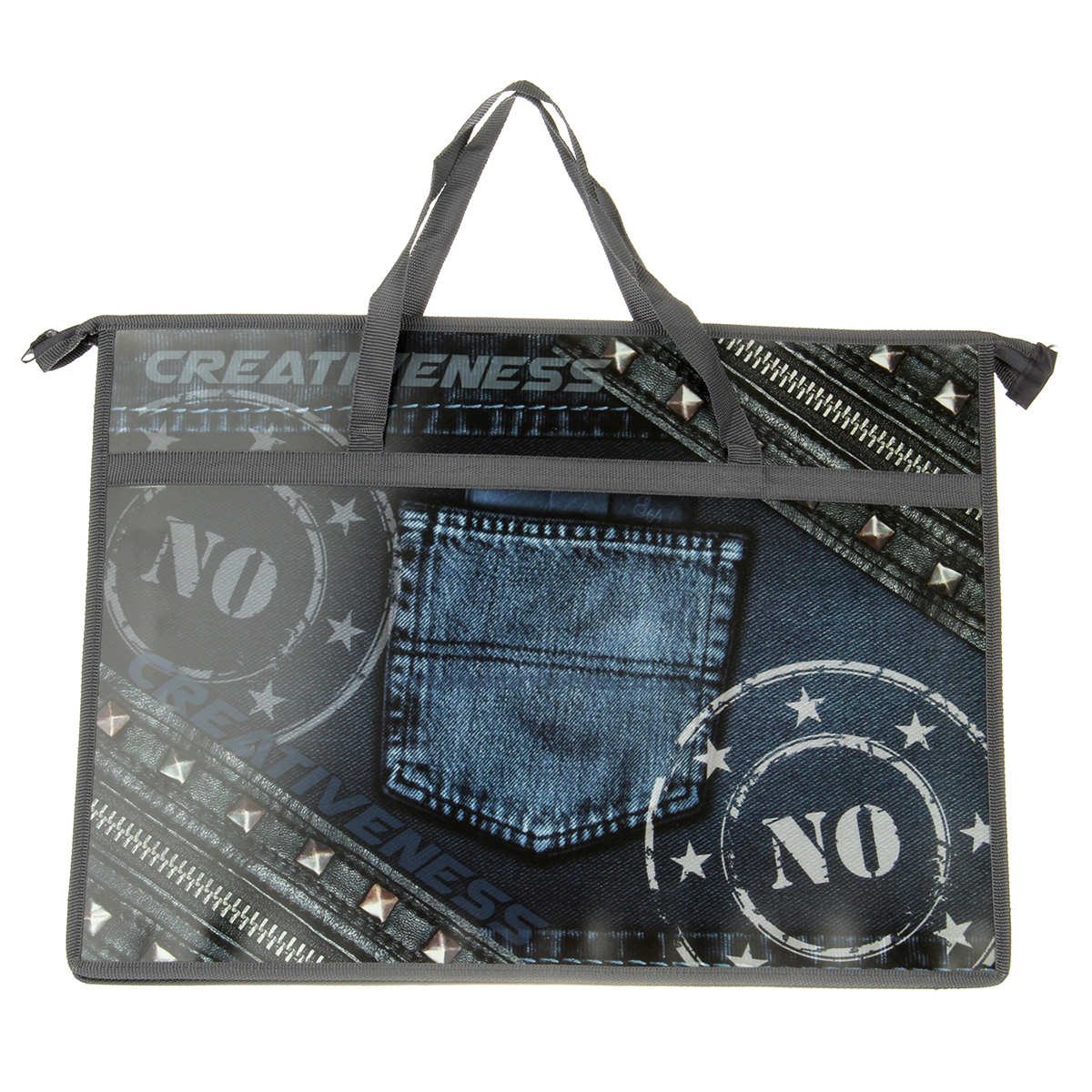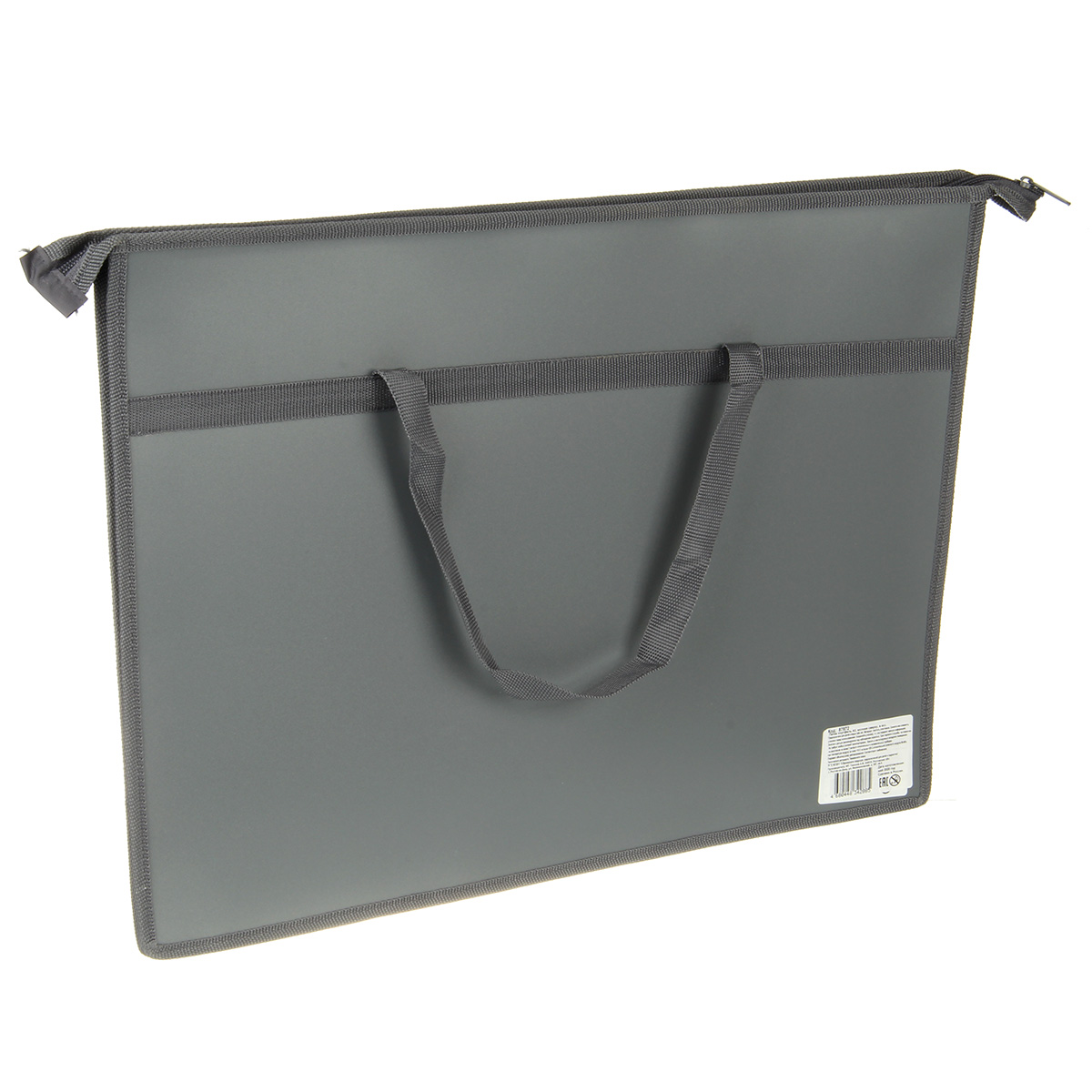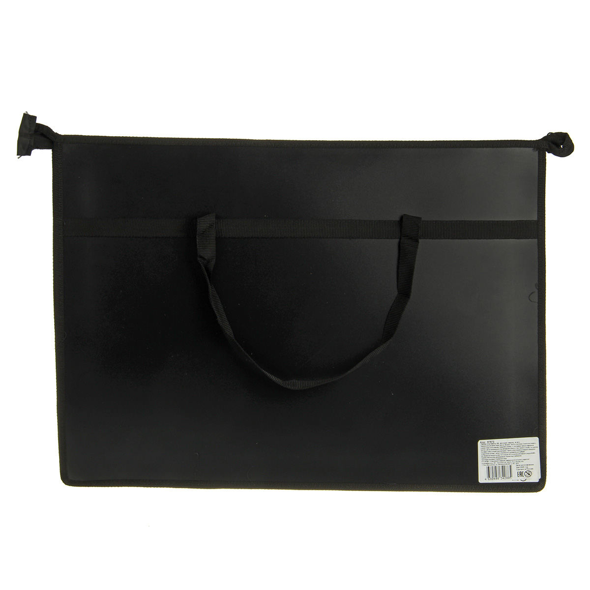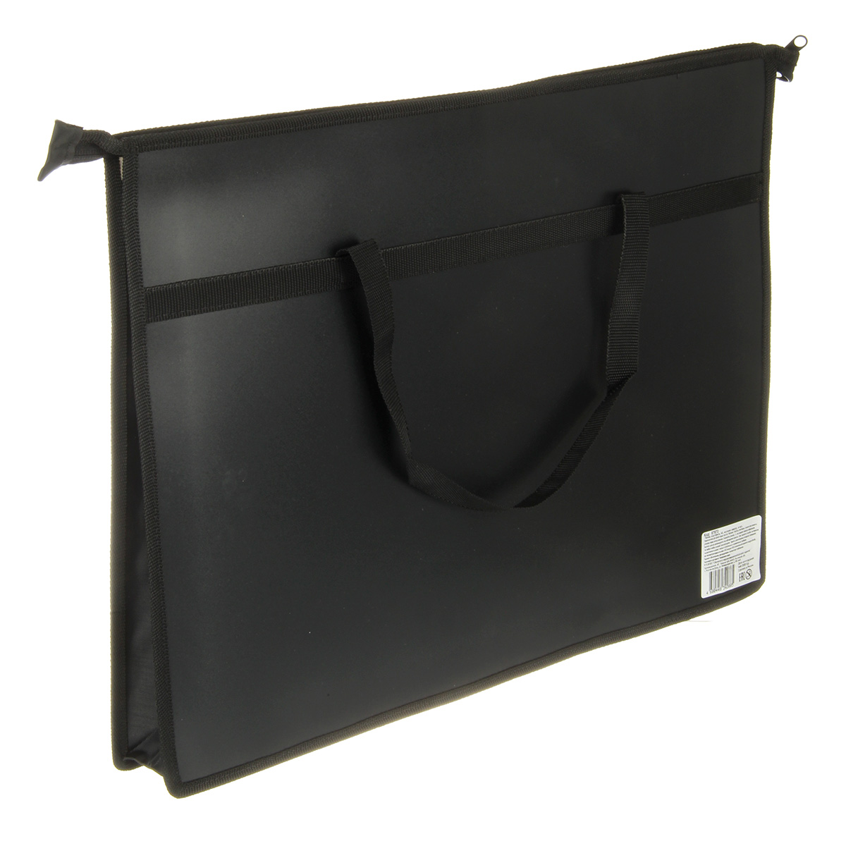 Папка для хранения и переноски чертежей, рисунков и других художественных произведений формата А3. Одно большое отделение. Застегивается на молнию сверху. Выполнено из полимера, по краям есть тканевая окантовка. Имеет прочный влагостойкий корпус. Есть удобные ручки.