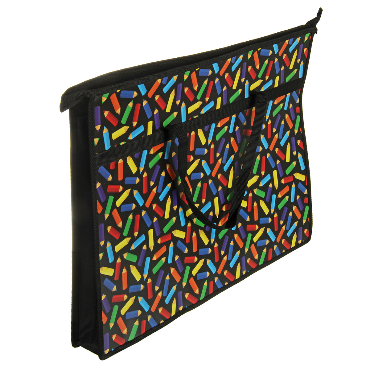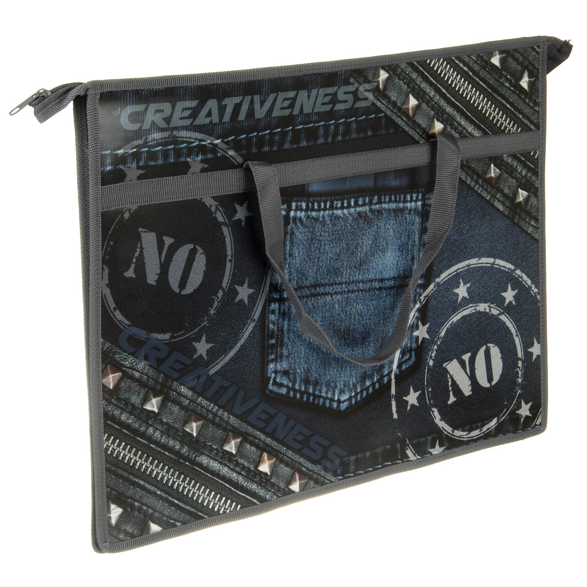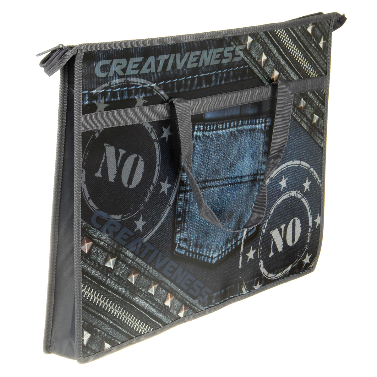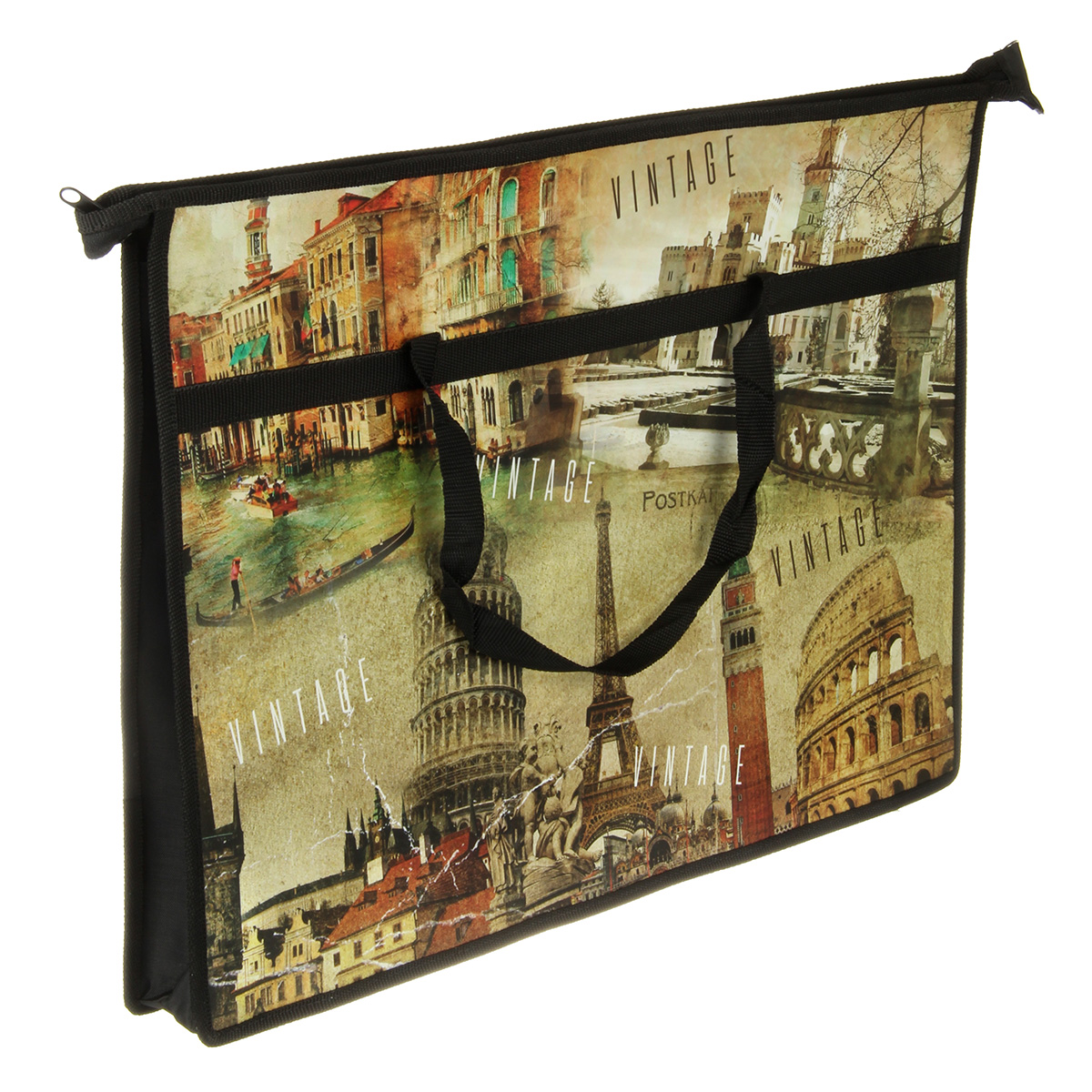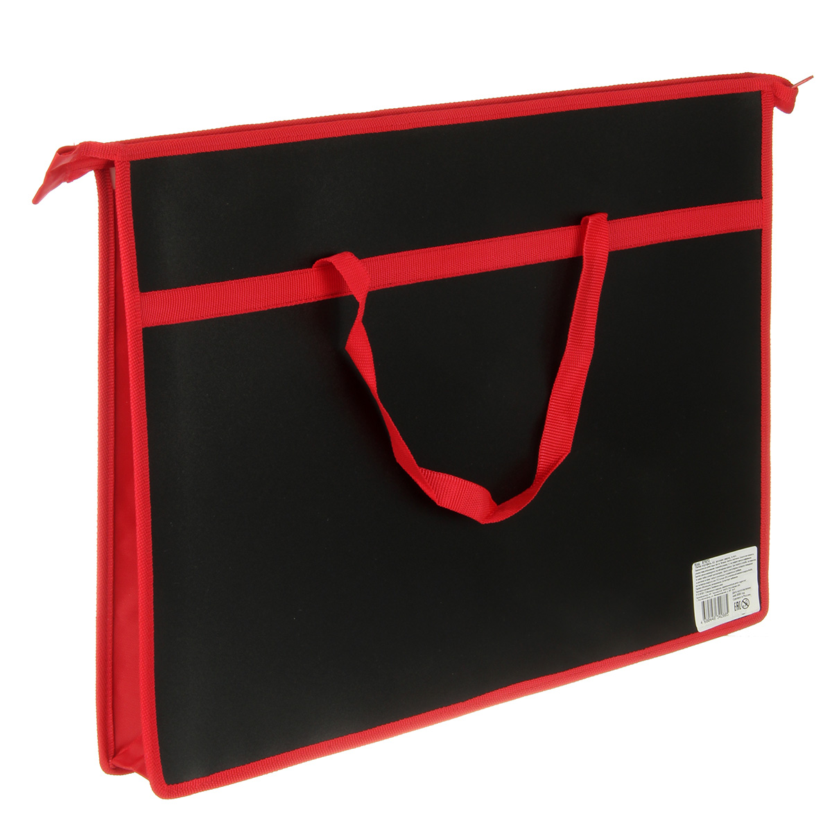 Папка для хранения и переноски чертежей, рисунков и других художественных произведений формата А3. Одно большое отделение. Застегивается на молнию сверху. Выполнено из полимера, по краям есть тканевая окантовка. Имеет прочный влагостойкий корпус. Есть удобные ручки.