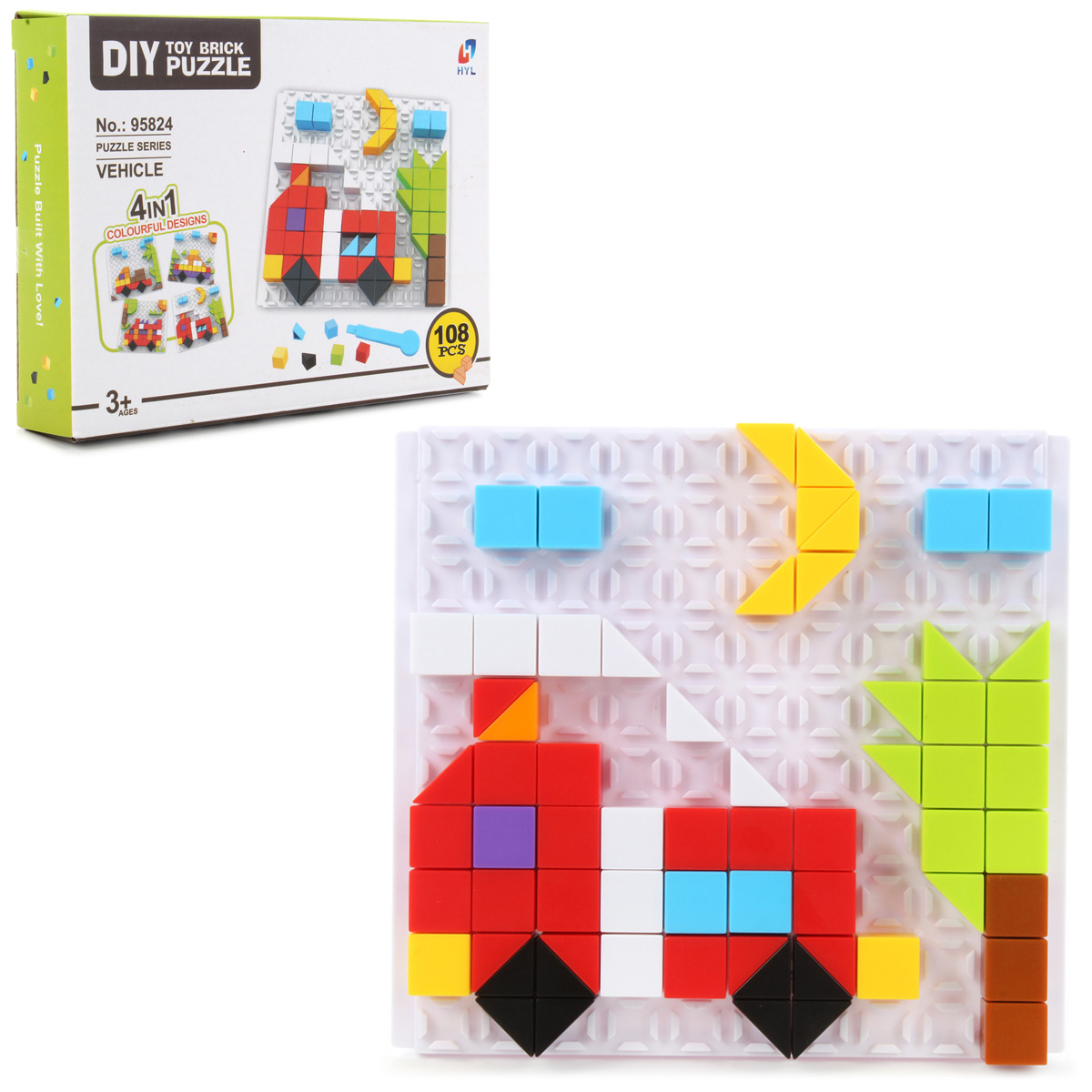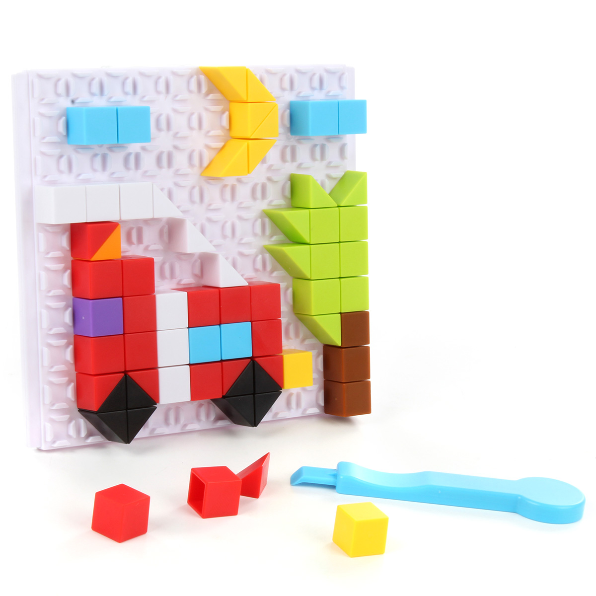 Отличный конструктор-пазл для развития мелкой моторики ручек, координации движений, пространственного и логического мышления ребенка. В комплект входят платформа-основа, на которую крепятся разноцветные фигурки пазла, сами фигурки пазла, инструмент, с помощью которого можно вынимать детальки пазла из картинки, цветная инструкция и подвес. Собирайте вместе с малышом представленные в инструкции модельки машинок, придумывайте свои картинки, помогая ребенку изучать окружающий мир, знакомиться с цветами и формами. Получившуюся картинку можно повесить на стену на специальный подвес. Игрушка изготовлена из безопасного и высококачественного полимерного материала. Размеры площадки-основы: 12*0,7*11 см. Размеры фигурки пазла около 1,1*1,1*1,1 см. Размеры коробки: 22*4*16 см.