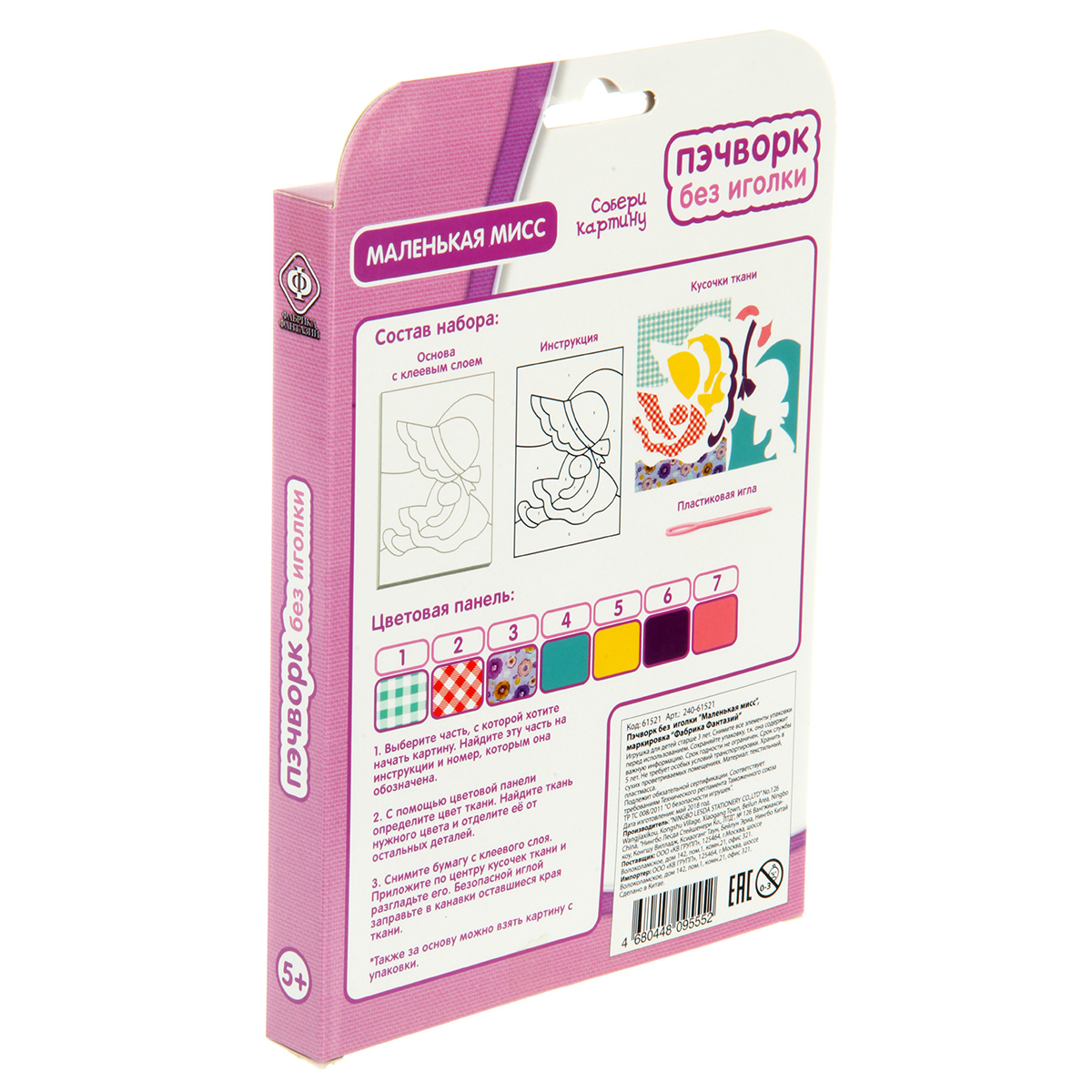 Описание: Пэчворк без иголки – искусство создания живописных картин и красочных панно из лоскутов ткани. Лоскуты ткани накладываются на основу с клеевым слоем, а края заправляются в прорезанные канавки. В результате сочетания кусочков разного цвета и формы вырисовывается оригинальный сюжет или узор. Набор удовлетворит потребности в творчестве, даже если ребенок еще не умеет шить. Творите, созидайте и получайте удовольствие от процесса и от результата! Состав набора: основа с клейким слоем 13х18 см, фигурные детали ткани, пластиковый стек, инструкция. Размер упаковки: 15,5х2х22,5 см