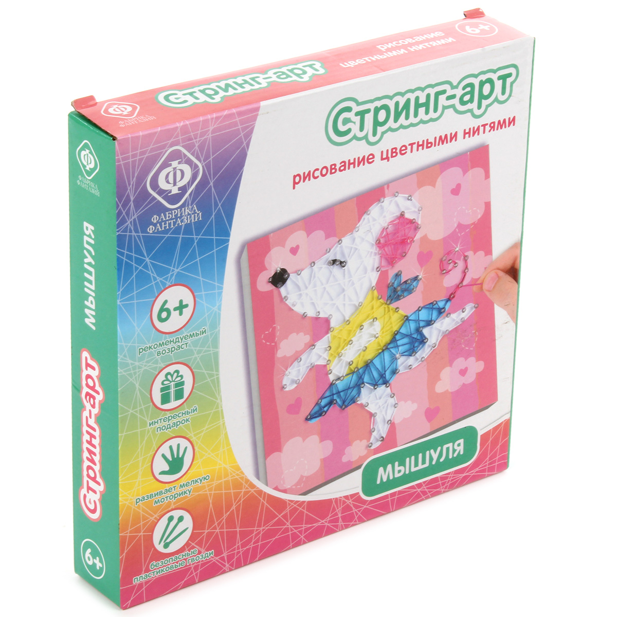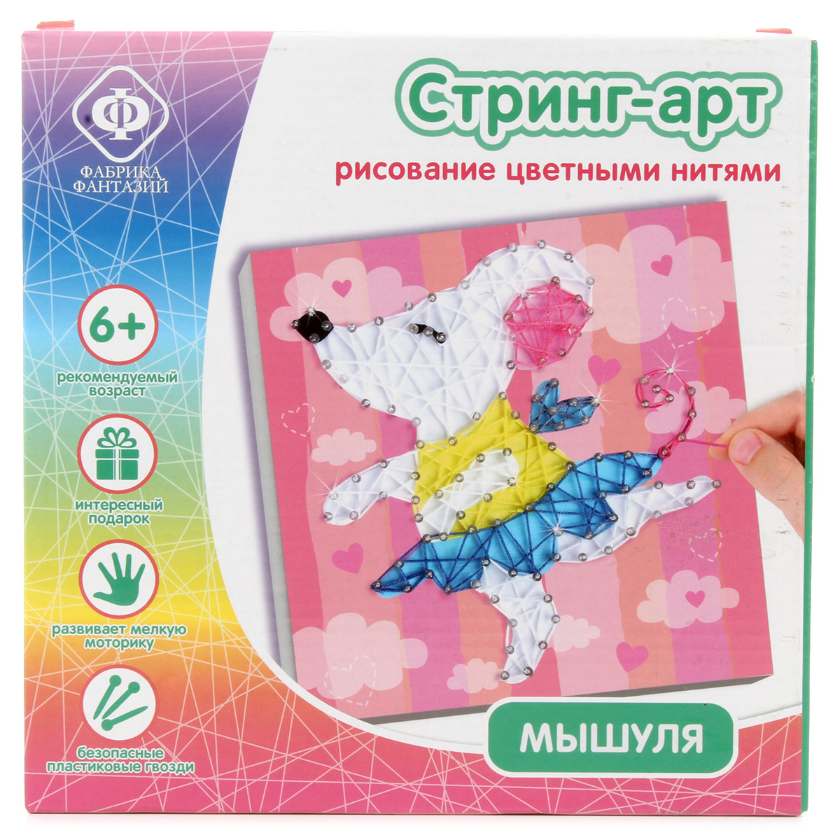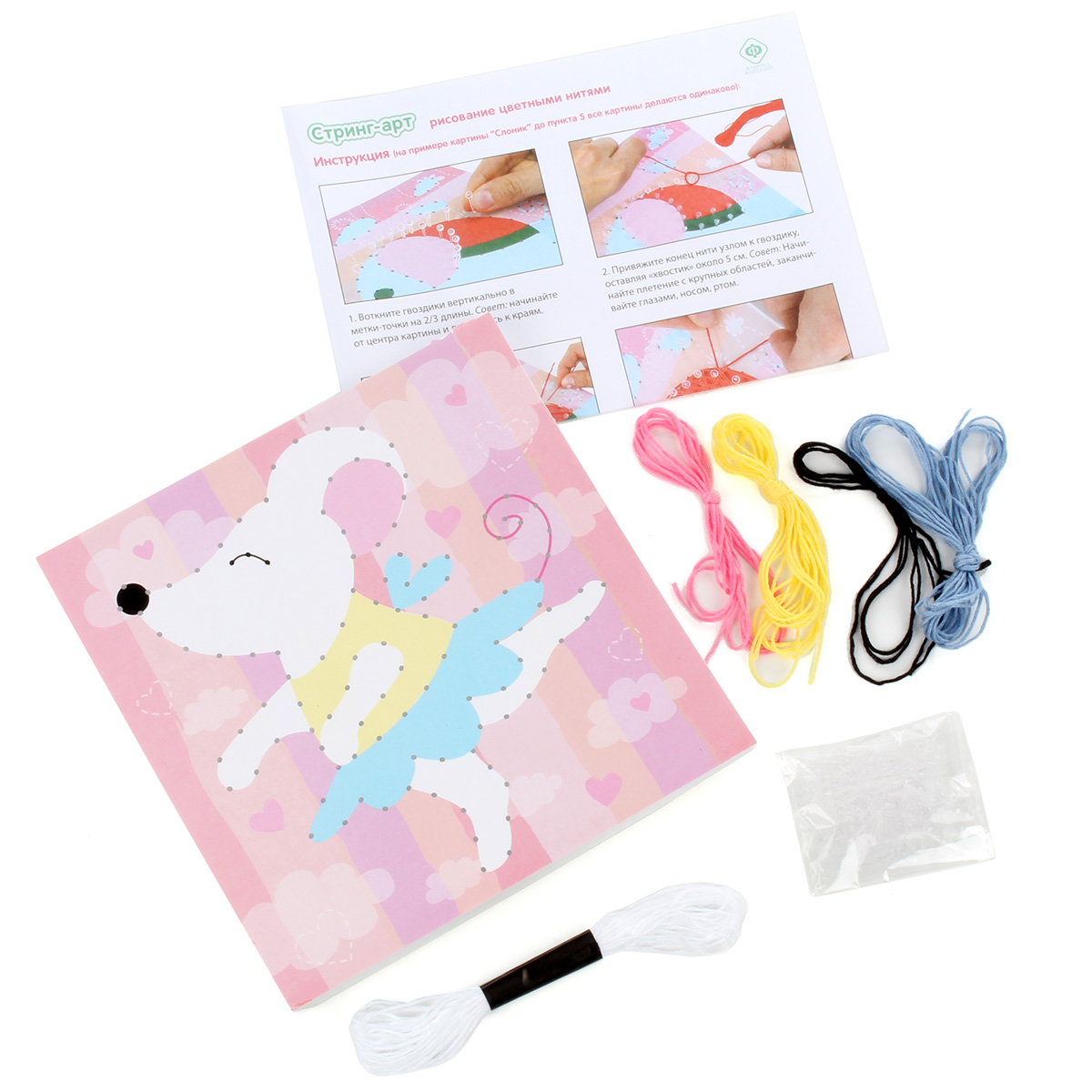 Сделай сам картину в технике стринг арт. Рисование цветными нитями или стринг арт - увлекательное занятие, позволяющее при помощи произвольного оплетения гвоздиков создать интересную фактуру: паутинку из нитей. Картина получается объёмной и декоративной! Полностью безопасные для пальчиков пластиковые гвоздики позволят доверить занятие даже маленьким творцам. Им только может понадобиться помощь в завязывании узелков. Плотная объёмная основа не нуждается в рамке, вы можете сразу повесить картину или подарить её. В наборе: - цветной фон с метками для гвоздиков на вспененной основе 19,5*19,5*1 см; - прозрачные пластиковые гвоздики с закругленной шляпкой для безопасного использования; - разноцветные нитки мулине; - инструкция с фото. Набор для творчества помогает развивать мелкую моторику рук ребенка, воображение, логическое и образное мышление. Рекомендуемый возраст: 6+ Размер цветной коробки: 21*21*3 см.