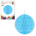 Бумажный шар - очень красивый, яркий и модный элемент для декора помещения. Легко раскладывается и складывается, подойдет для украшения помещения к любому торжеству, поставляется в сложенном виде, цвет - голубой. Принципы сборки бумажного шара: - разверните сложенный шар; - соедините и зафиксируйте края, сняв защитные полоски с двустороннего скотча, который имеется на одной из сторон шара. На шарике есть веревочка-петелька, за которую удобно подвесить шарик. С помощью бумажных шаров можно украсить не только интерьер, но и спинки стульев, арки, шатры, праздничные столы. Бумажные шары хорошо сочетаются с шарами других цветов. Шар изготовлен из картона, бумаги и текстильного материала, упакован в пакет. Диаметр разложенного шара: 20 см. Размеры шара в упаковке: 13*0,5*22 см.