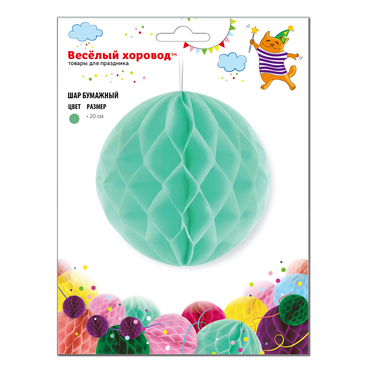 Бумажный шар - очень красивый, яркий и модный элемент для декора помещения. Легко раскладывается и складывается, подойдет для украшения помещения к любому торжеству, поставляется в сложенном виде, цвет - мятный. Принципы сборки бумажного шара: - разверните сложенный шар; - соедините и зафиксируйте края, сняв защитные полоски с двустороннего скотча, который имеется на одной из сторон шара. На шарике есть веревочка-петелька, за которую удобно подвесить шарик. С помощью бумажных шаров можно украсить не только интерьер, но и спинки стульев, арки, шатры, праздничные столы. Бумажные шары хорошо сочетаются с шарами других цветов. Шар изготовлен из картона, бумаги и текстильного материала, упакован в пакет. Диаметр разложенного шара: 20 см. Размеры шара в упаковке: 13*0,5*22 см.