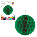 Бумажный шар - очень красивый, яркий и модный элемент для декора помещения. Легко раскладывается и складывается, подойдет для украшения помещения к любому торжеству, поставляется в сложенном виде, цвет - зеленый. Принципы сборки бумажного шара: - разверните сложенный шар; - соедините и зафиксируйте края, сняв защитные полоски с двустороннего скотча, который имеется на одной из сторон шара. На шарике есть веревочка-петелька, за которую удобно подвесить шарик. С помощью бумажных шаров можно украсить не только интерьер, но и спинки стульев, арки, шатры, праздничные столы. Бумажные шары хорошо сочетаются с шарами других цветов. Шар изготовлен из картона, бумаги и текстильного материала, упакован в пакет. Диаметр разложенного шара: 20 см. Размеры шара в упаковке: 13*0,5*22 см.