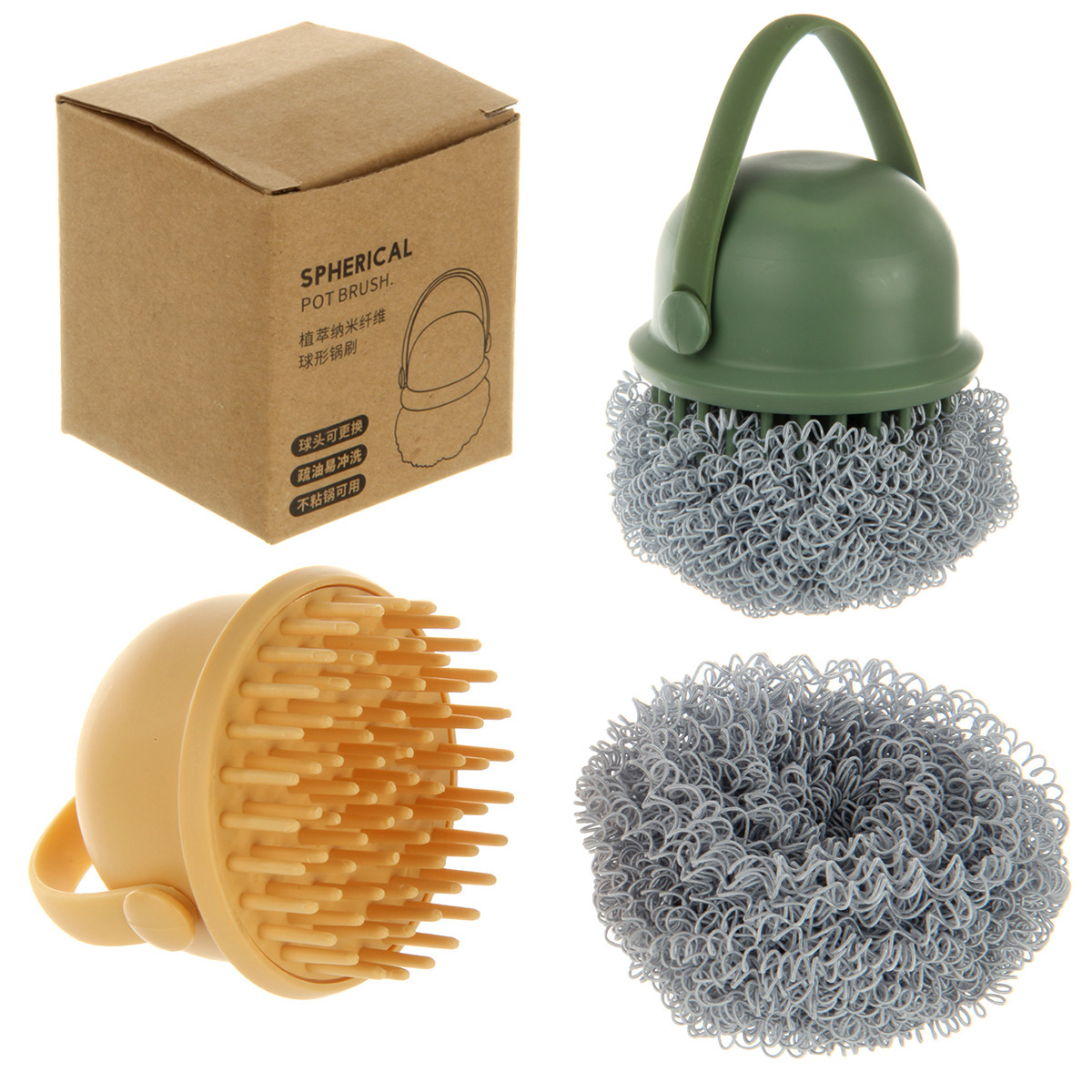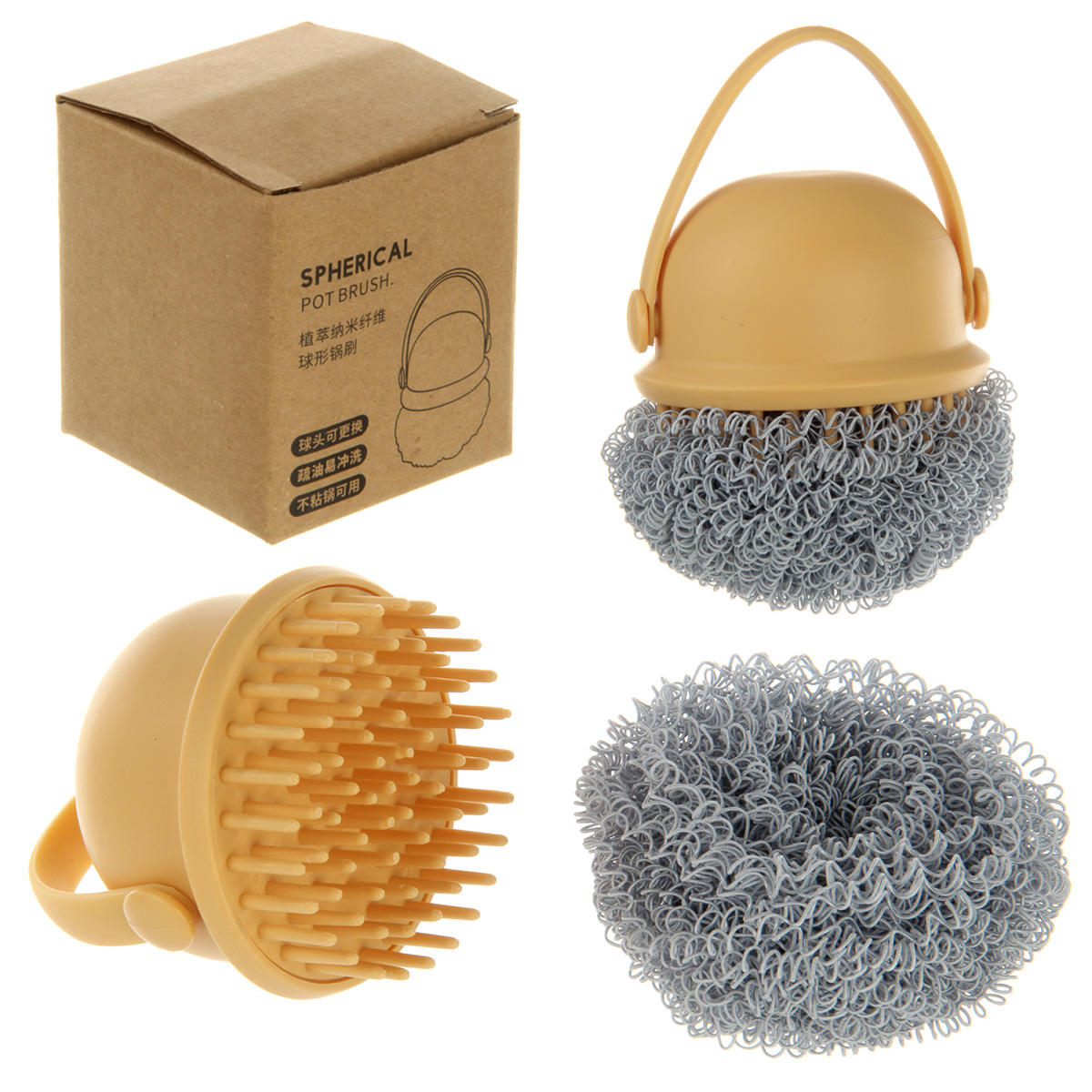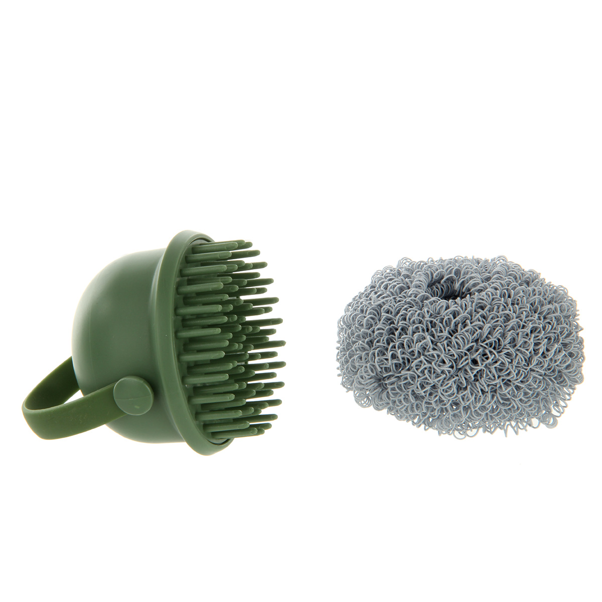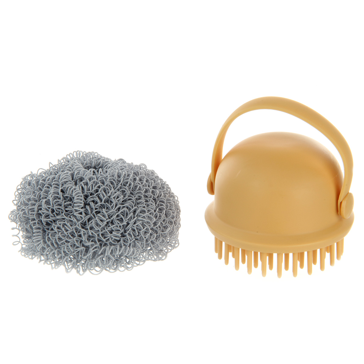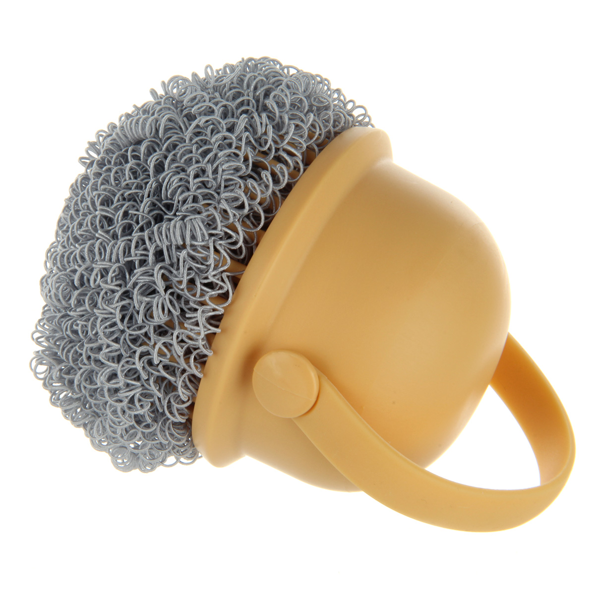 Щетка для мытья имеет снимающуюся с держателя губку, губка жесткая, благодаря этому щетка удаляет самые сложные засохшие и пригоревшие загрязнения.
