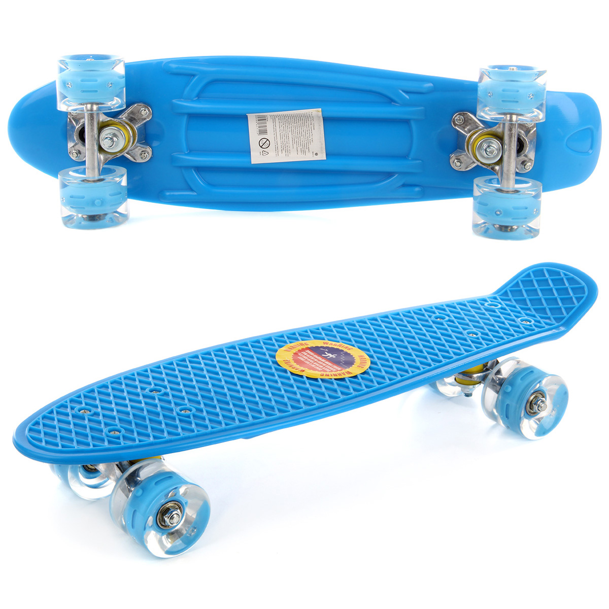 Крутой скейт для крутых трюков. Скейтборд оформлен в красивой и яркой расцветке, при движении все колеса подсвечиваются, удобно кататься в темное время суток. При езде на скейтборде задействованы почти все группы мышц, что способствует поддержанию хорошей физической формы и укреплению иммунитета. Ребенок будет развивать вестибулярный аппарат, координацию движений, концентрацию внимания, зрительное восприятие. Скейтборд станет замечательным подарком, сделает прогулки на свежем воздухе полезными и увлекательными, масса положительных эмоций гарантирована. Функционал игрушки: -скейт выдерживает нагрузку до 45 кг. Размеры скейта: 55*15*11 см. Размеры деки: 55*14 см. Высота деки от пола: 8 см. Изготовлено из полимерного материала, металла.
