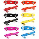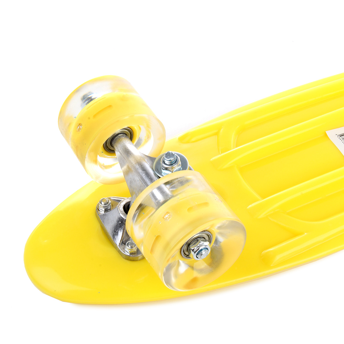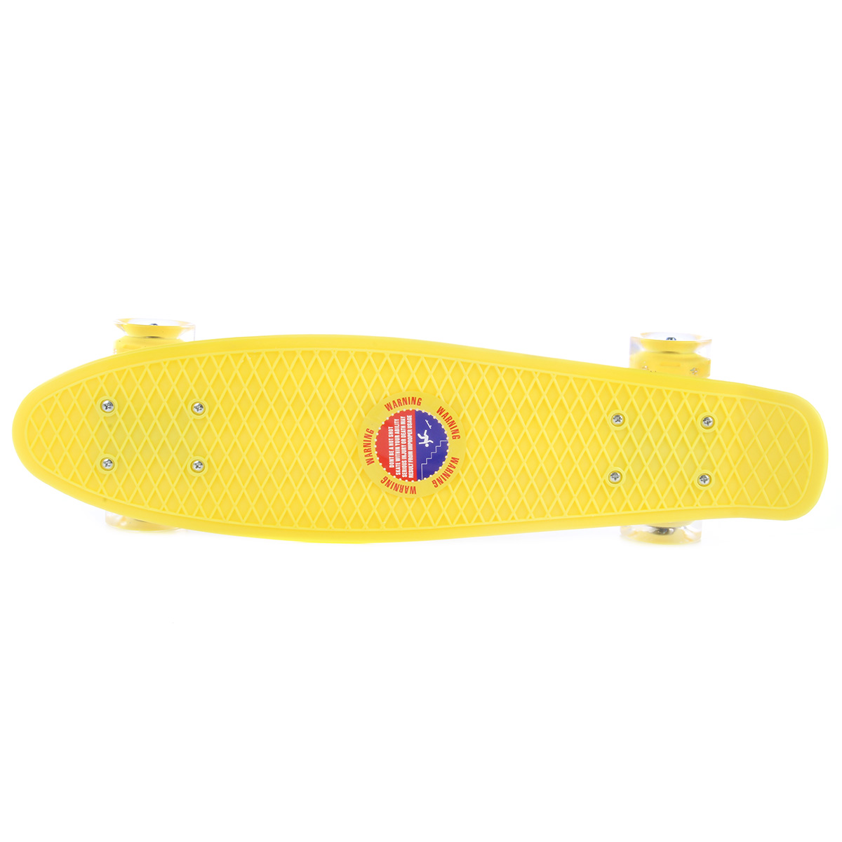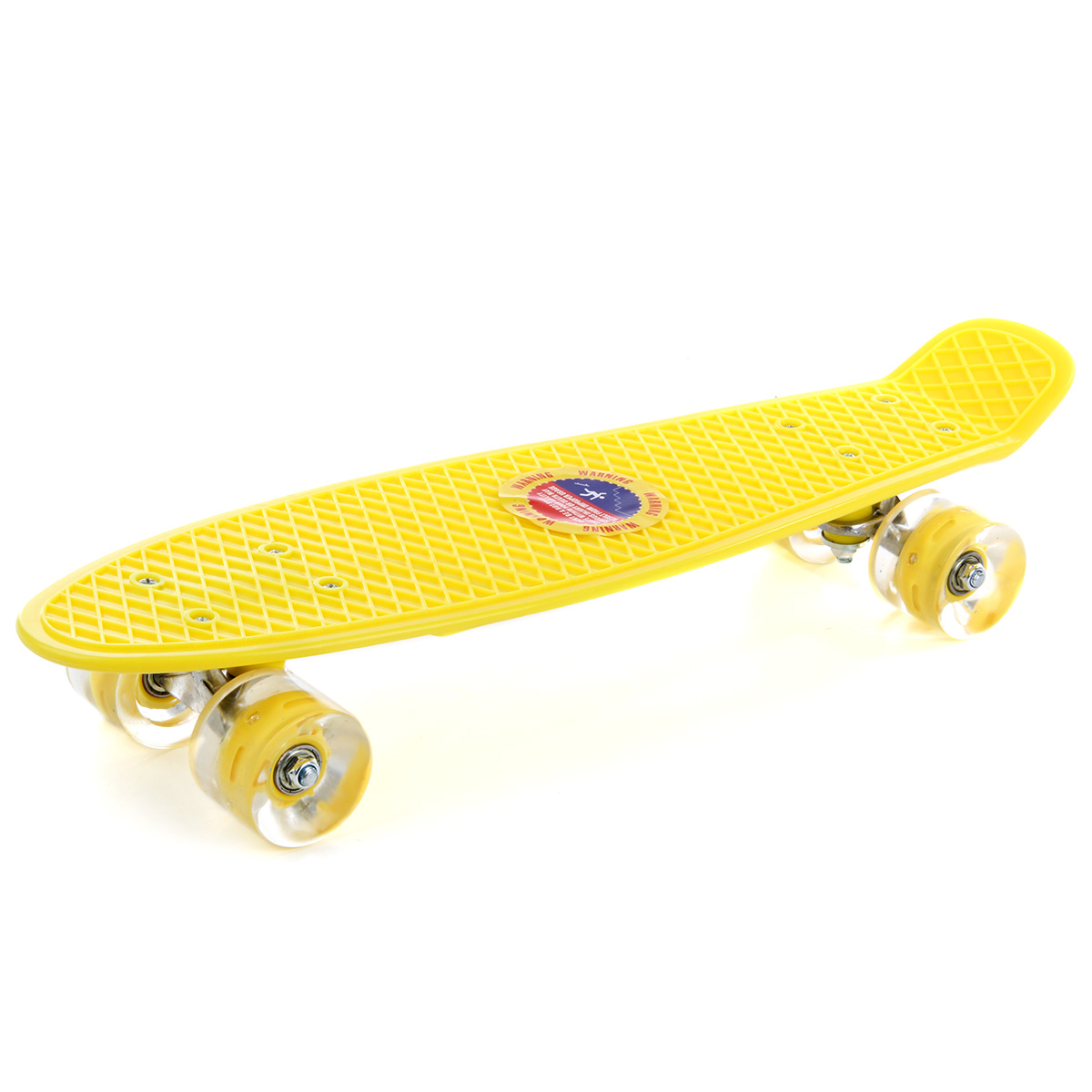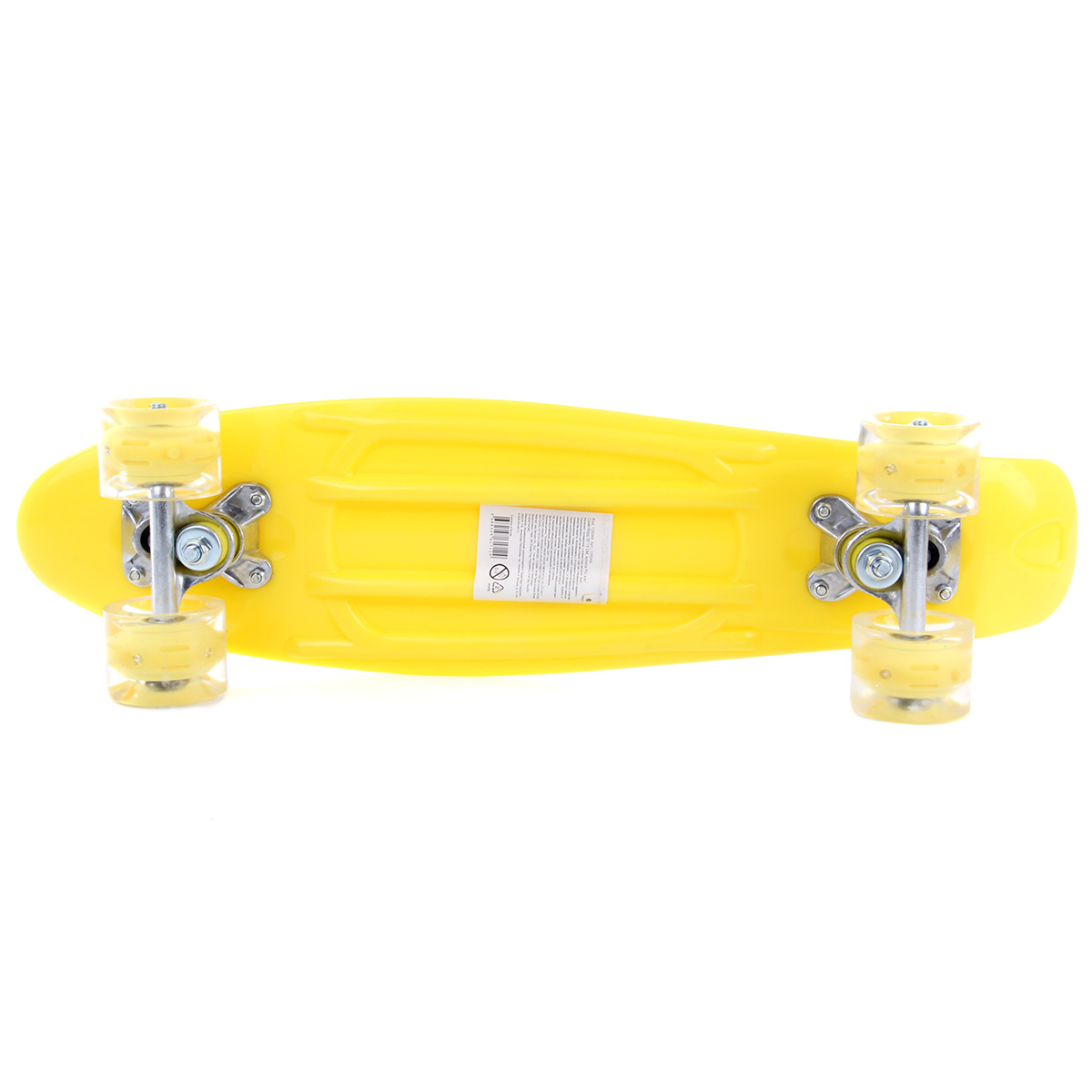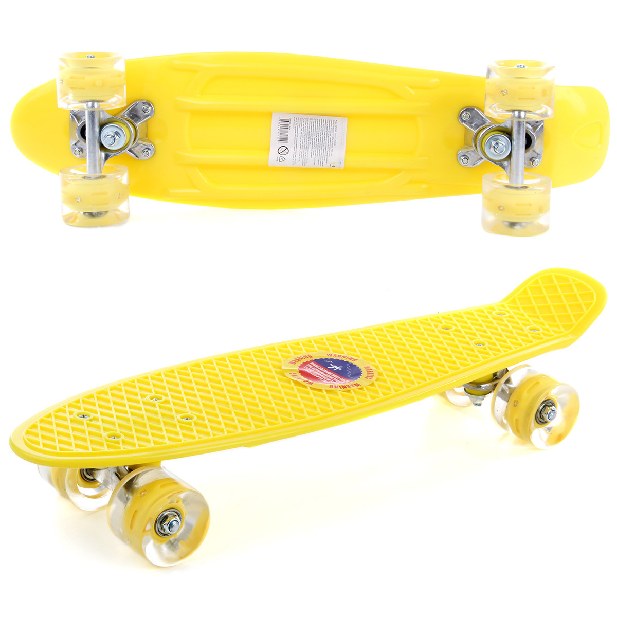 Крутой скейт для крутых трюков. Скейтборд оформлен в красивой и яркой расцветке, при движении все колеса подсвечиваются, удобно кататься в темное время суток. При езде на скейтборде задействованы почти все группы мышц, что способствует поддержанию хорошей физической формы и укреплению иммунитета. Ребенок будет развивать вестибулярный аппарат, координацию движений, концентрацию внимания, зрительное восприятие. Скейтборд станет замечательным подарком, сделает прогулки на свежем воздухе полезными и увлекательными, масса положительных эмоций гарантирована. Функционал игрушки: -скейт выдерживает нагрузку до 45 кг. Размеры скейта: 55*15*11 см. Размеры деки: 55*14 см. Высота деки от пола: 8 см. Изготовлено из полимерного материала, металла.