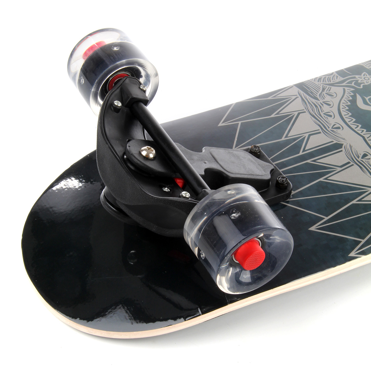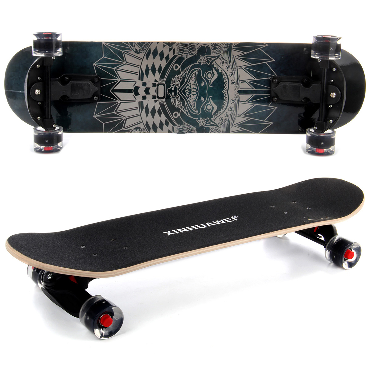 Крутой скейт для крутых трюков. Скейтборд оформлен в красивой и яркой расцветке, при движении все колеса подсвечиваются, удобно кататься в темное время суток. При езде на скейтборде задействованы почти все группы мышц, что способствует поддержанию хорошей физической формы и укреплению иммунитета. Ребенок будет развивать вестибулярный аппарат, координацию движений, концентрацию внимания, зрительное восприятие. Скейтборд станет замечательным подарком, сделает прогулки на свежем воздухе полезными и увлекательными, масса положительных эмоций гарантирована. Функционал игрушки: -колёса при вращении светятся; -дека покрыта материалом для лучшего сцепления; -скейт выдерживает нагрузку до 75 кг. Размеры скейта: 78*24*15 см. Размеры деки: 78*24 см. Высота деки от пола: 10 см. Изготовлено из дерева, металла, полимерного материала.