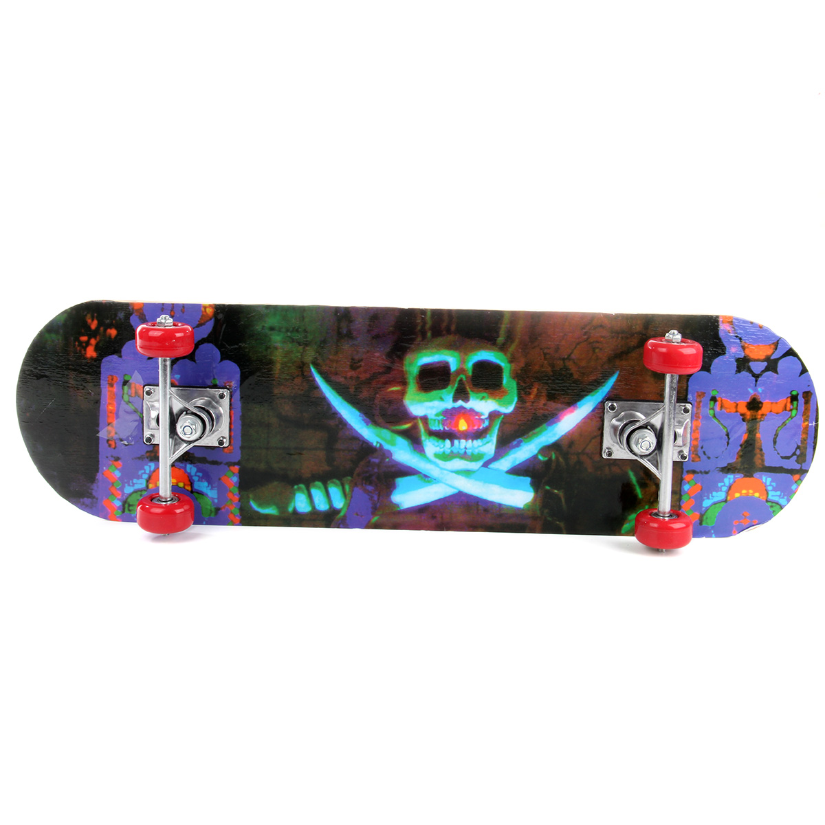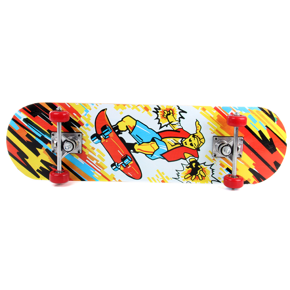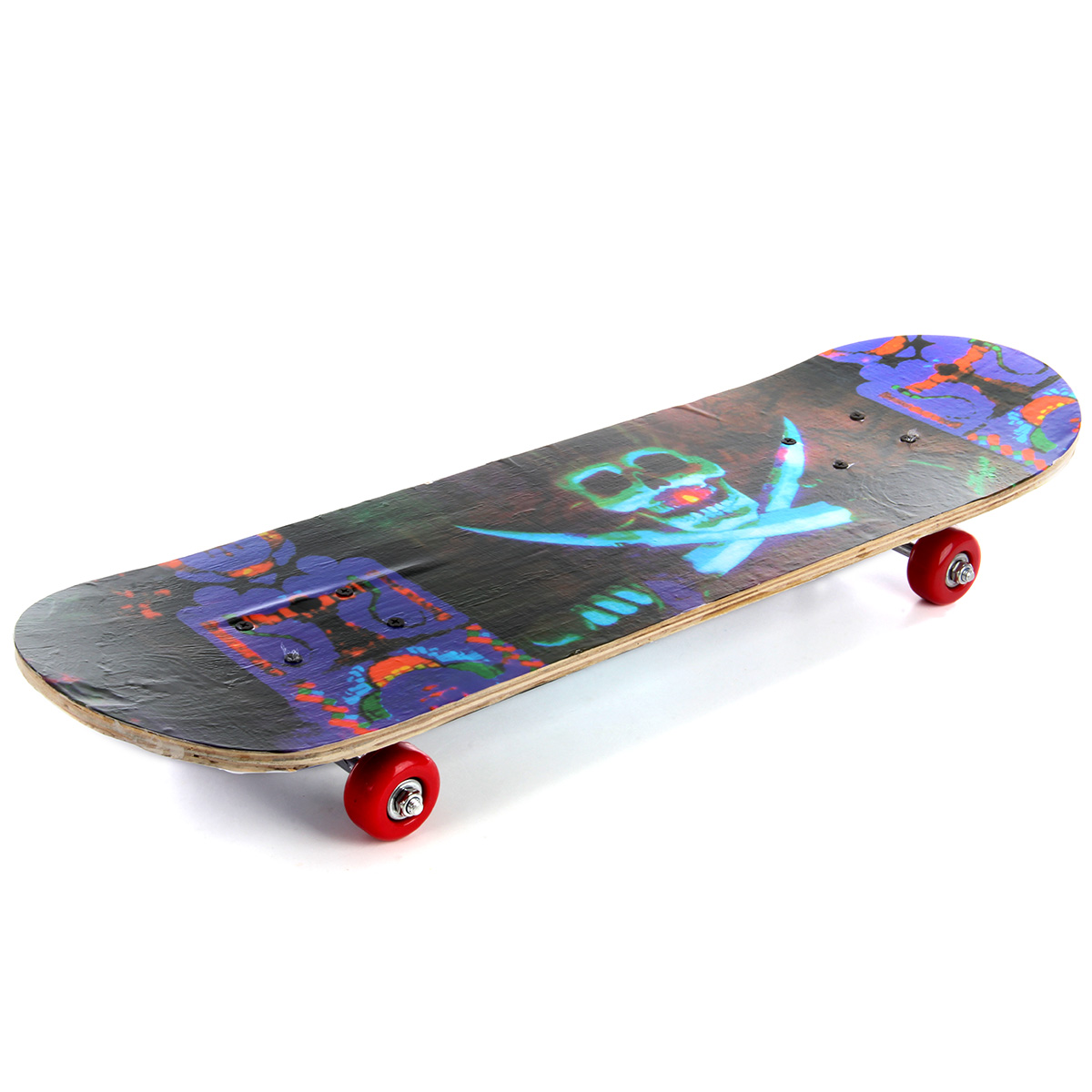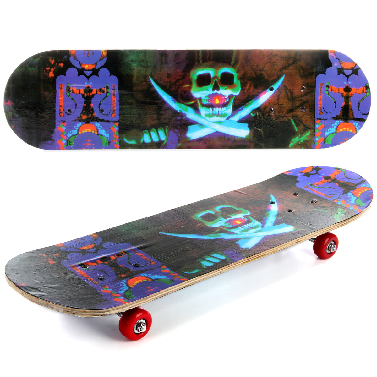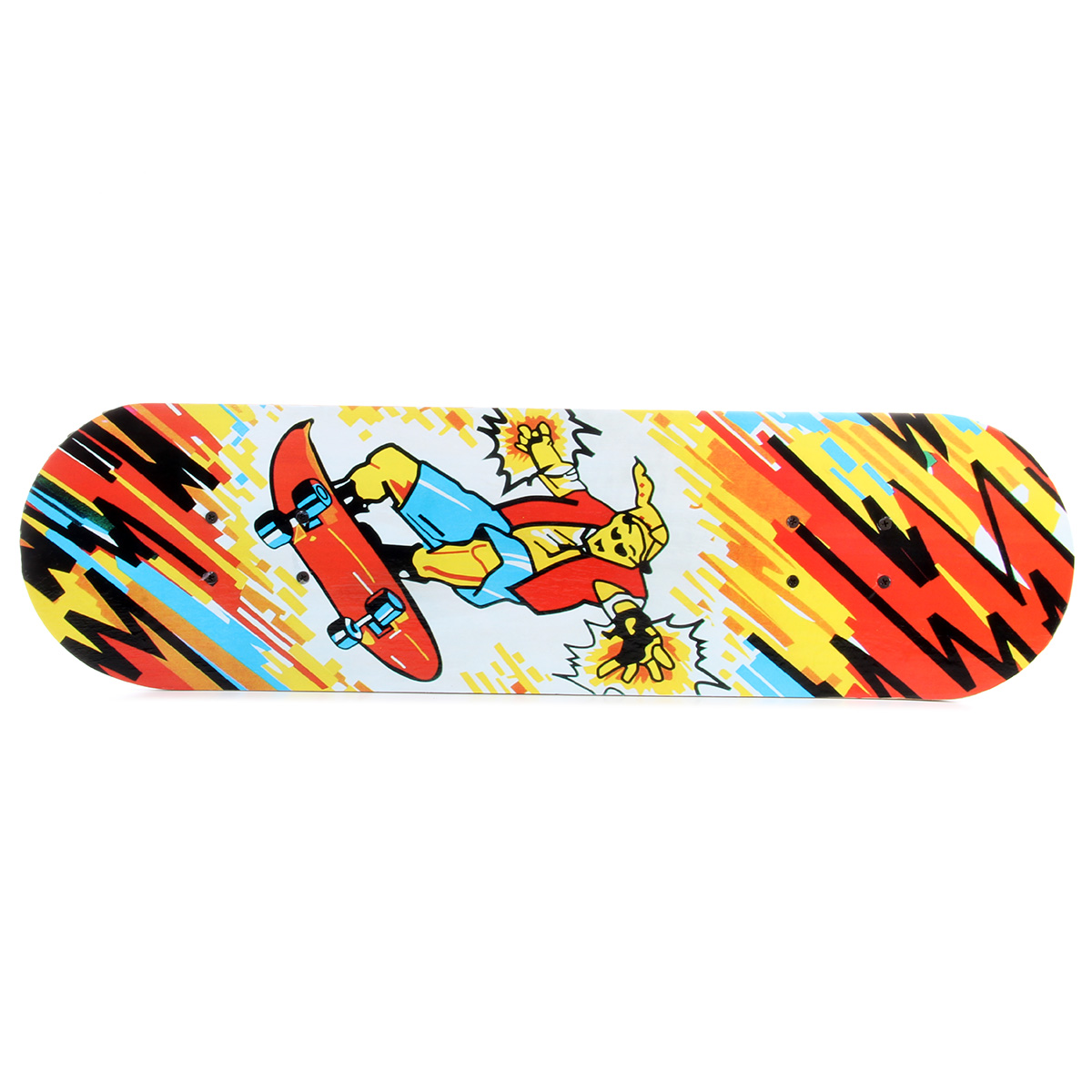 Крутой скейт для крутых трюков. Скейтборд оформлен в красивой и яркой расцветке, при движении все колеса подсвечиваются, удобно кататься в темное время суток. При езде на скейтборде задействованы почти все группы мышц, что способствует поддержанию хорошей физической формы и укреплению иммунитета. Ребенок будет развивать вестибулярный аппарат, координацию движений, концентрацию внимания, зрительное восприятие. Скейтборд станет замечательным подарком, сделает прогулки на свежем воздухе полезными и увлекательными, масса положительных эмоций гарантирована. Функционал игрушки: -скейт выдерживает нагрузку до 55 кг. Размеры скейта: 70*20*12 см. Размеры деки: 70*20 см. Высота деки от пола: 7 см. Изготовлено из полимерного материала, металла, дерева.