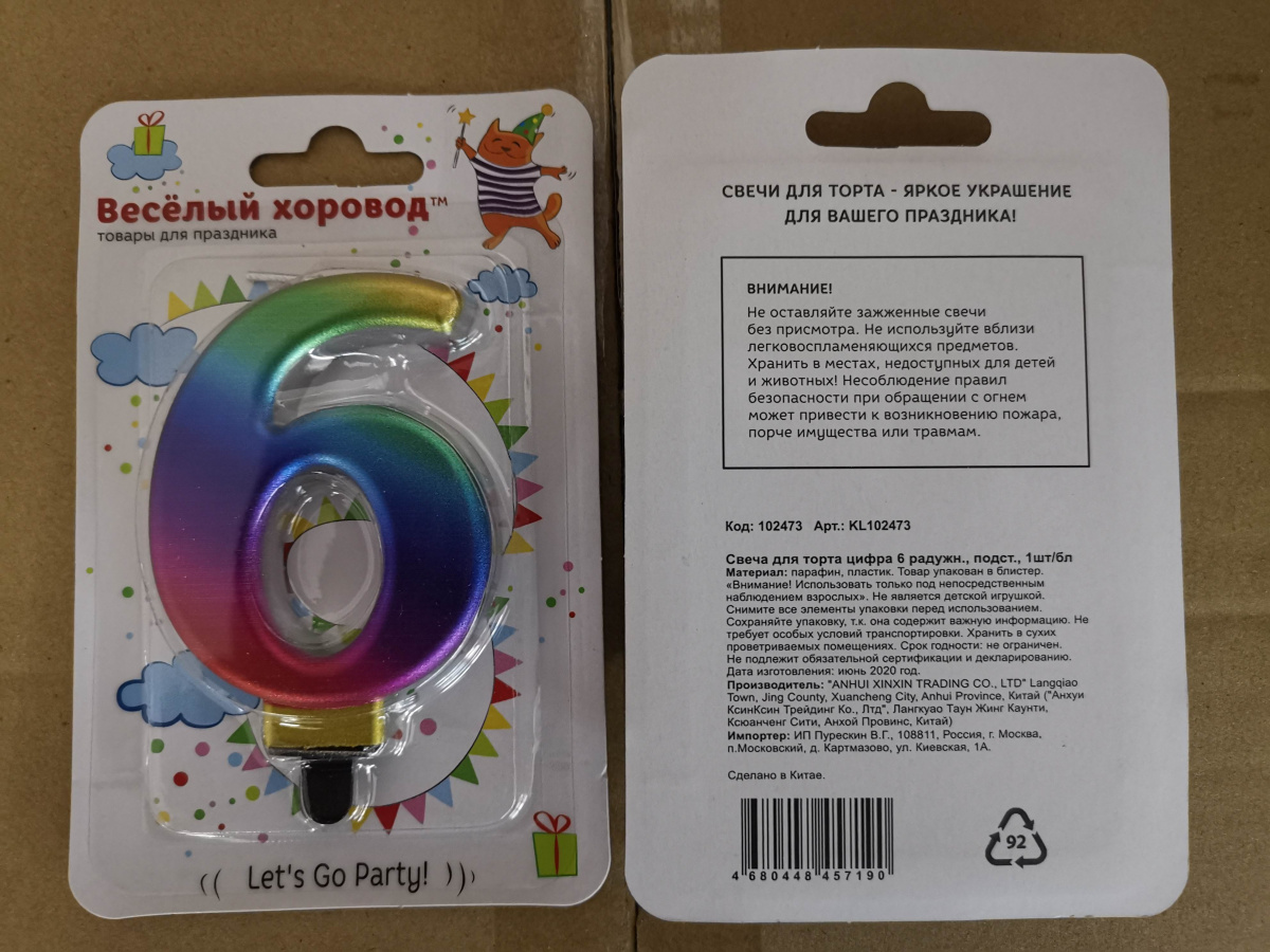 Самая красивая, самая яркая, самая незабываемая и в то же время самая универсальная свечка для любого мероприятия! Радужная свечка-цифра подойдет к кондитерскому изделию любой цветовой гаммы! На конце у свечки удобная ножка. Свечка станет прекрасным решением для украшения десертов на любой праздник: День рождения, юбилей, детские мероприятия. Свеча изготовлена из парафина, есть пластик, упакована в блистер с европодвесом. Не является детской игрушкой. Высота свечки с ножкой: 9 см. Высота ножки: 2 см. Длина свечи: 5 см. Размеры свечи в упаковке: 9х1,5х14 см.