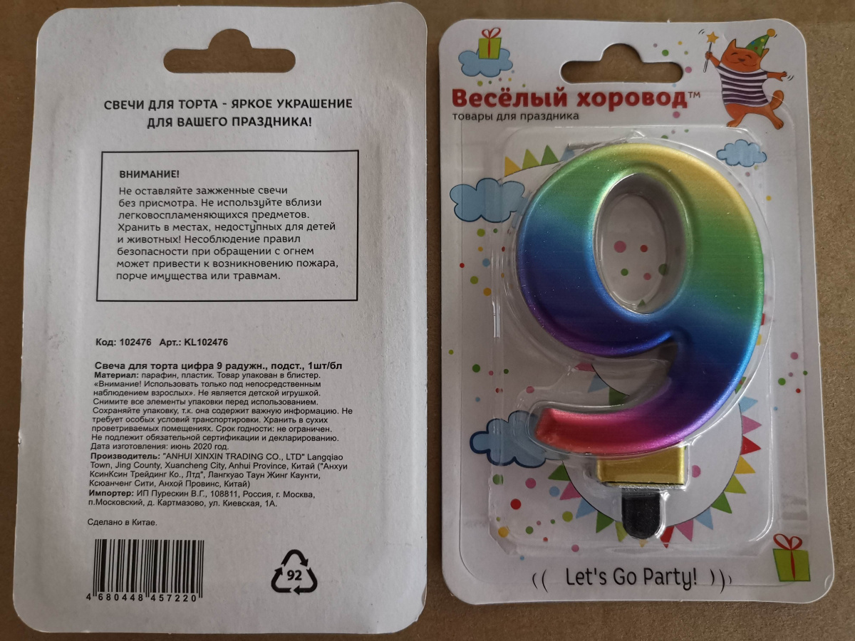 Самая красивая, самая яркая, самая незабываемая и в то же время самая универсальная свечка для любого мероприятия! Радужная свечка-цифра подойдет к кондитерскому изделию любой цветовой гаммы! На конце у свечки удобная ножка. Свечка станет прекрасным решением для украшения десертов на любой праздник: День рождения, юбилей, детские мероприятия. Свеча изготовлена из парафина, есть пластик, упакована в блистер с европодвесом. Не является детской игрушкой. Высота свечки с ножкой: 9 см. Высота ножки: 2 см. Длина свечки: 5 см. Размеры свечи в упаковке: 9х1,5х14 см.