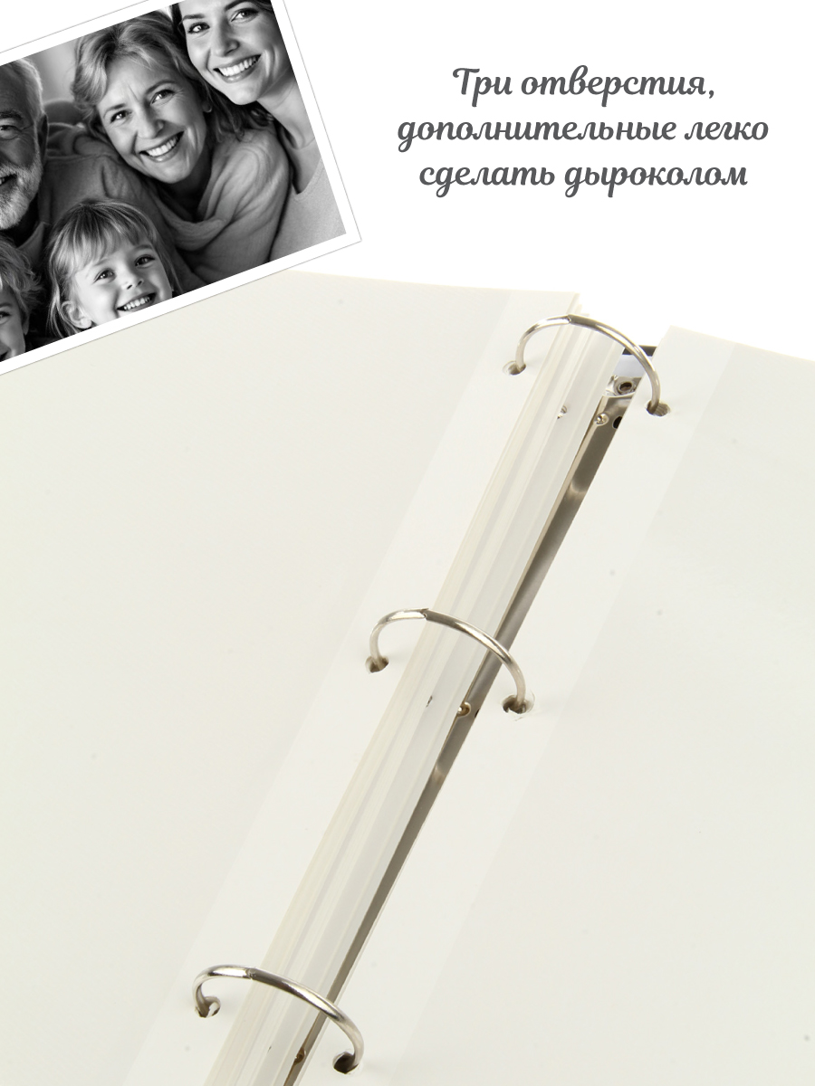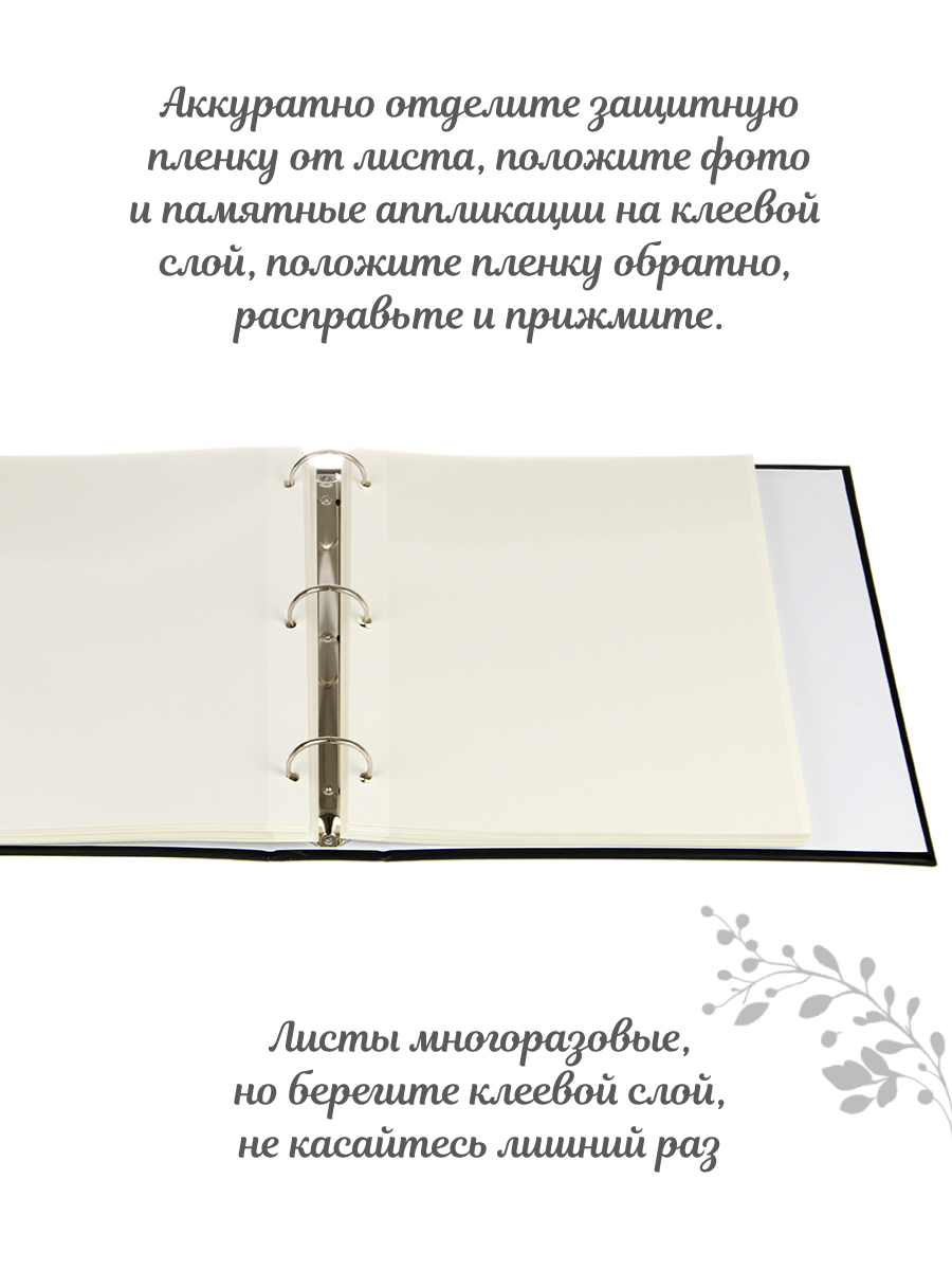 "Стильный и красочный фотоальбом на кольцах вмещает в себя 50 листов (100 клеевых страниц) размером 23*28 см. Снимок кладется на страницу альбома и накрывается пленкой. Благодаря свойствам пленки фотография надежно фиксируется на листе. Можно создавать разные коллажи и придумывать интересные оформления страниц. Этот фотоальбом долгие годы будет бережно хранить снимки и не потеряет свой внешний вид. Масса позитивных эмоций при пересмотре фотографий гарантирована. Фотоальбом изготовлен из картона и бумаги, упакован в пленку. Размеры фотоальбома: 27*7*29 см. "