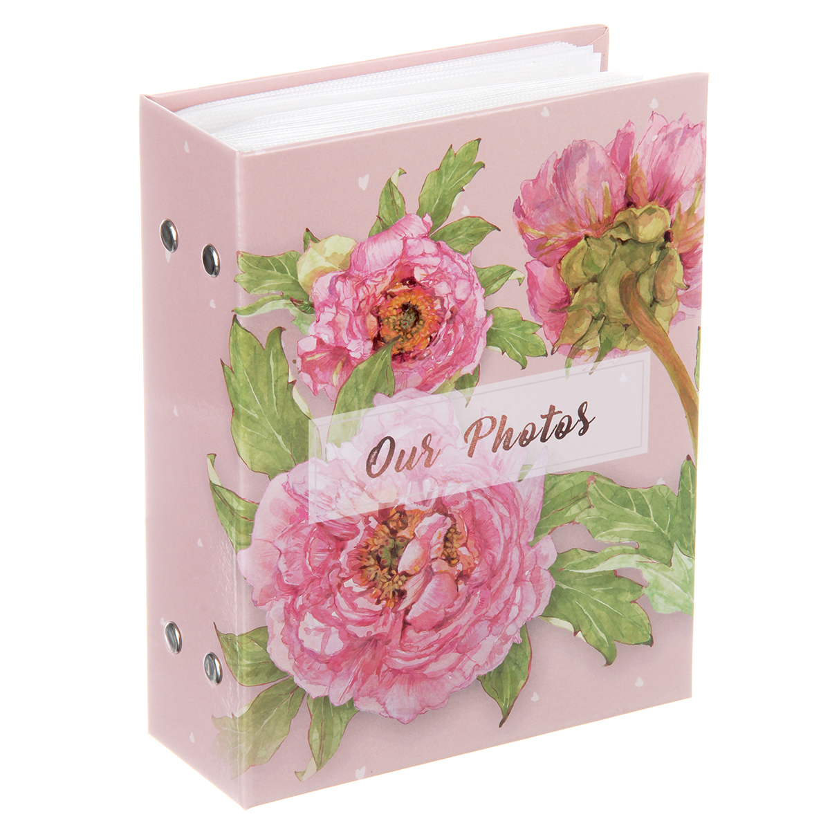 Стильный и красивый альбом вмещает в себя 100 фотографий формата 10х15 см. Пластиковые кармашки, 50 листов, скрепленных болтами, по одной фотографии на странице.