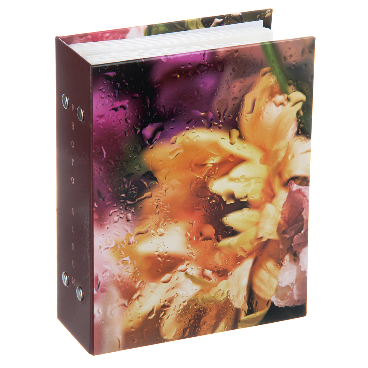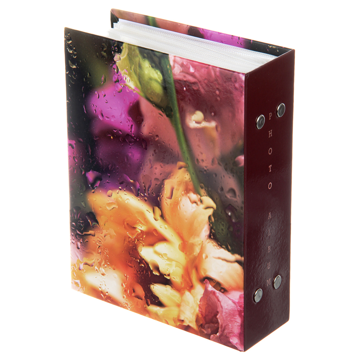 Стильный и красивый альбом вмещает в себя 100 фотографий формата 10х15 см. Пластиковые кармашки, 50 листов, скрепленных болтами, по одной фотографии на странице.