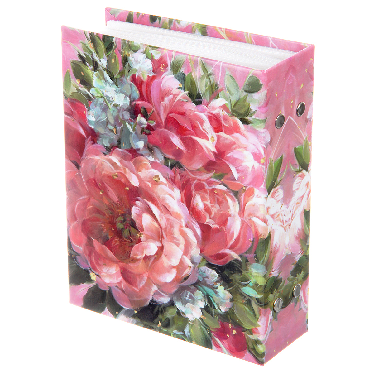Стильный и красивый альбом вмещает в себя 100 фотографий формата 10х15 см. Пластиковые кармашки, 50 листов, скрепленных болтами, по одной фотографии на странице.